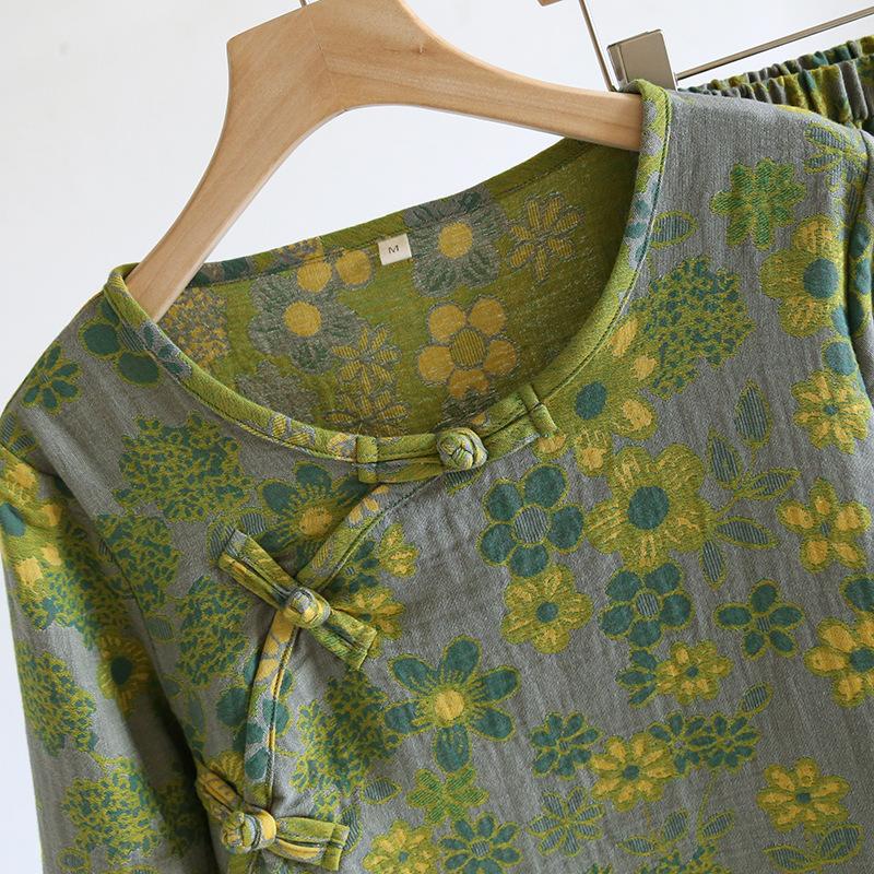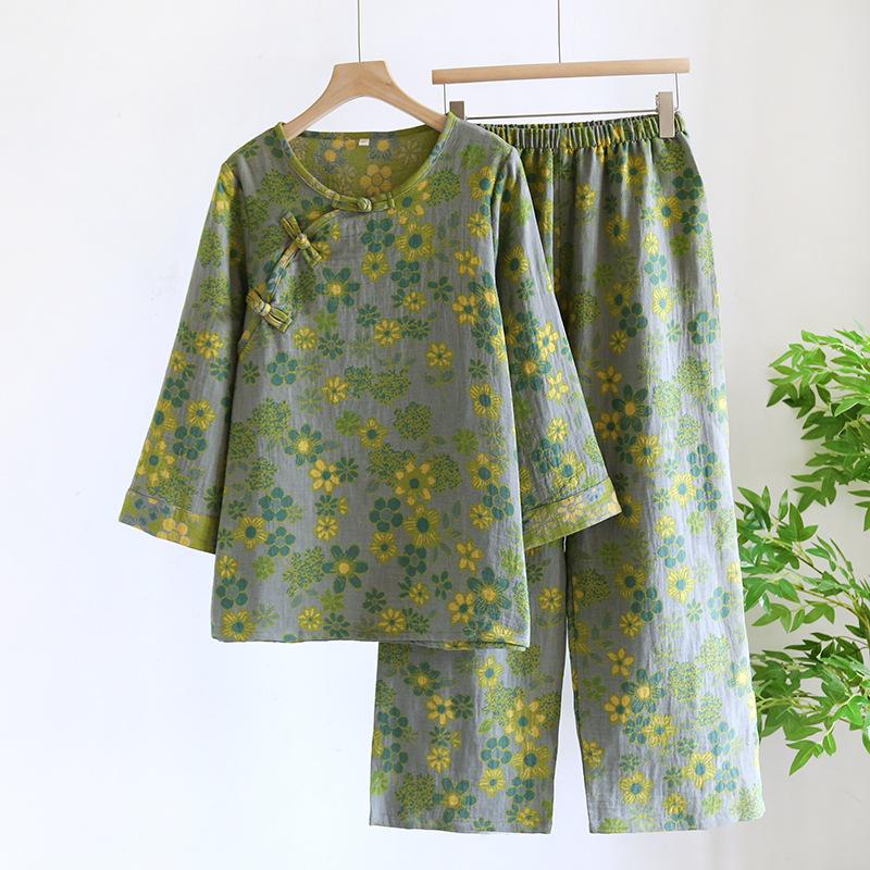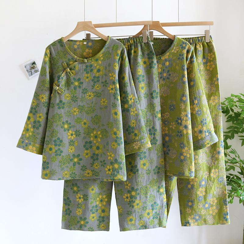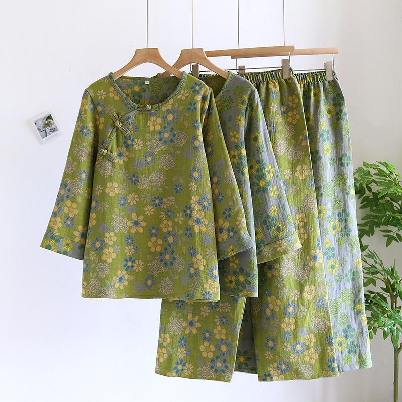 Conjunto de pijama de estilo nacional vintage para mujer, de algodón teñido con hilo, delgado, cómodo, holgado, para primavera y verano, ropa para el hogar, una generación de cabello