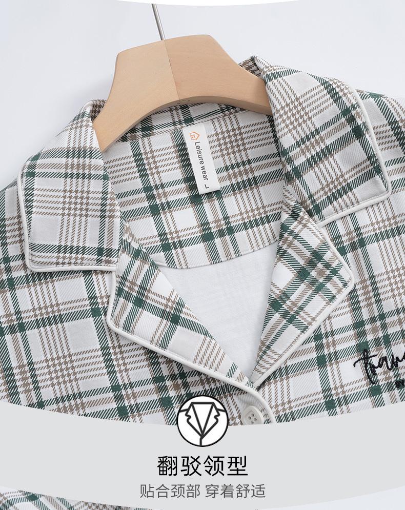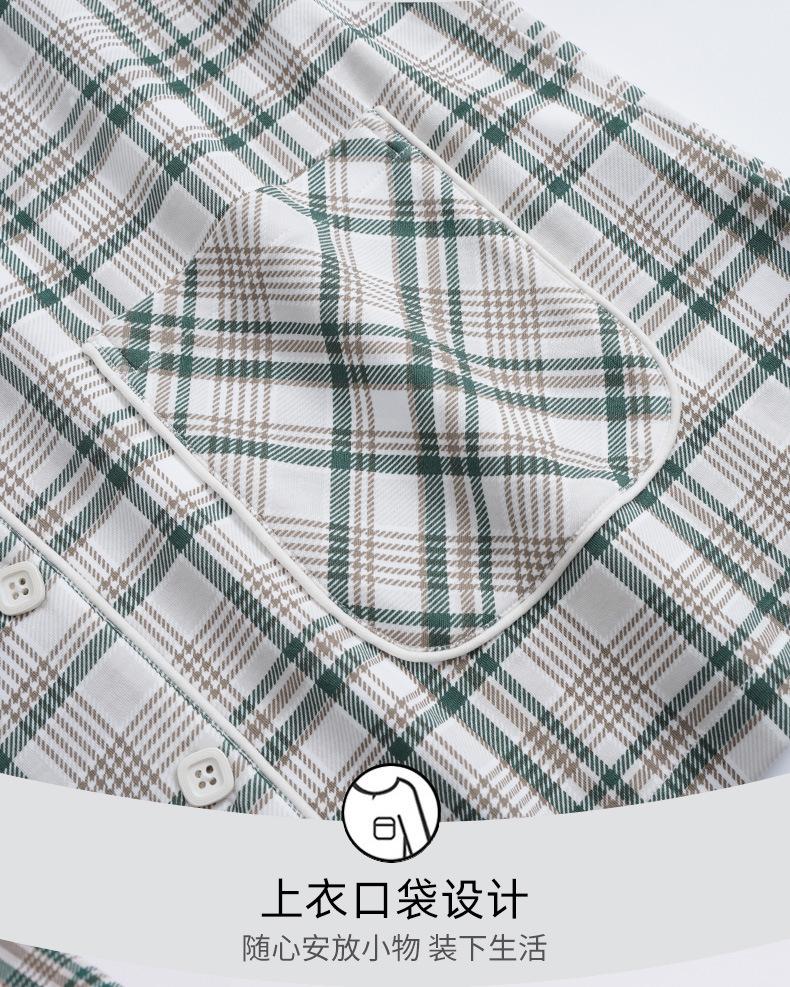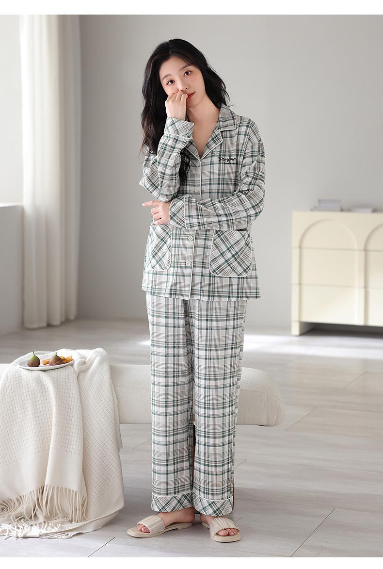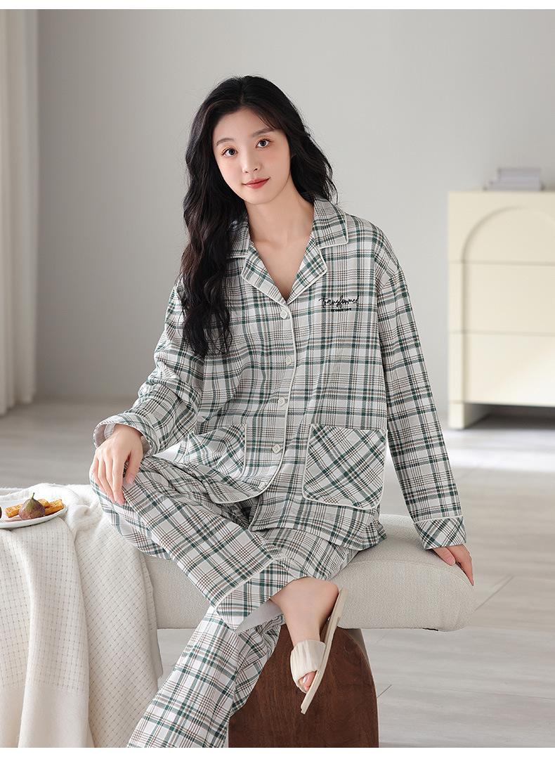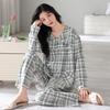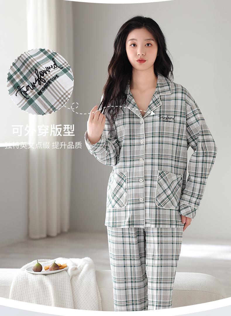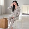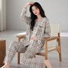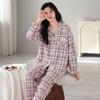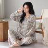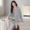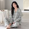 Pijama para Mujer Algodón Puro Primavera y Otoño Camisa a Cuadros Solapa de Alta Gama para Usar Exterior Cárdigan de Manga Larga Traje de Ropa para el Hogar para Mujer