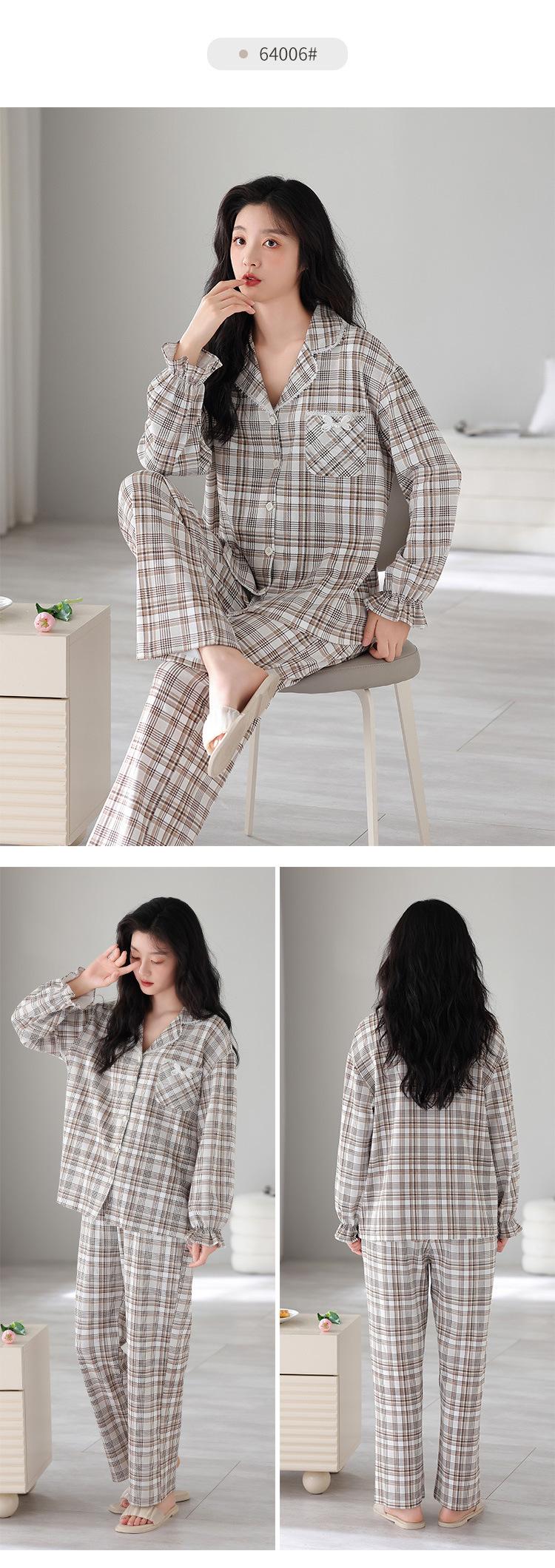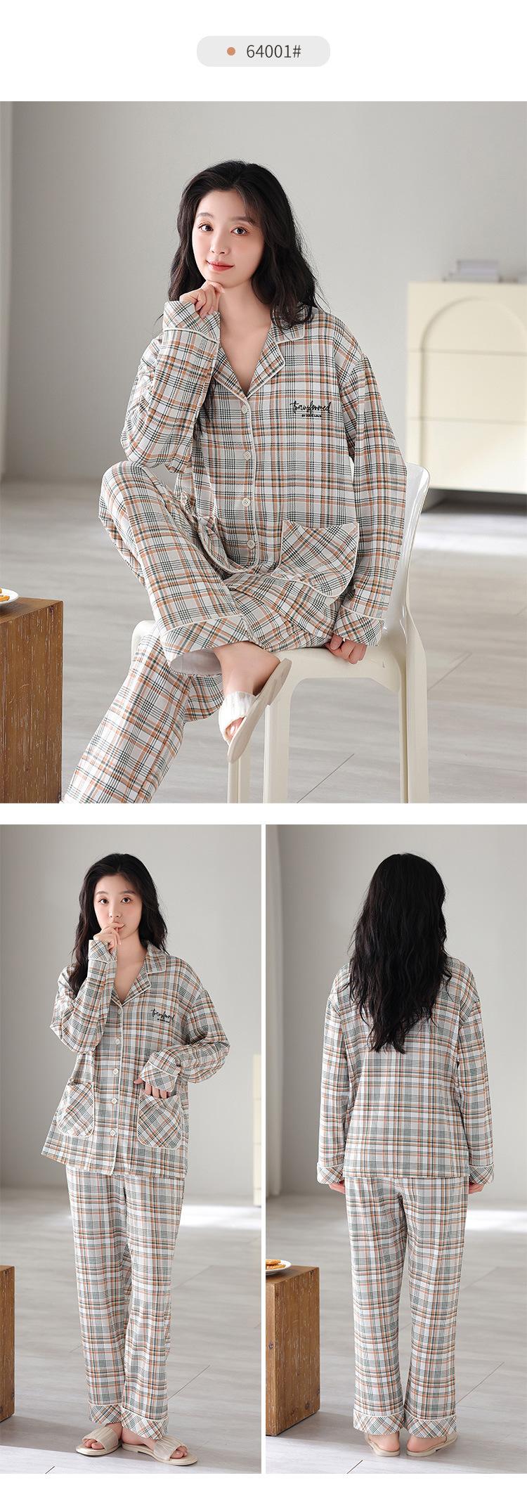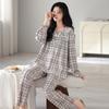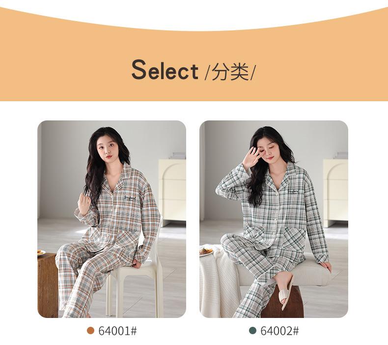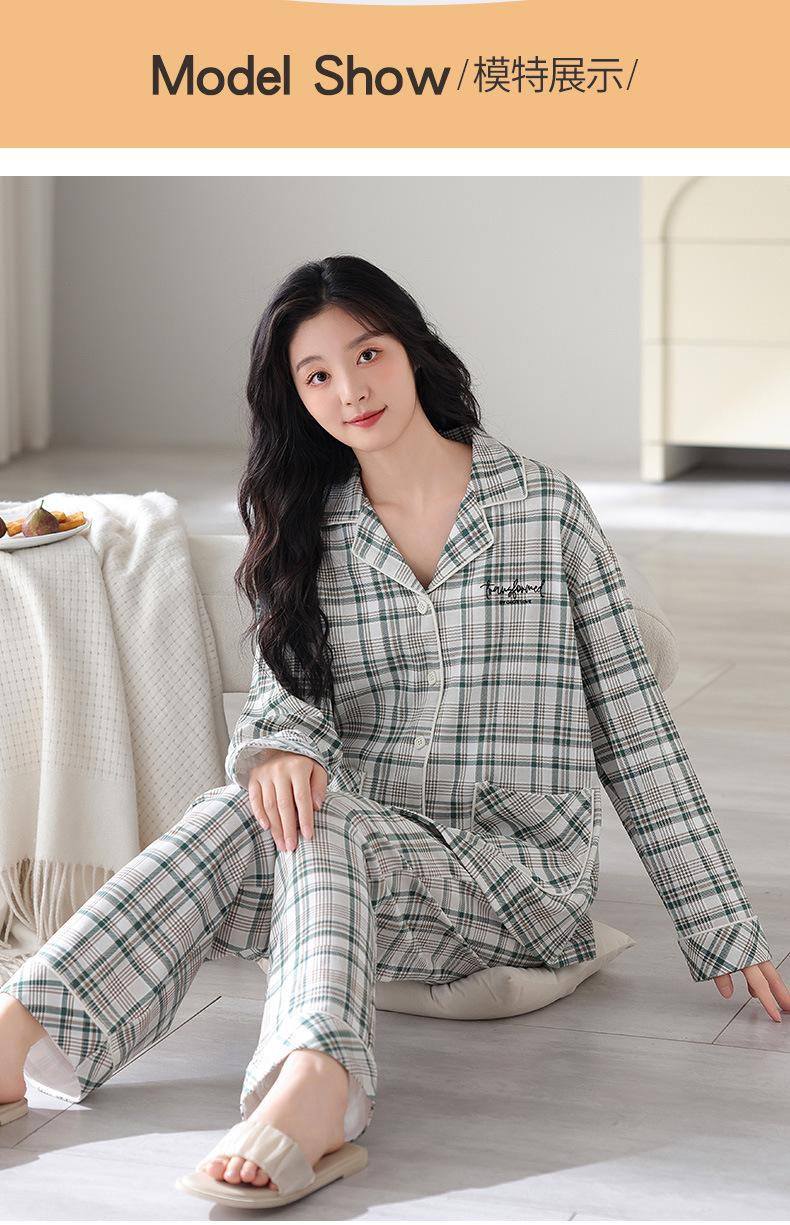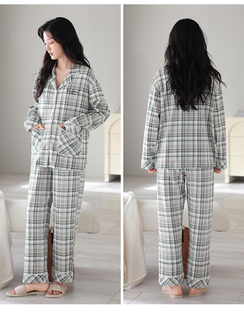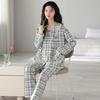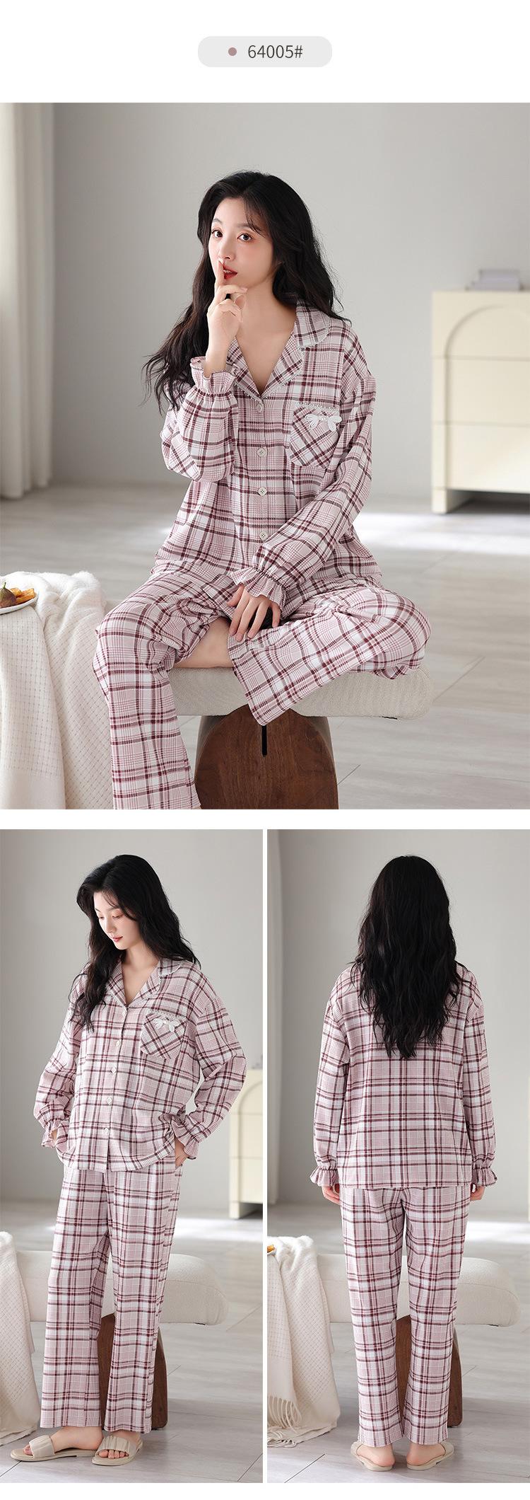 Pijama para Mujer Algodón Puro Primavera y Otoño Camisa a Cuadros Solapa de Alta Gama para Usar Exterior Cárdigan de Manga Larga Traje de Ropa para el Hogar para Mujer