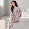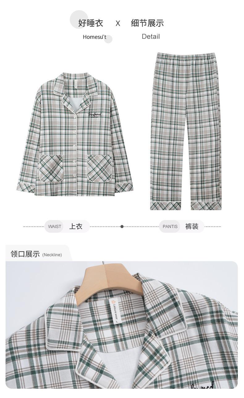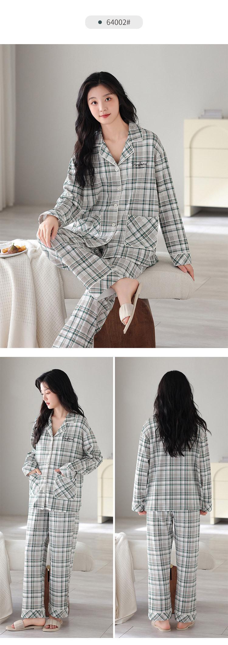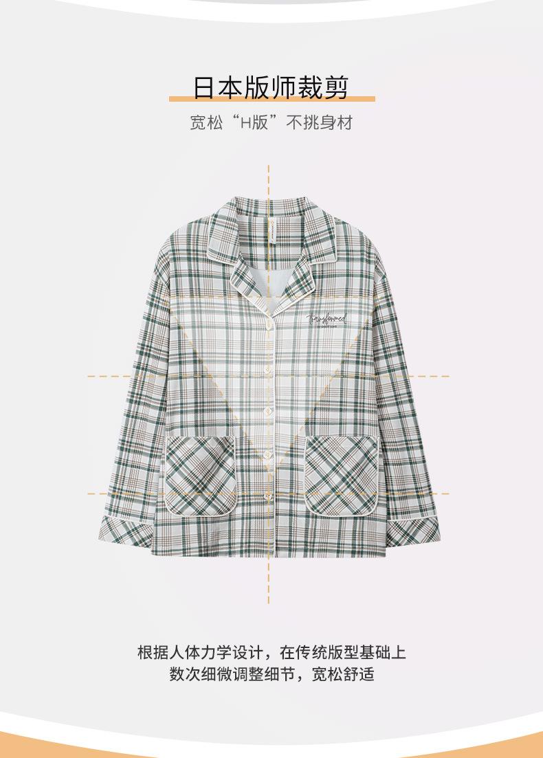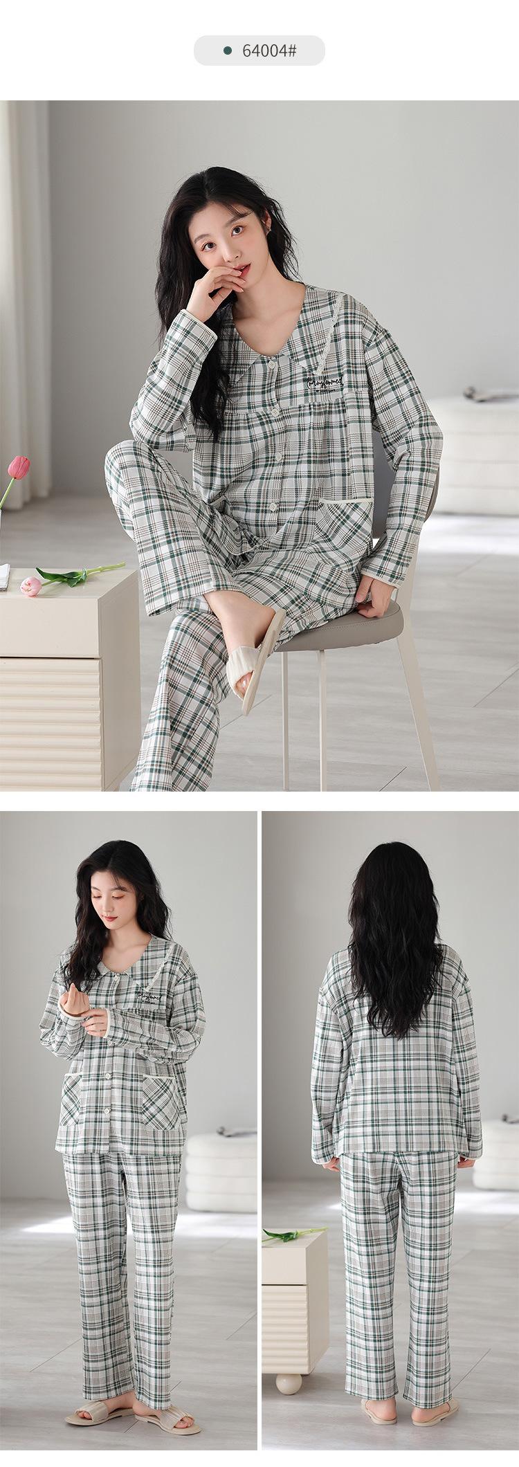 Pijama para Mujer Algodón Puro Primavera y Otoño Camisa a Cuadros Solapa de Alta Gama para Usar Exterior Cárdigan de Manga Larga Traje de Ropa para el Hogar para Mujer