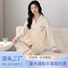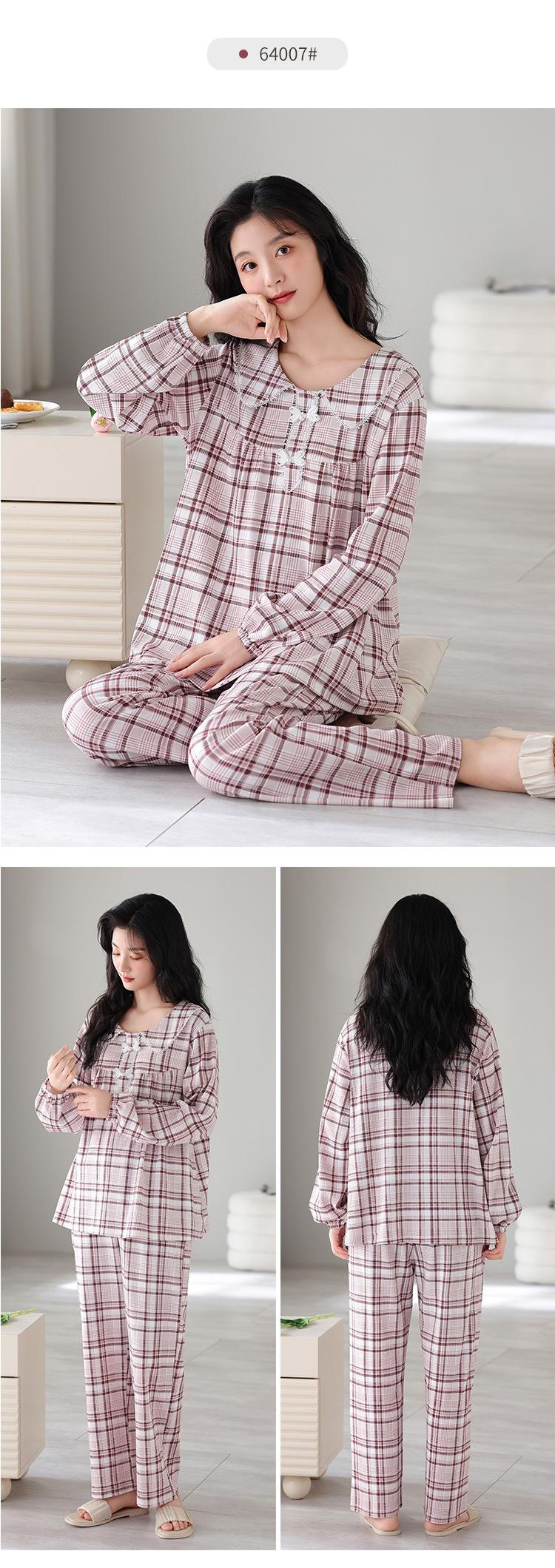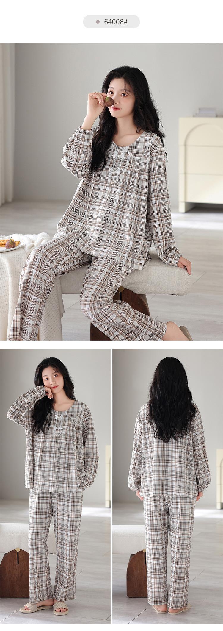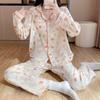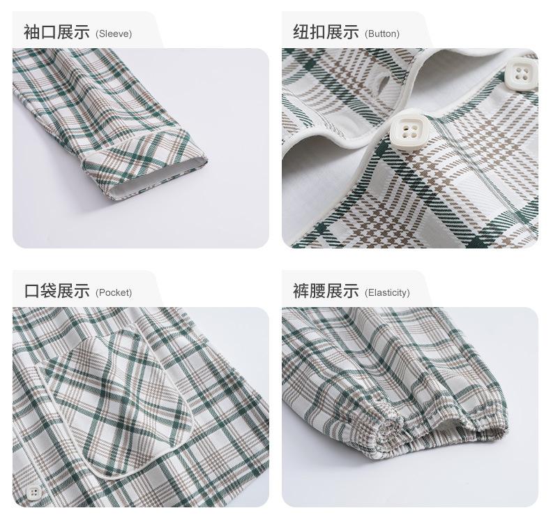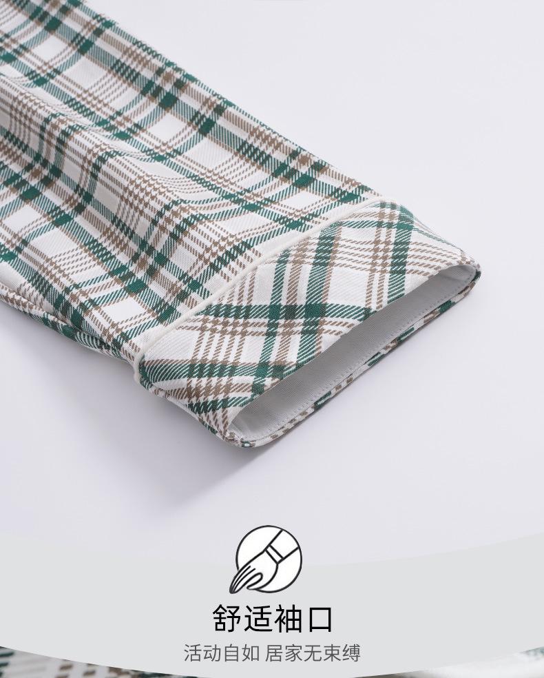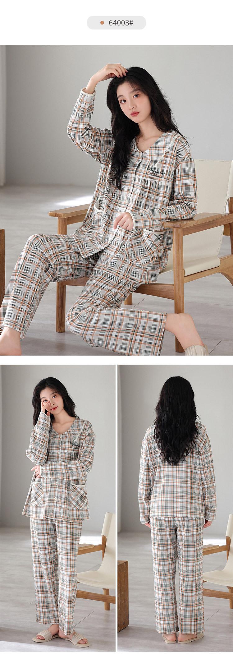 Pijama para Mujer Algodón Puro Primavera y Otoño Camisa a Cuadros Solapa de Alta Gama para Usar Exterior Cárdigan de Manga Larga Traje de Ropa para el Hogar para Mujer