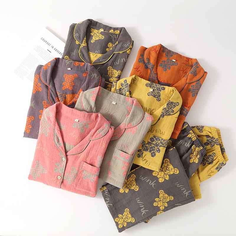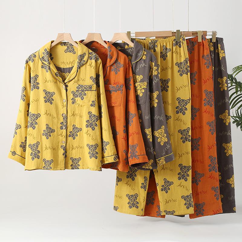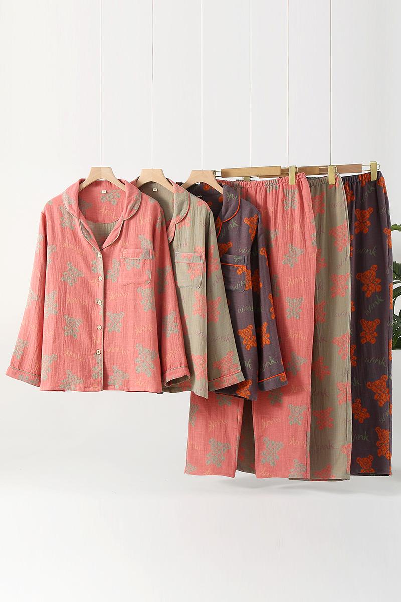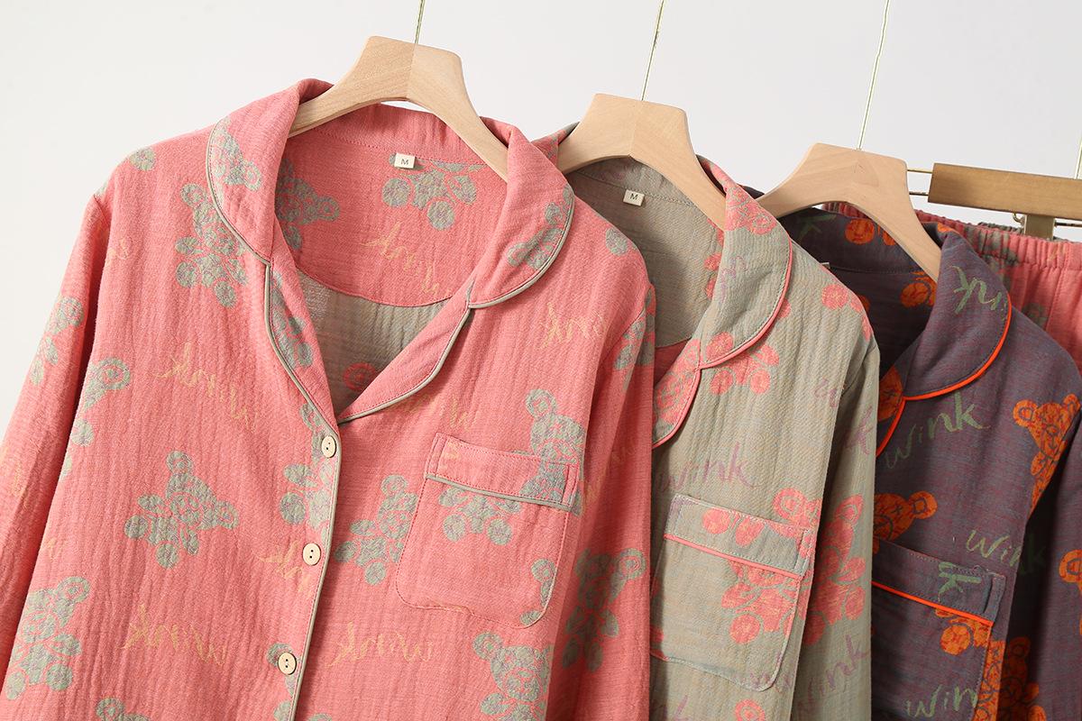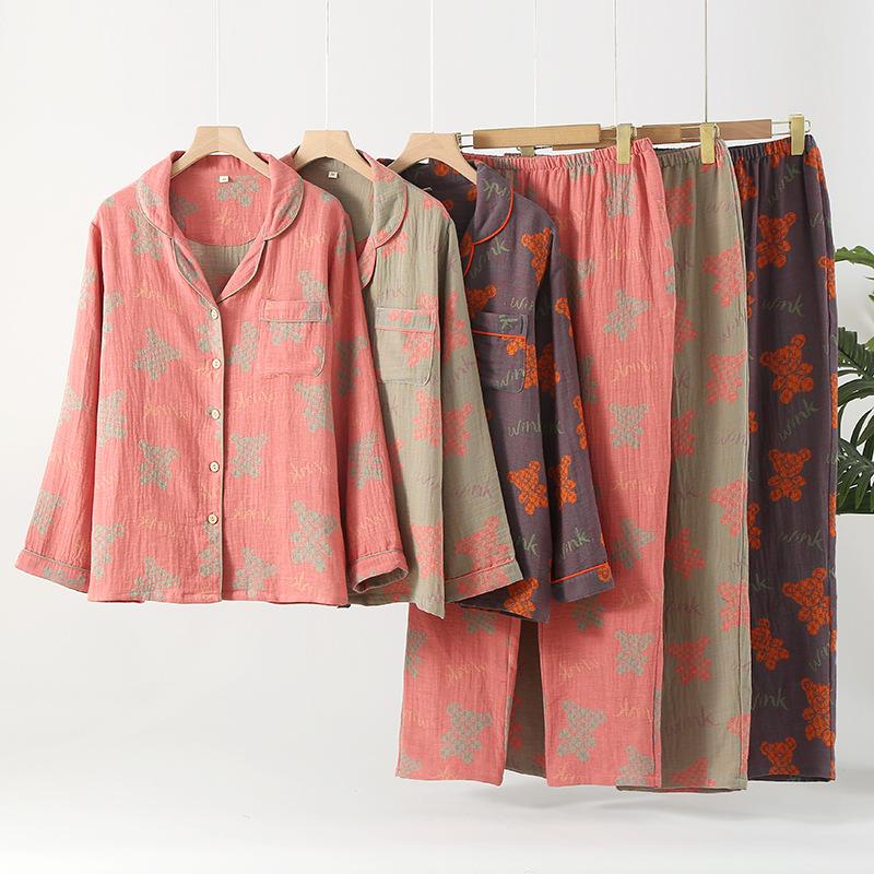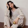 Nuevo pijama de mujer de jacquard teñido en hilo, de algodón puro, de doble capa, retro, de manga larga, pantalones finos, para primavera y verano, fabricantes de ropa para el hogar