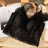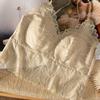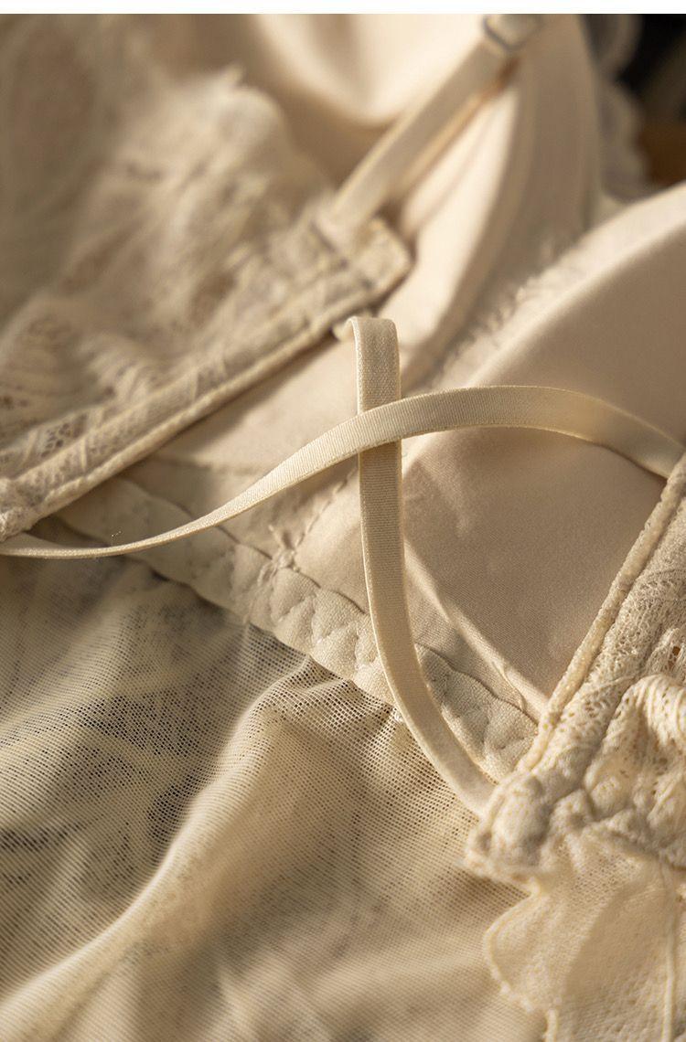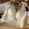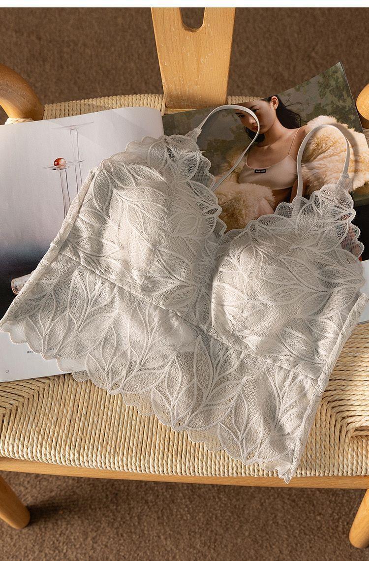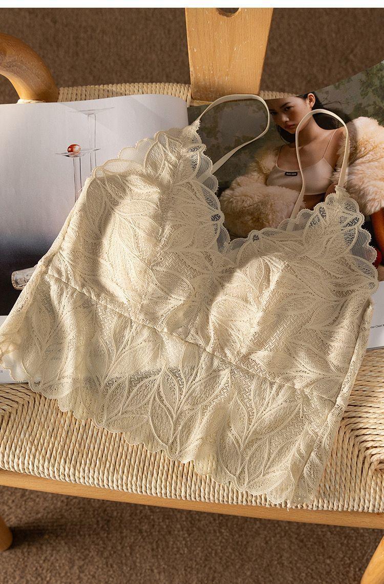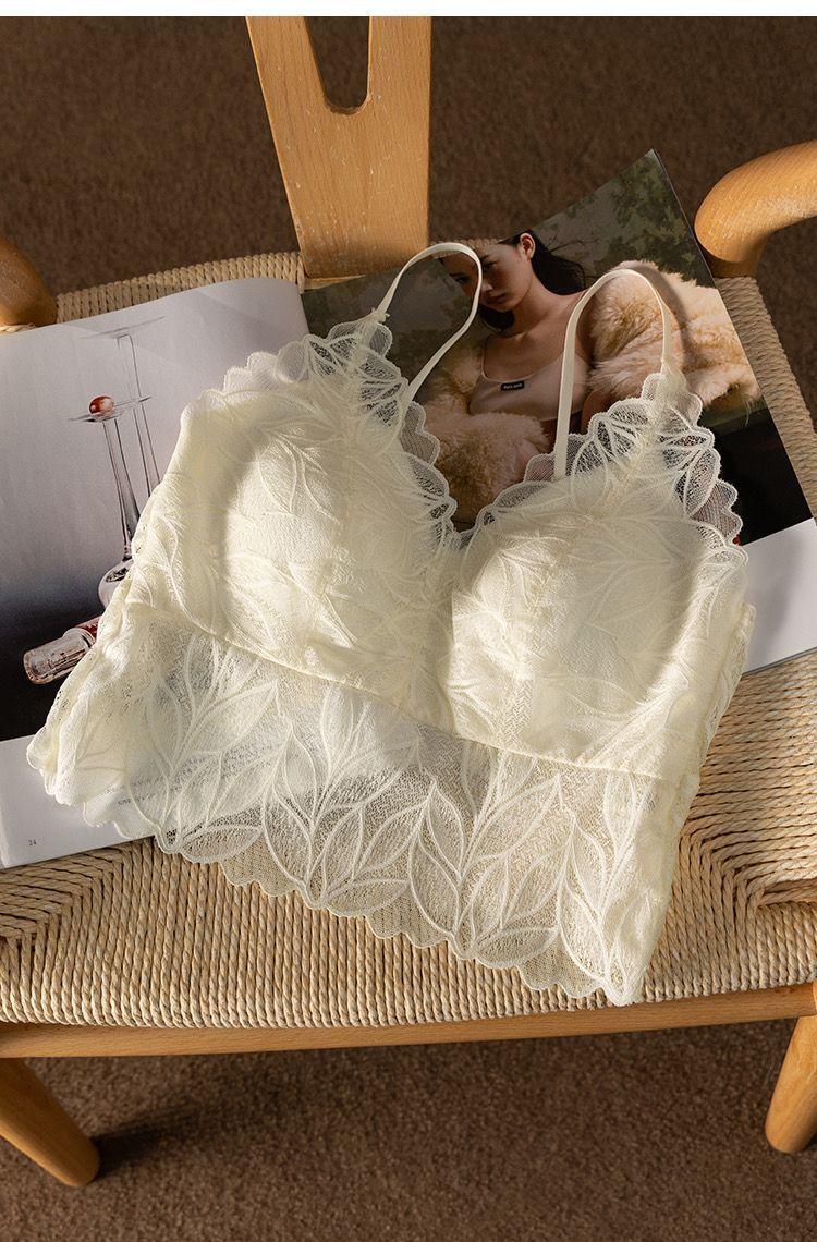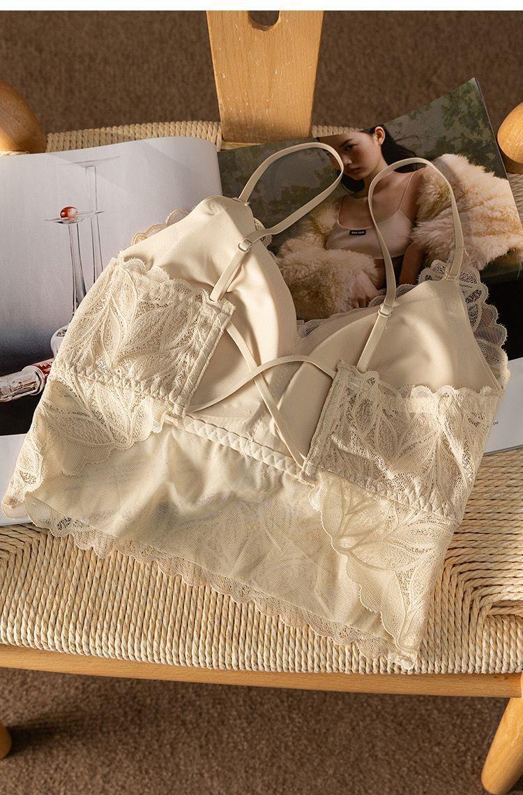Sujetador largo con copa triangular francesa, elegante y suave, con encaje cruzado y espalda hermosa, sin aro de acero, ropa interior tipo cabestrillo.