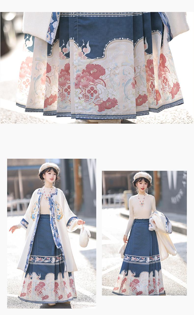 Abrigo Hanfu de primavera y otoño para mujer adulta, hecho en Ming, con forro polar, grueso y a juego, con falda con cara de caballo, vestido de Año Nuevo Guofeng
