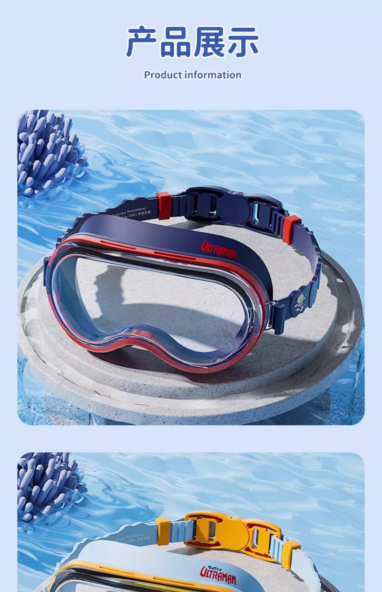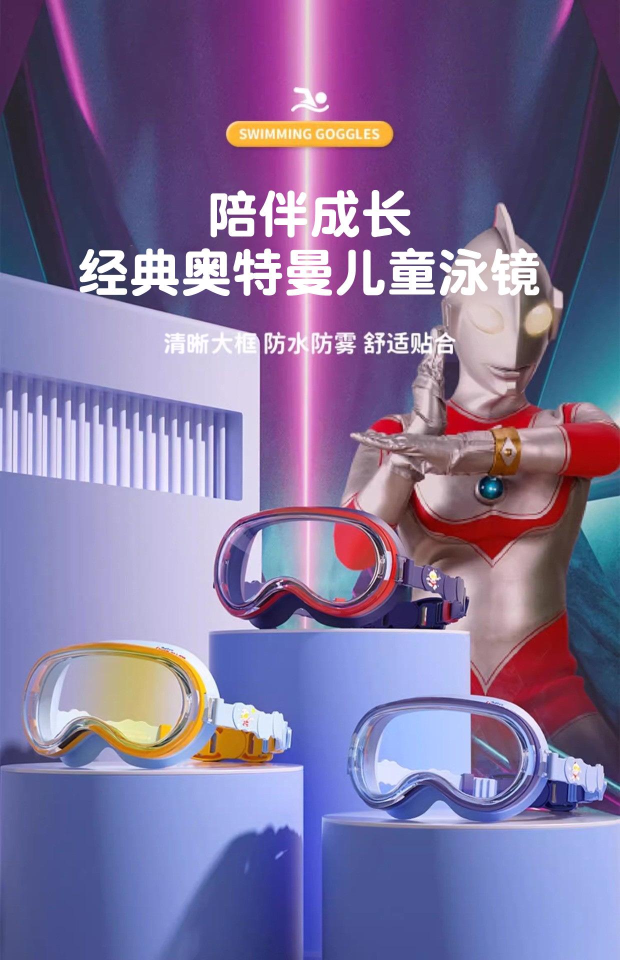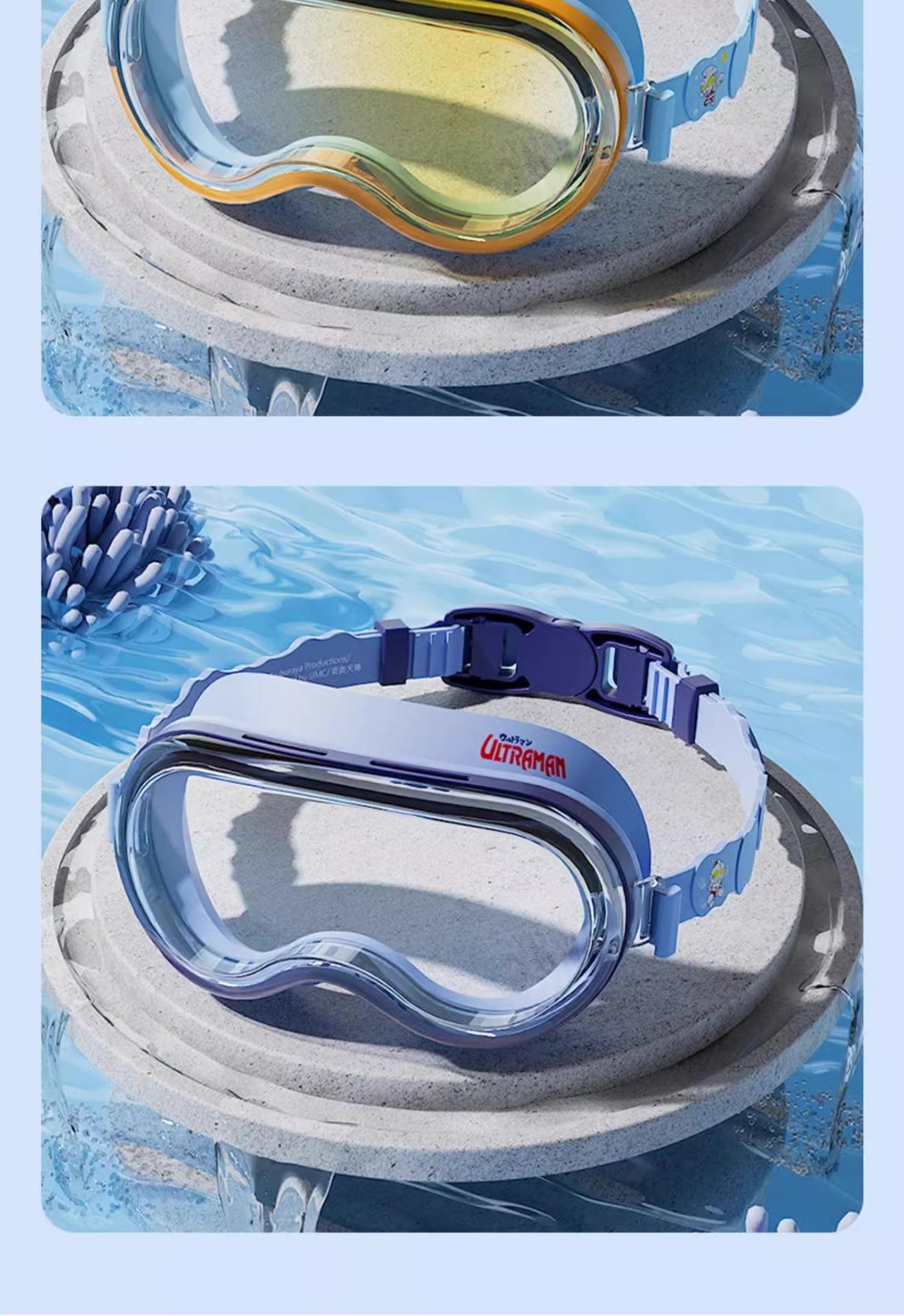 Gafas de Natación Clásicas Ultraman para Niños Impermeables y Antivaho Gafas de Natación HD para Niños Gafas de Natación de Montura Grande y Set de Gorro de Natación
