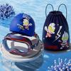 Navy blue swimming goggles + silicone cap + swimming bag [free earplugs]