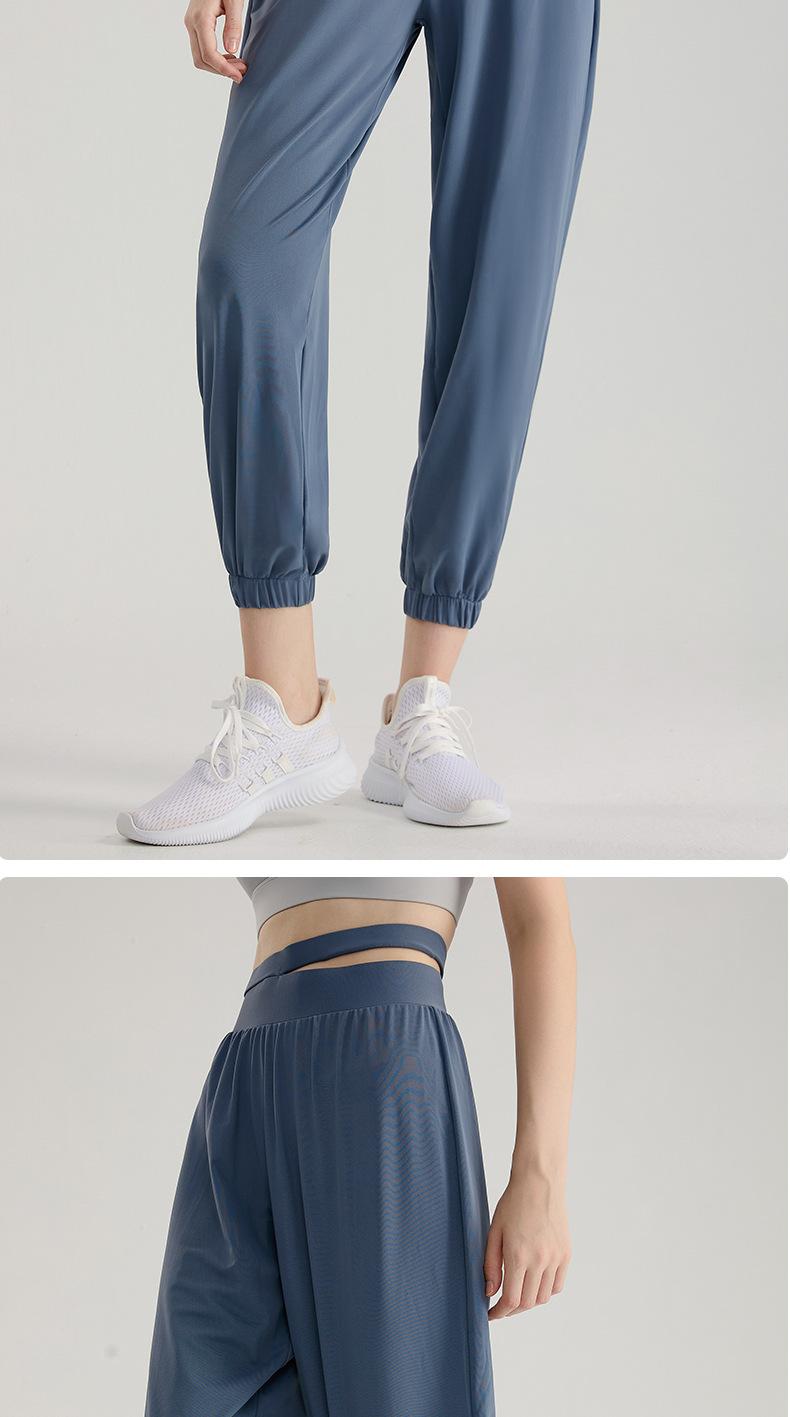Pantalones deportivos de cintura alta con doble cintura hueca para mujer, pantalones de yoga adelgazantes, pantalones holgados para correr, fitness, transpirables y de secado rápido.