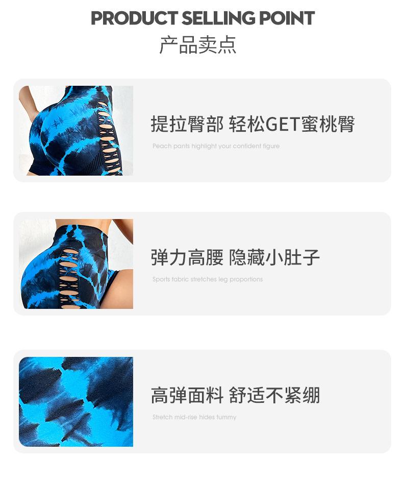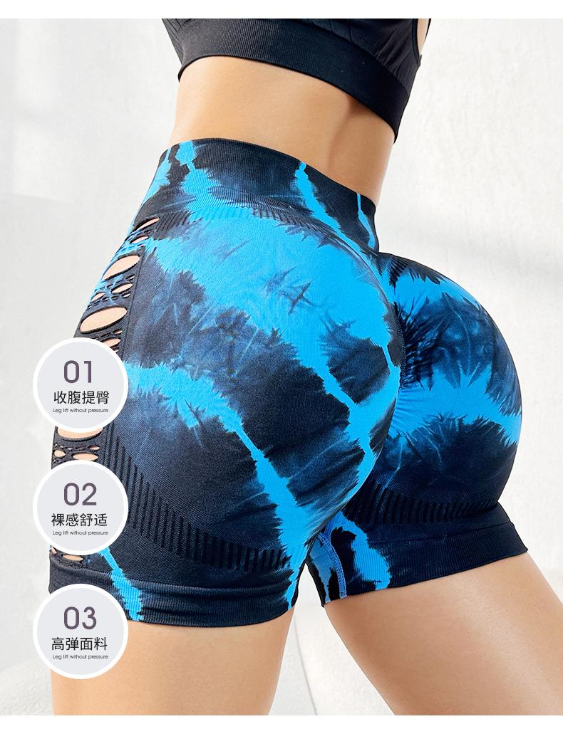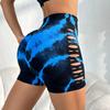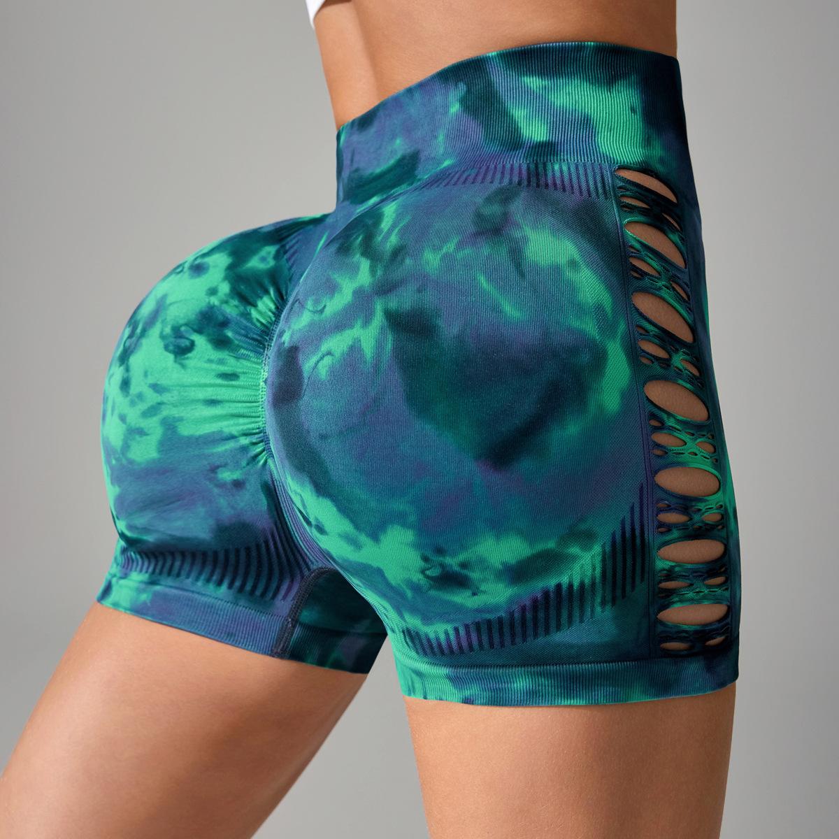 Shorts Deportivos de Malla Hueca Tie-Dye para Mujer con Glúteos de Durazno Ajustados Levantaglúteos Fitness Yoga Pantalones de Tres Puntos Elásticos de Primavera y Verano