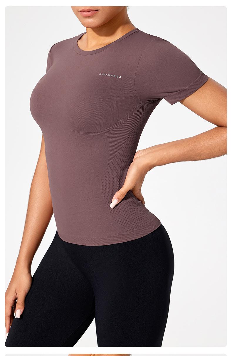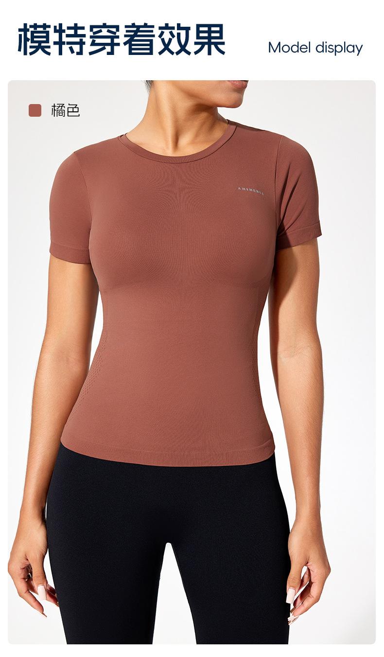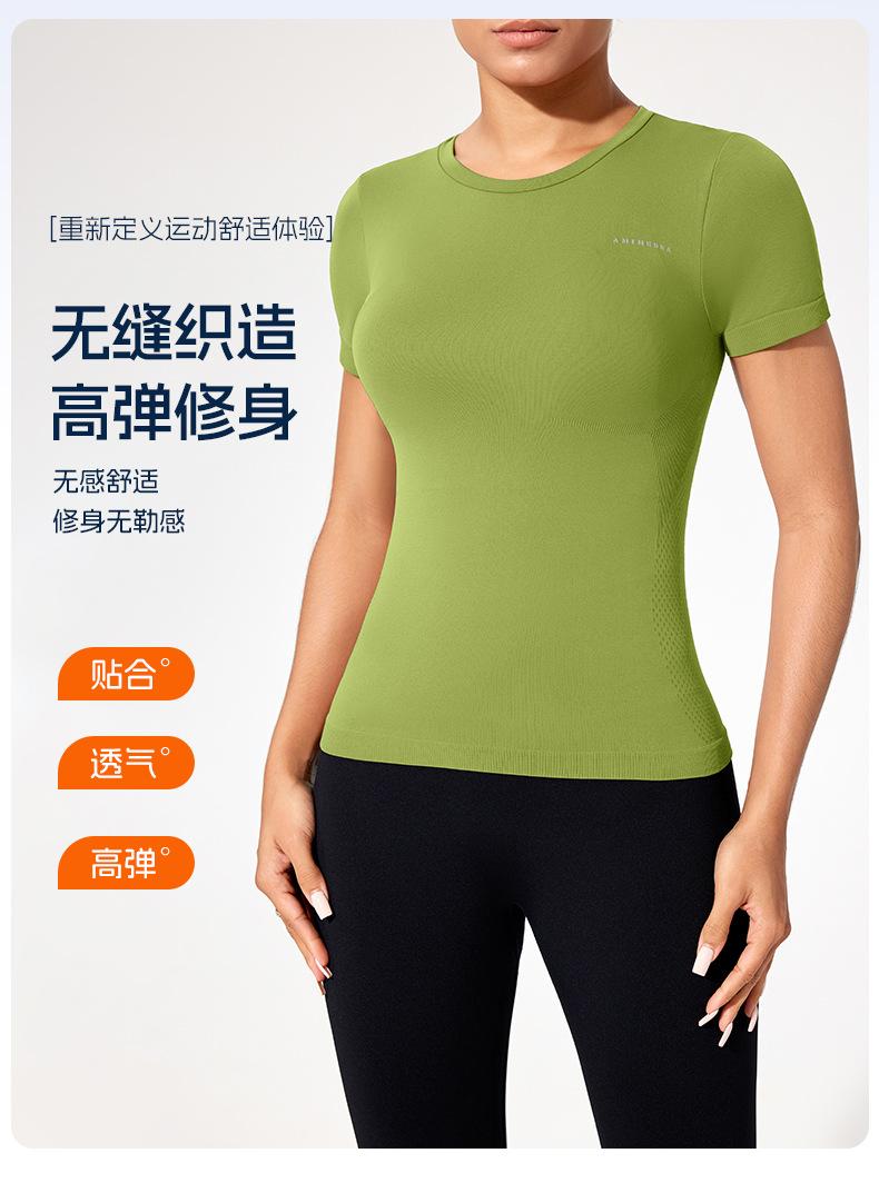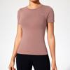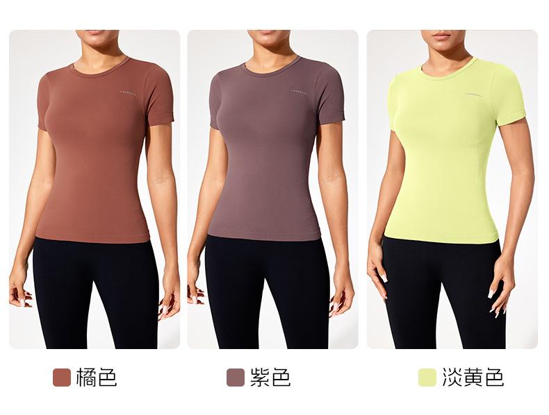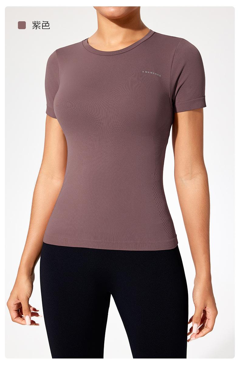 Camiseta deportiva transfronteriza de manga corta para mujer, traje elástico para correr y fitness, top adelgazante de verano, traje fino para pilates y yoga.