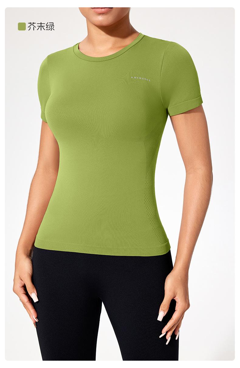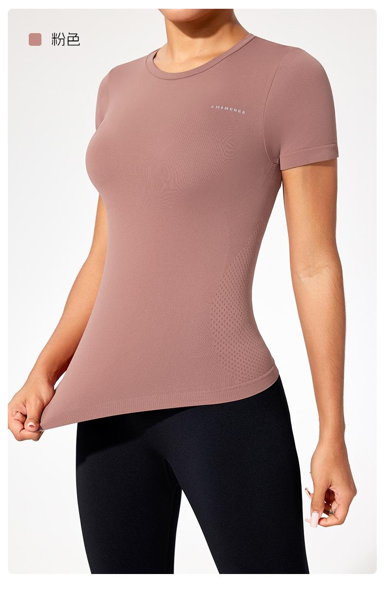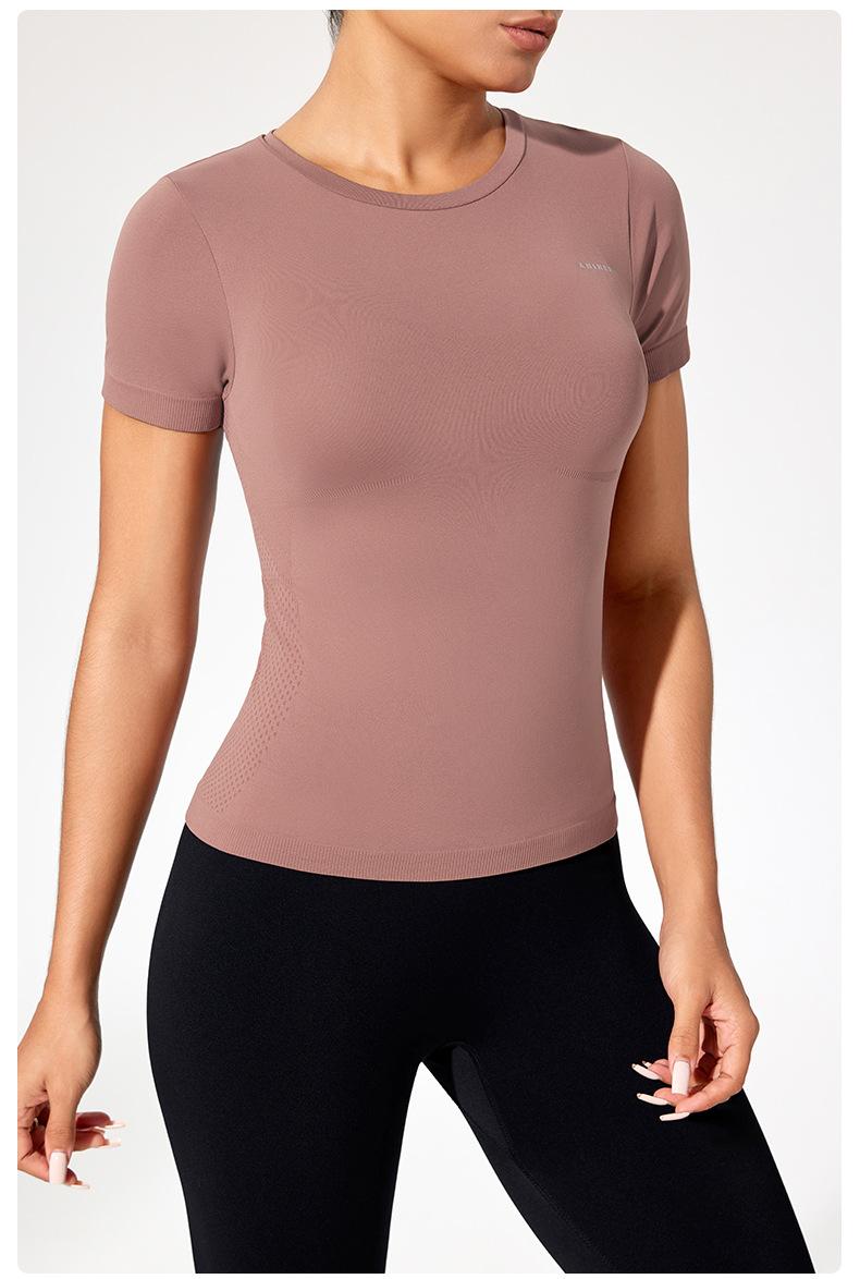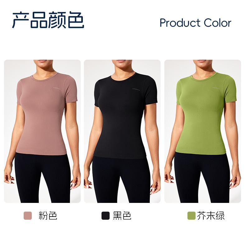 Camiseta deportiva transfronteriza de manga corta para mujer, traje elástico para correr y fitness, top adelgazante de verano, traje fino para pilates y yoga.