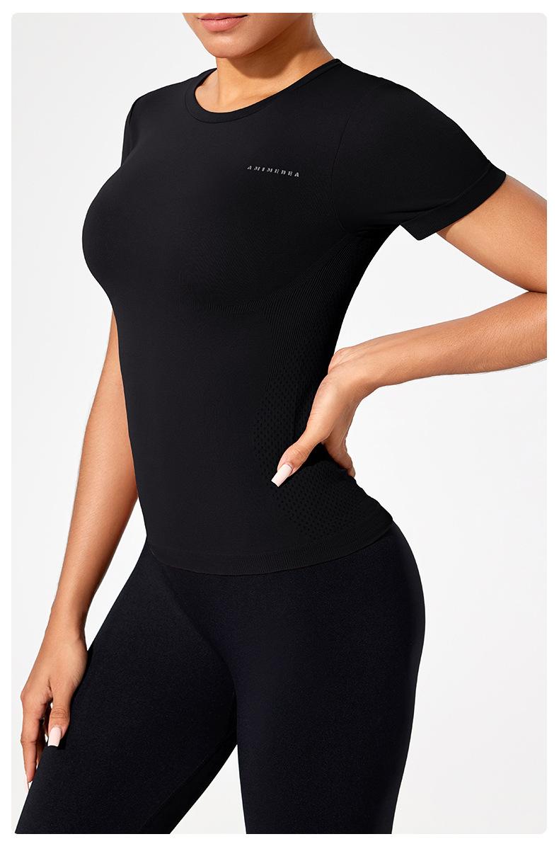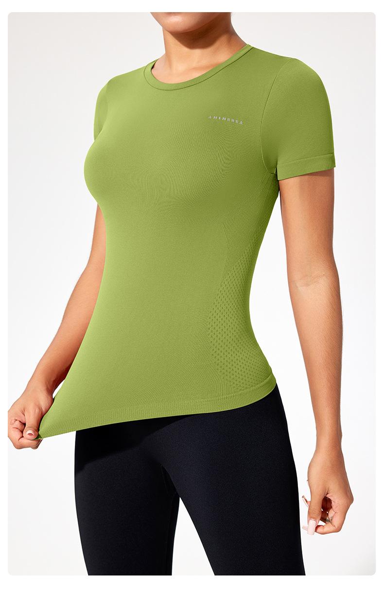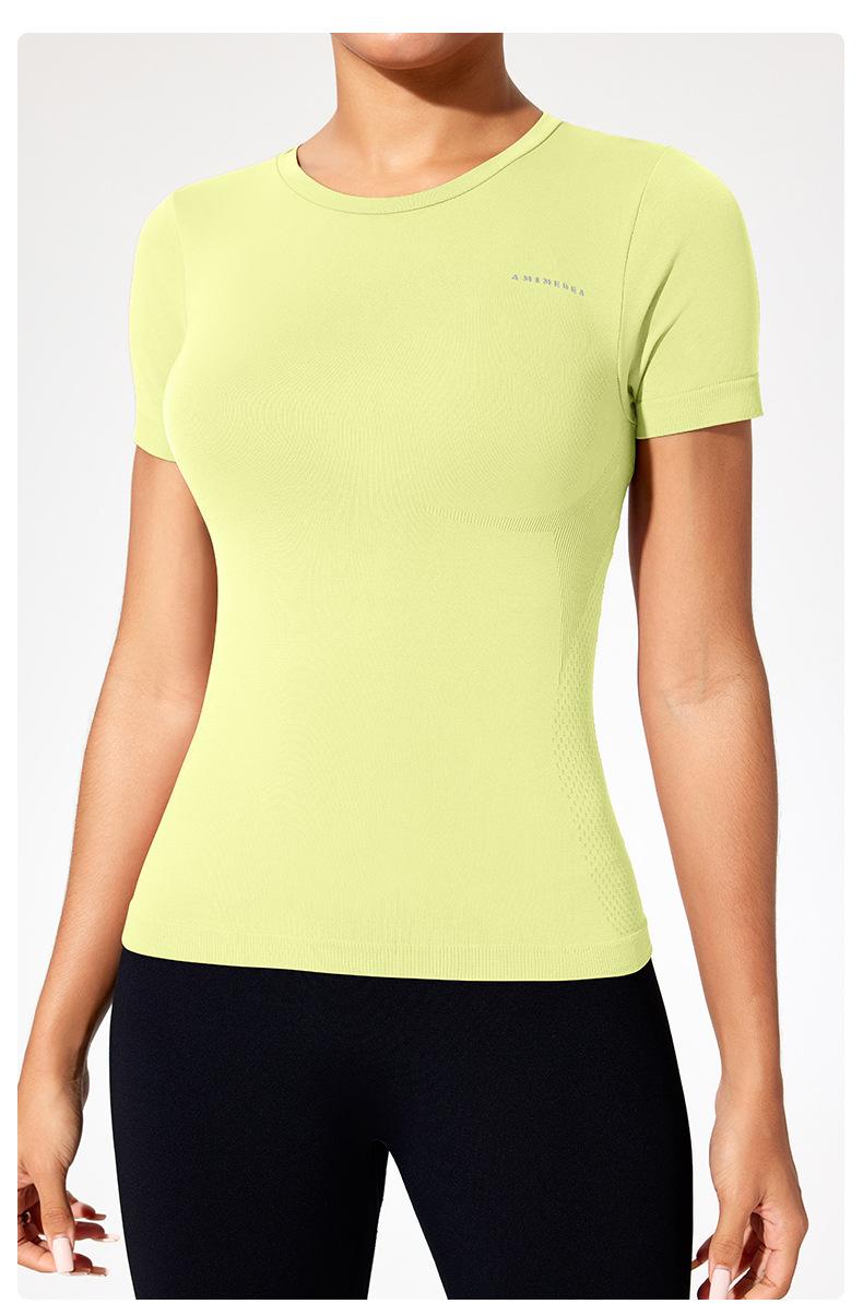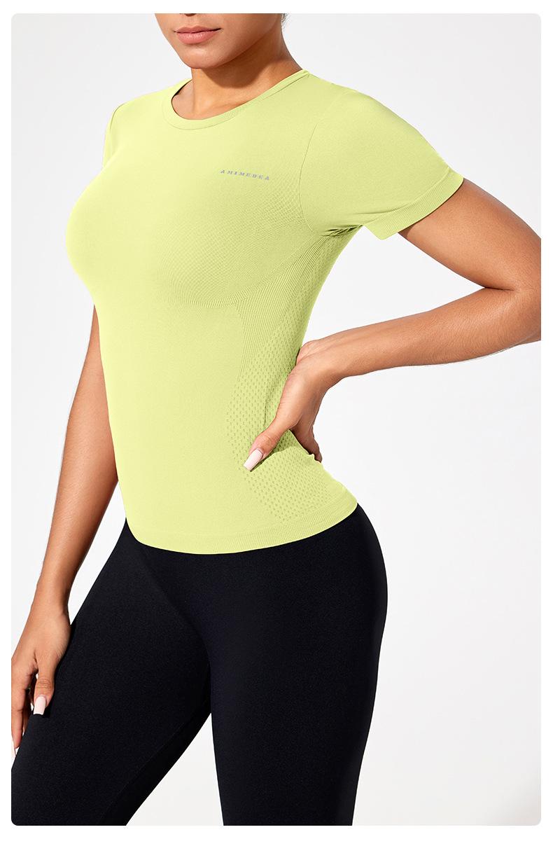 Playera deportiva transfronteriza de manga corta para mujer, elástica, para correr, fitness, tops delgados de verano, delgada, ropa de yoga para Pilates