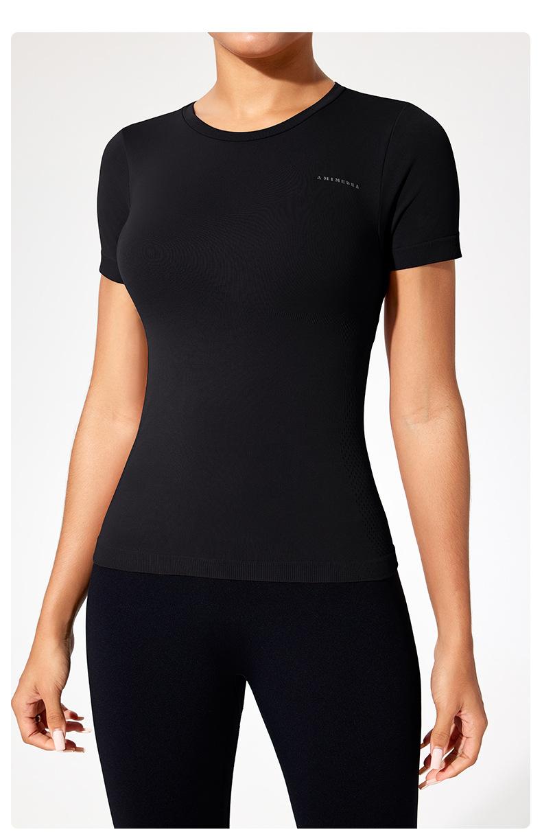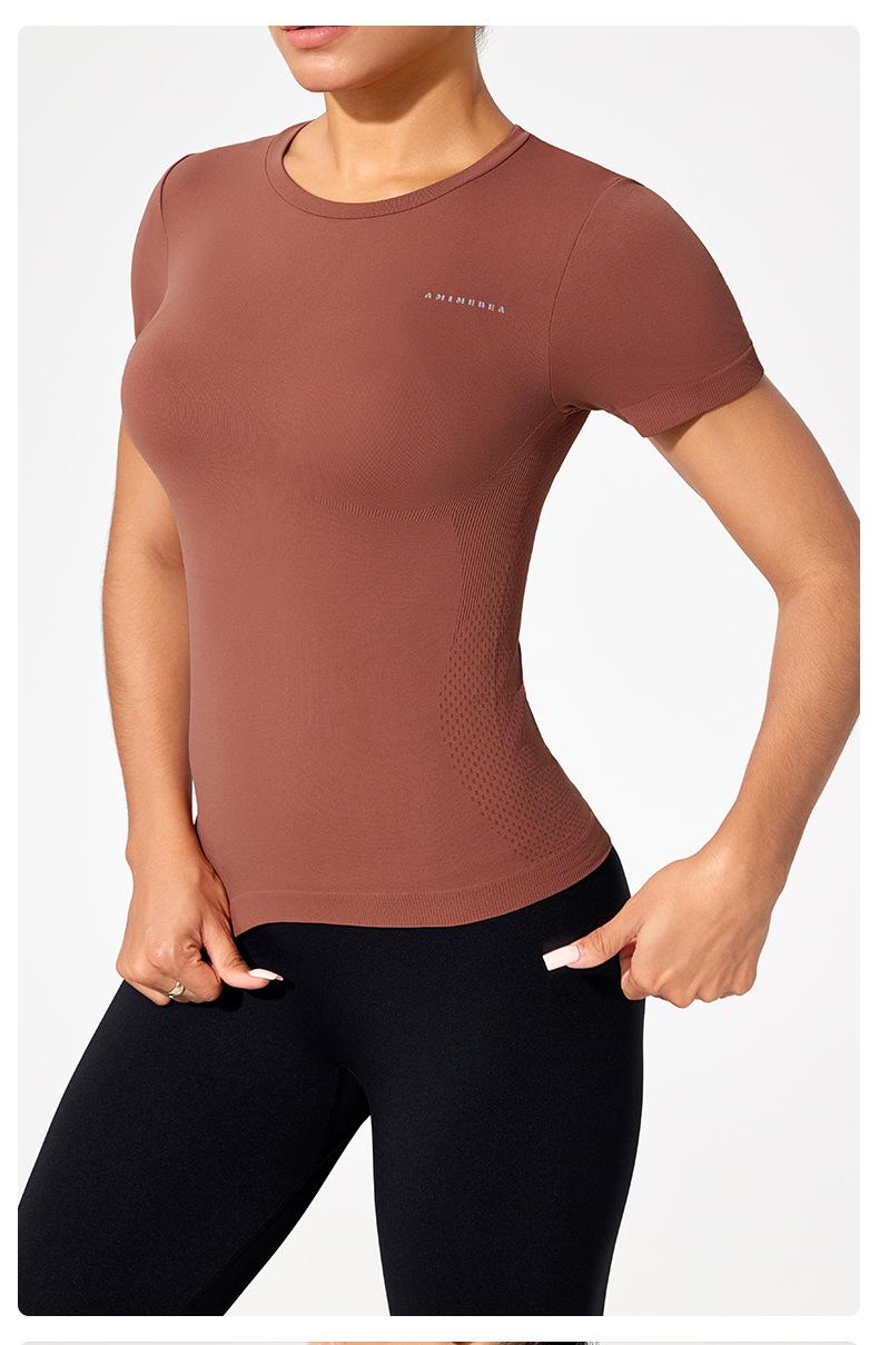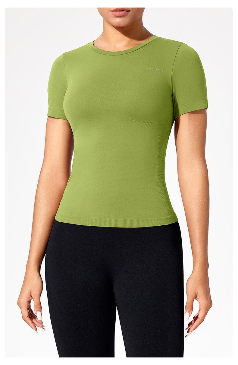 Playera deportiva transfronteriza de manga corta para mujer, elástica, para correr, fitness, tops delgados de verano, delgada, ropa de yoga para Pilates