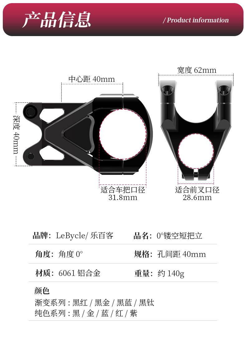 Potencia para Bicicleta de Montaña Lebaike Bicicleta 40mm Fuera de Carretera Cnc Universal 31.8 Ultraligera Corta Potencia de 0 Grados Recortada