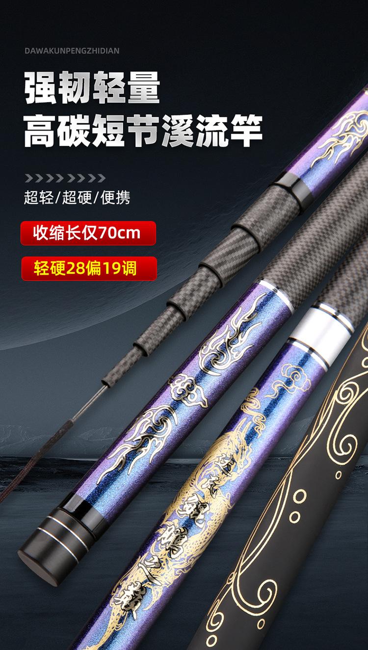Venta al por Mayor Caña de Mano de Alto Carbono Caña de Pescar Caña de Sección Corta 70cm Caña de Mano Ultraligera Ultradura Caña de Pescar 19 Caña de Arroyo Ajustable