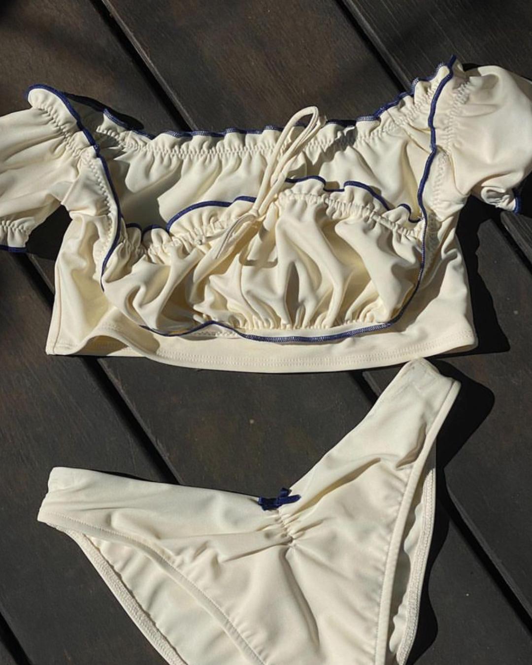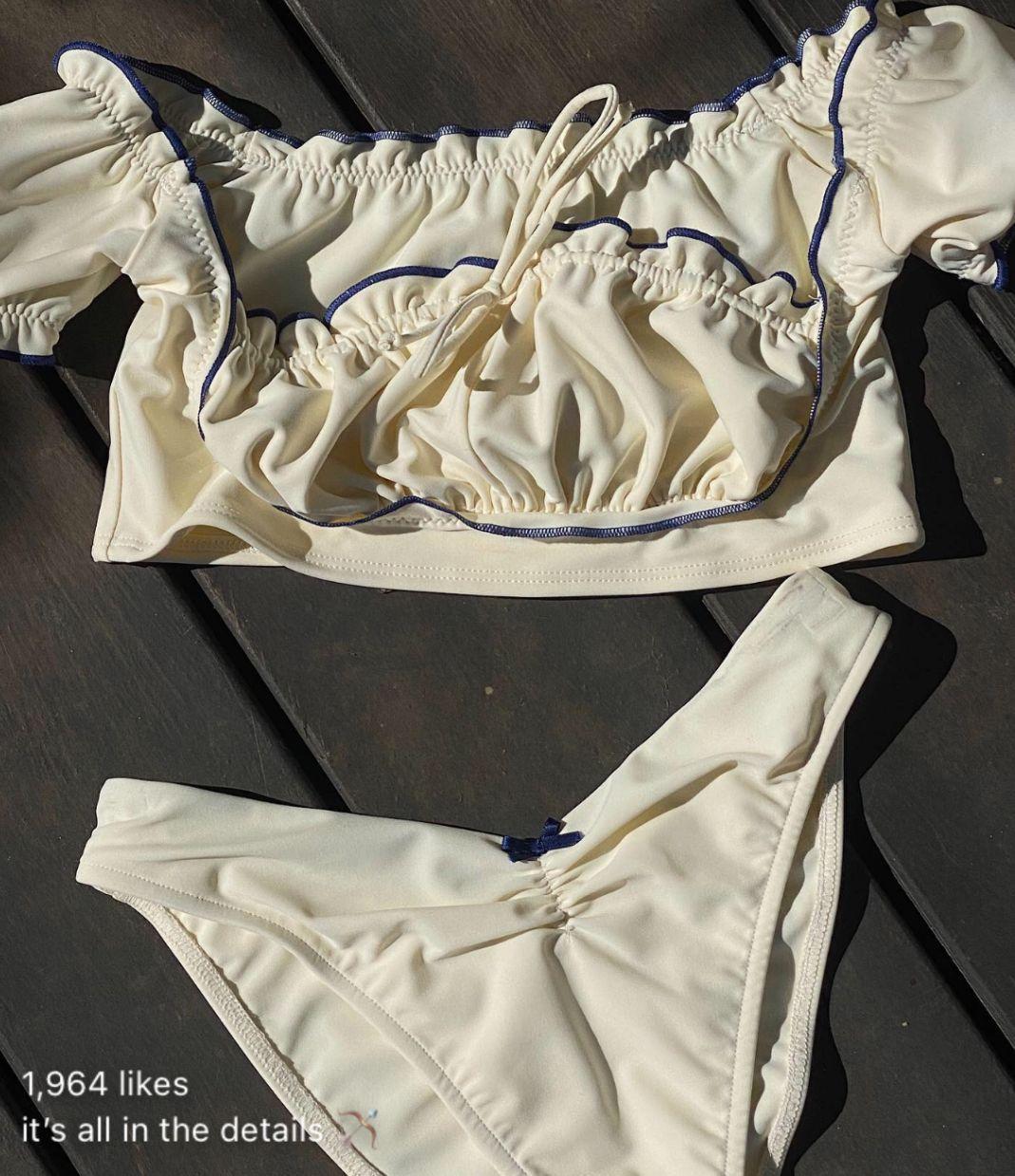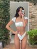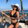 Traje de Baño Bikini Dividido de Color Sólido con Borde Negro Nuevo de Comercio Exterior Europeo y Americano Spice Girls Sexy Espalda Descubierta Vacaciones Aguas Termales Conjunto de Dos Piezas