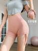 Pantalones de yoga ajustados de cintura alta con pliegues en color melocotón para realzar la cadera y el abdomen, pantalones cortos deportivos profesionales de verano