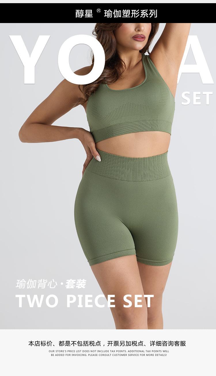 Traje deportivo informal sin costuras para mujer, traje de yoga de dos piezas de secado rápido, traje de yoga, pantalones cortos de belleza, traje de fitness