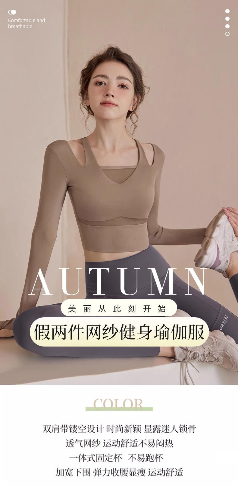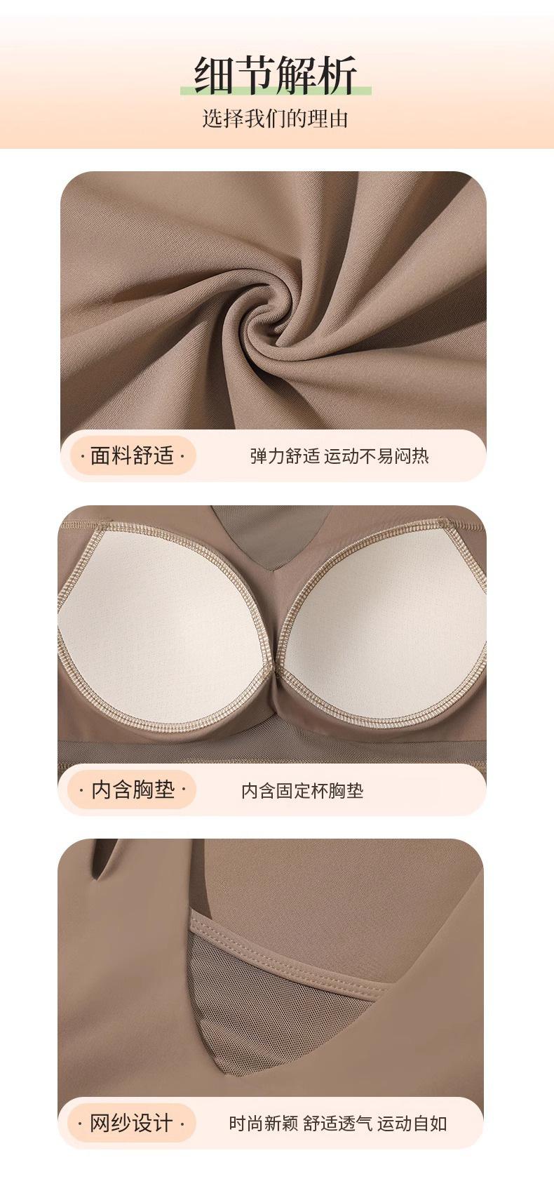 Brown top [fixed cup], Black top [fixed cup], Brown top + gray yoga pants, Brown top + gray fake two-piece pan...