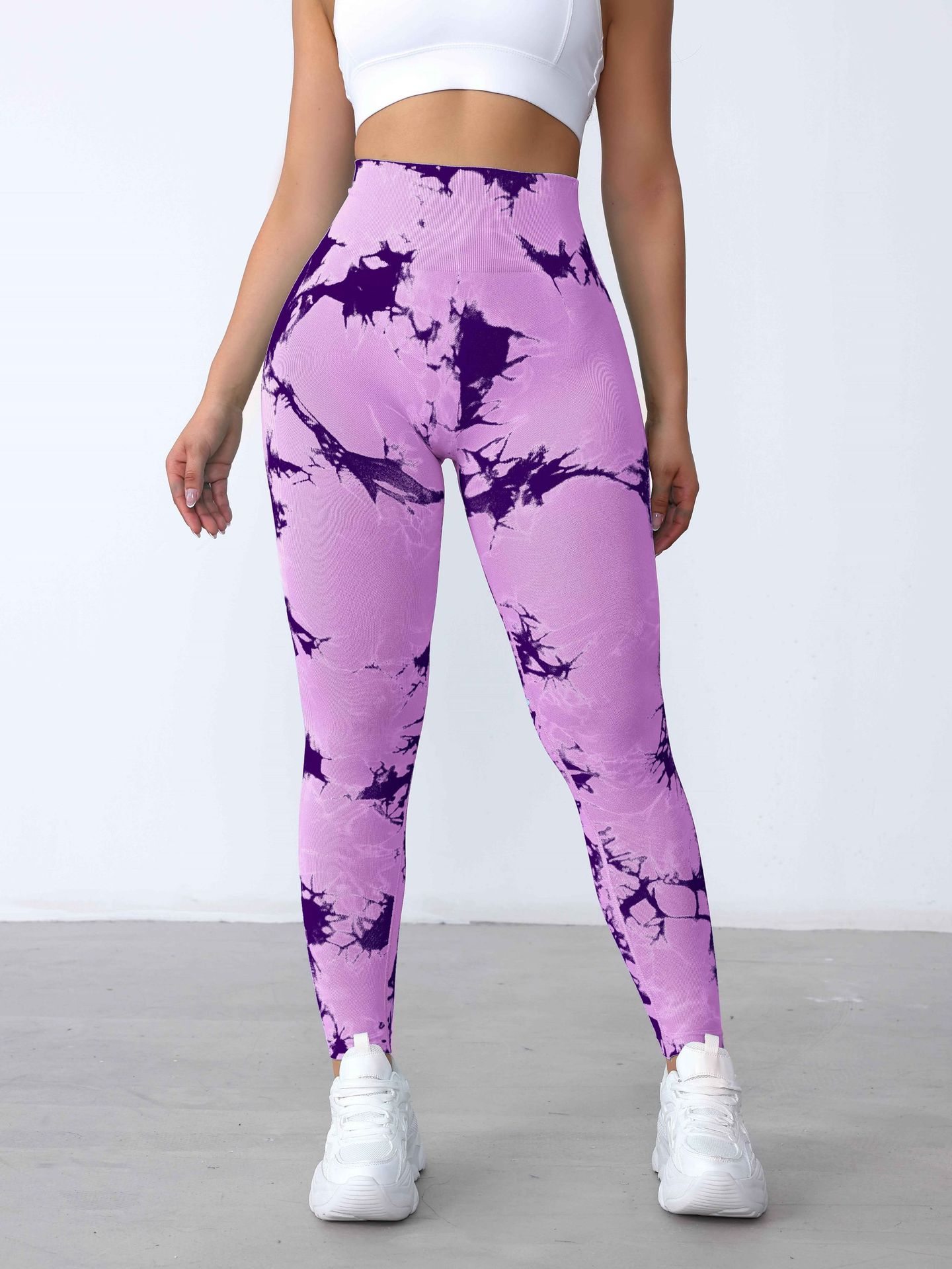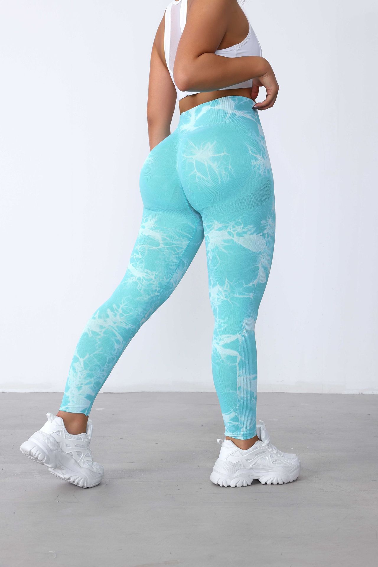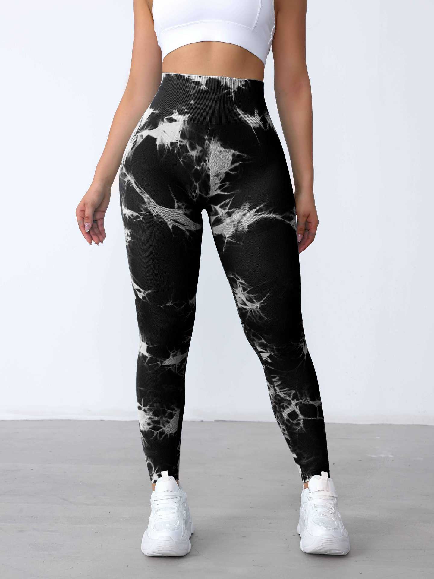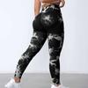 Pantalones de Fitness de Secado Rápido Sin Costuras de Cintura Alta con Control de Abdomen Trasero Durazno para Mujer, Pantalones de Yoga Tie-Dye de Verano Sensación Desnuda, Levanta Glúteos