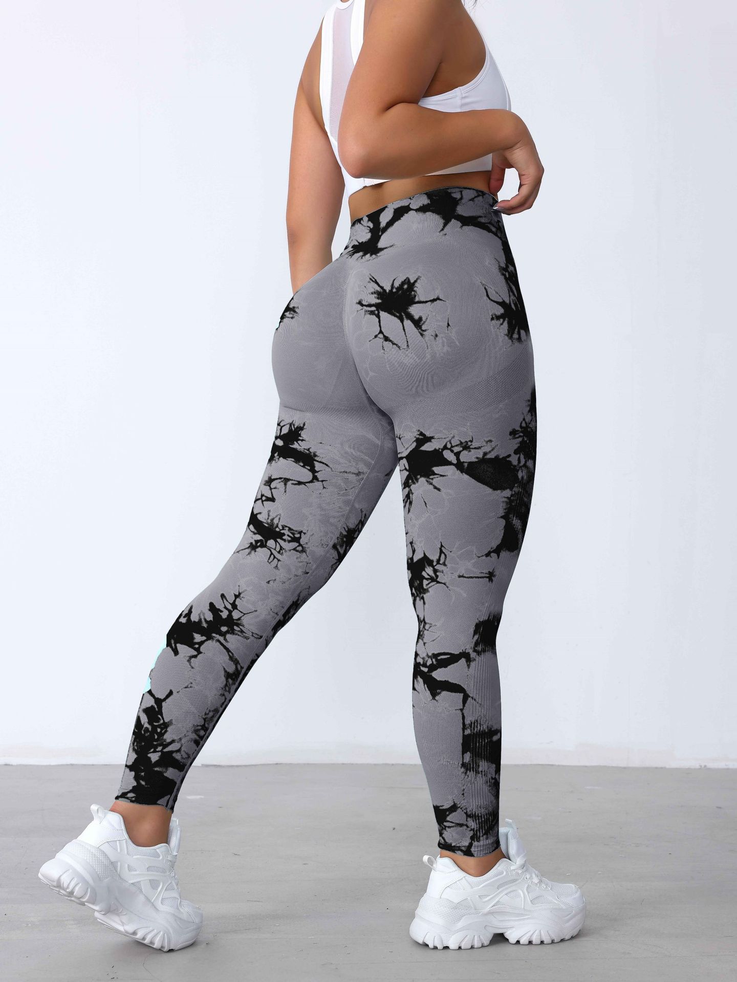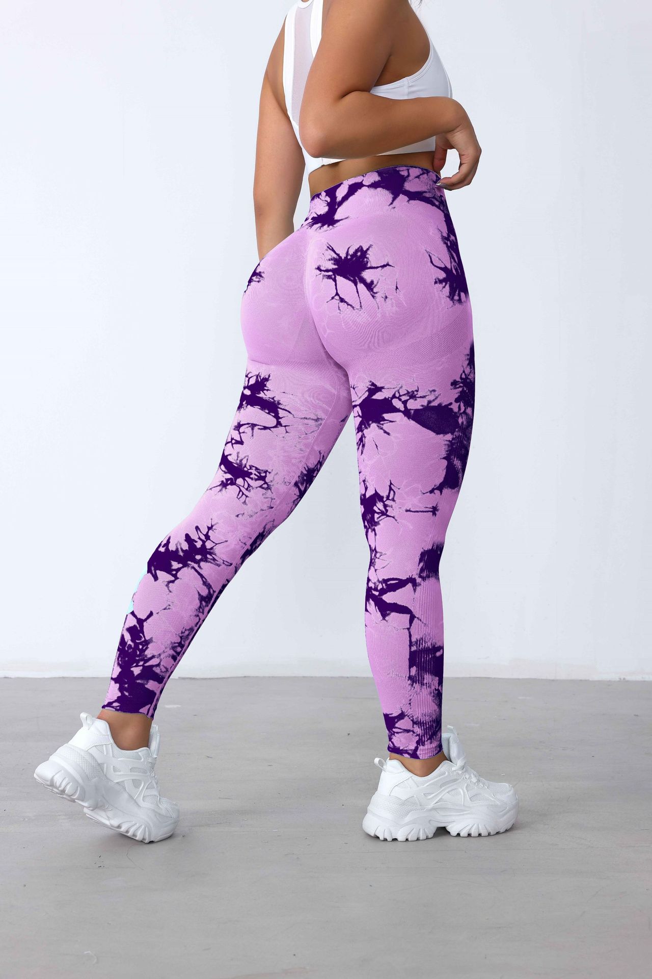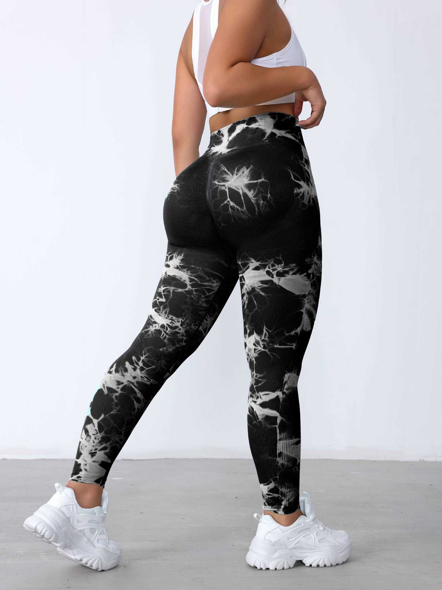 Pantalones de Fitness de Secado Rápido Sin Costuras de Cintura Alta con Control de Abdomen Trasero Durazno para Mujer, Pantalones de Yoga Tie-Dye de Verano Sensación Desnuda, Levanta Glúteos