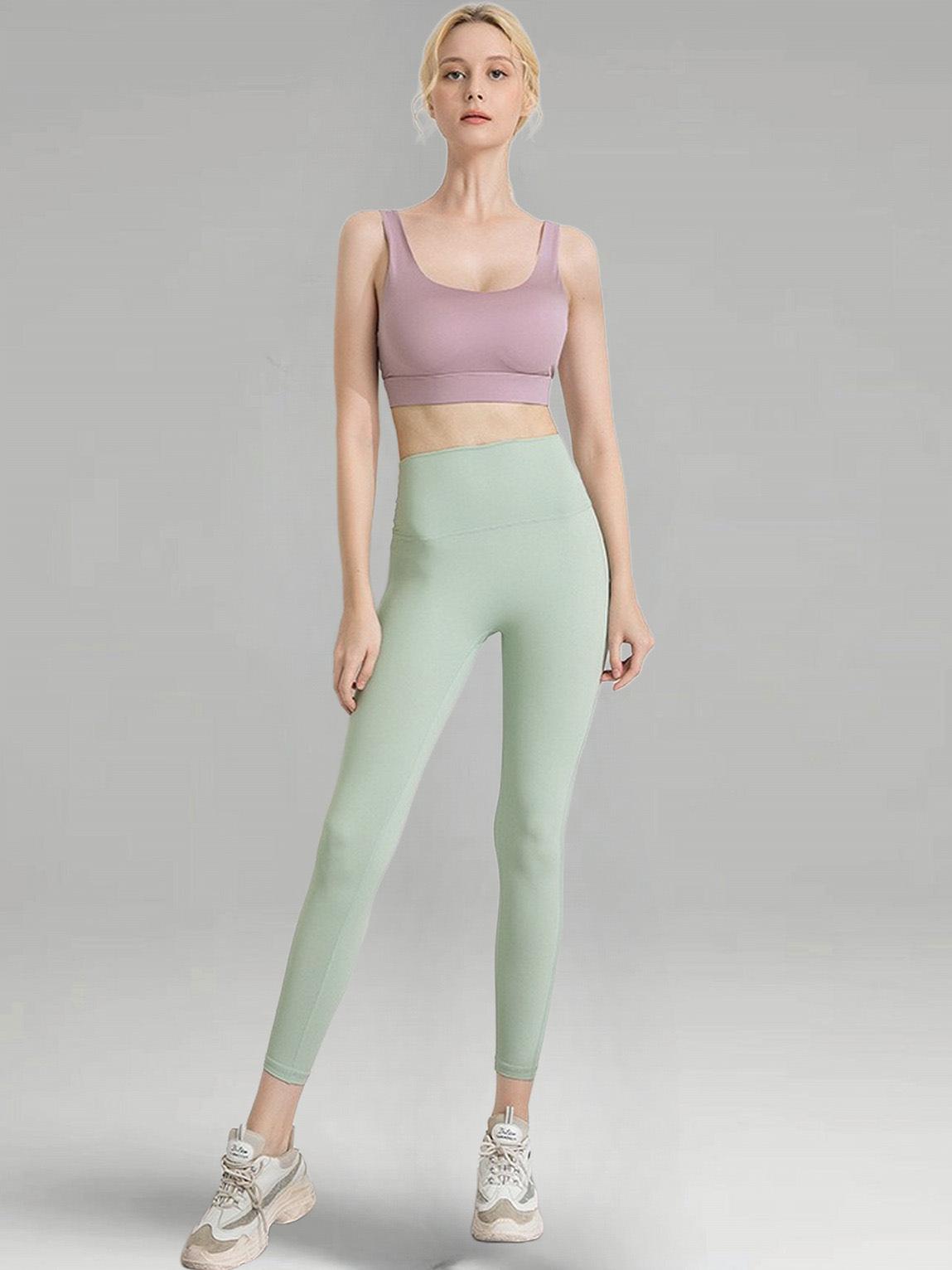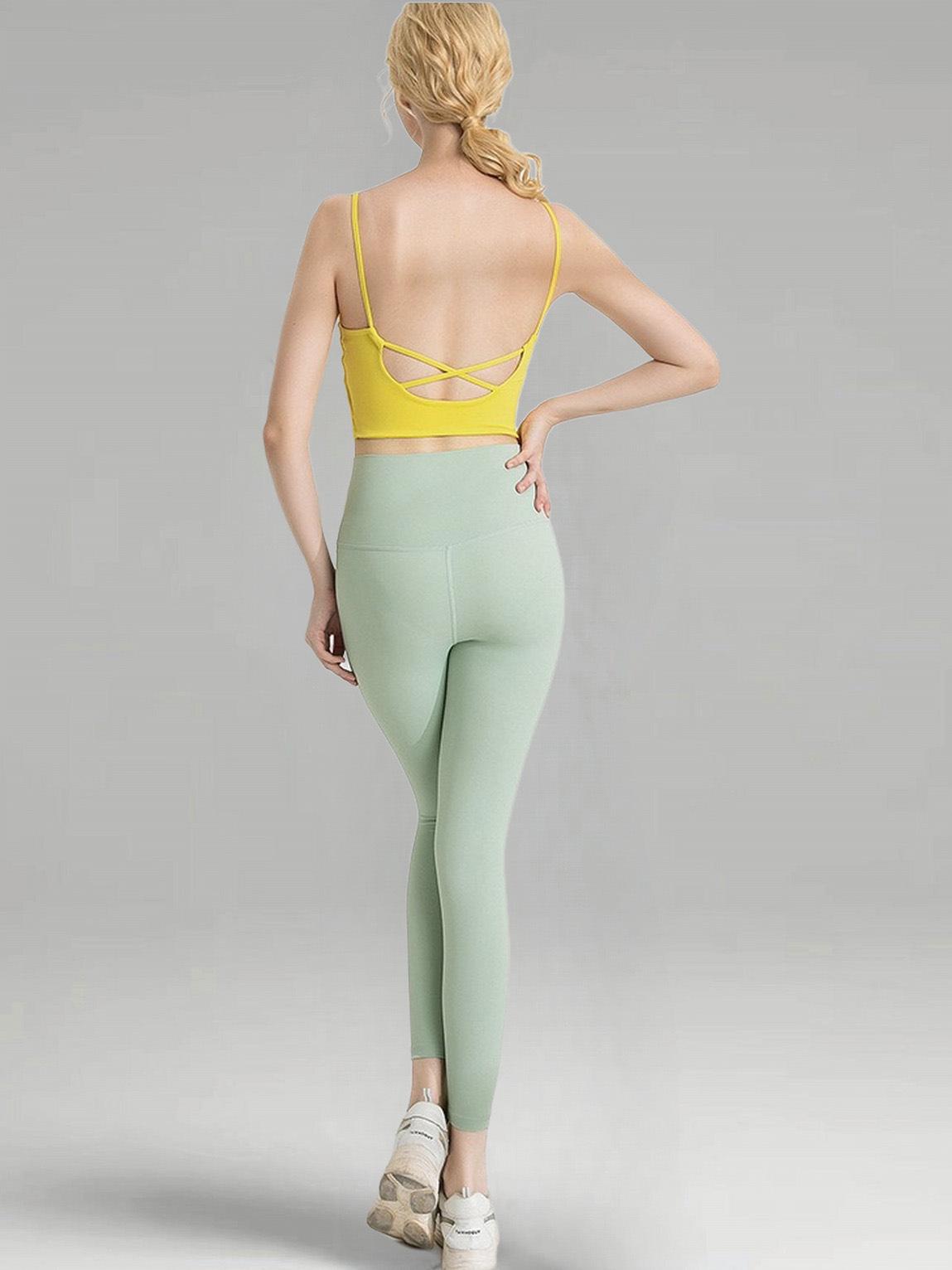 Pantalones de Yoga de Nailon Nude Transfronterizos Europeos y Americanos de Alta Elasticidad para Mujer Cintura Alta Levanta Glúteos Elásticos Fitness Deportes Pantalones Nueve Puntos Transpirables