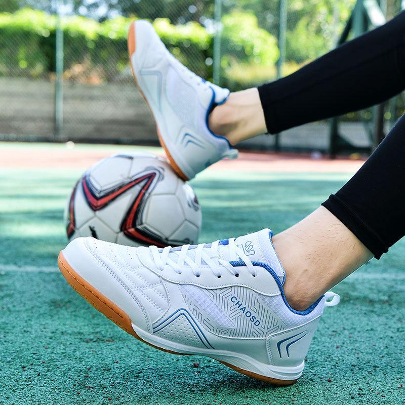 Zapatillas de fútbol sala de competición para estudiantes masculinos y femeninos, para entrenamiento juvenil, suela plana, antideslizantes, con base de carne IC y suelo de cemento.