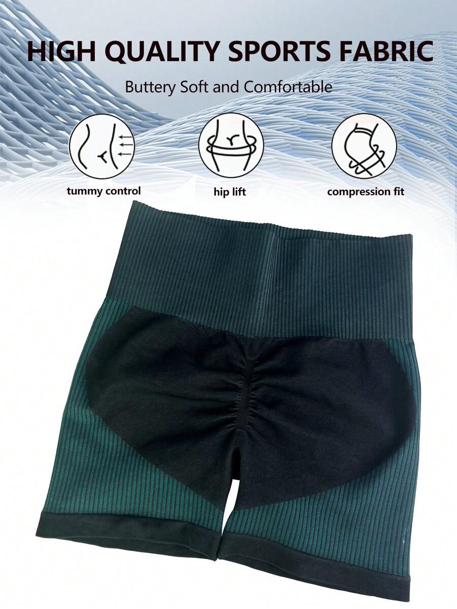 Pantalones Cortos de Yoga Sin Costuras Transfronterizos de Alta Venta Europeos y Americanos para Mujer, Cintura Alta, Fitness, Running, Deportes, Absorbentes de Humedad, de Secado Rápido, Pantalones de Tres Puntos