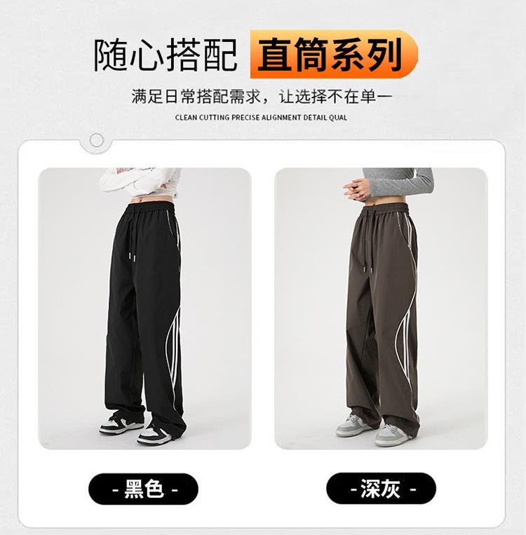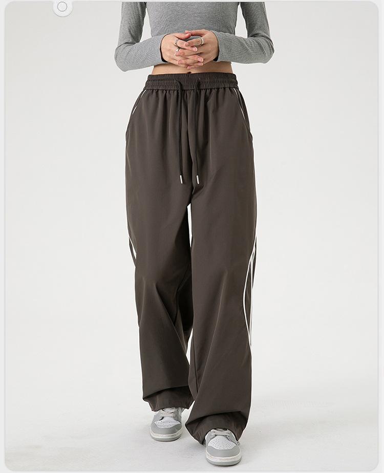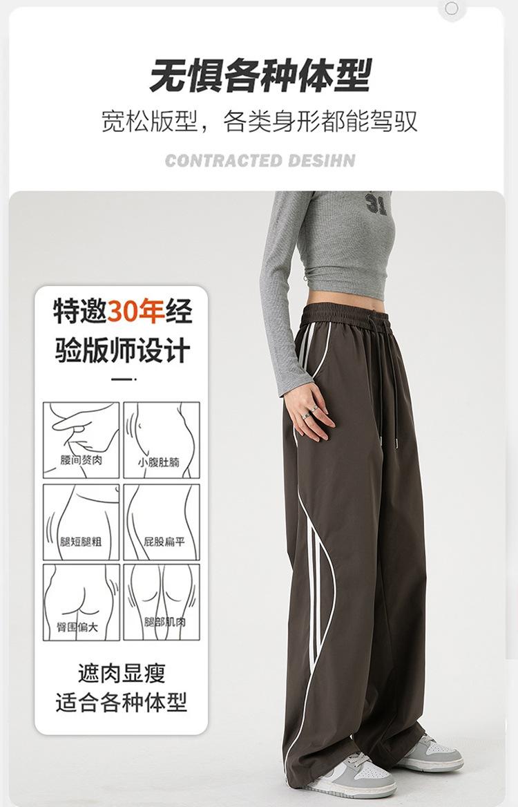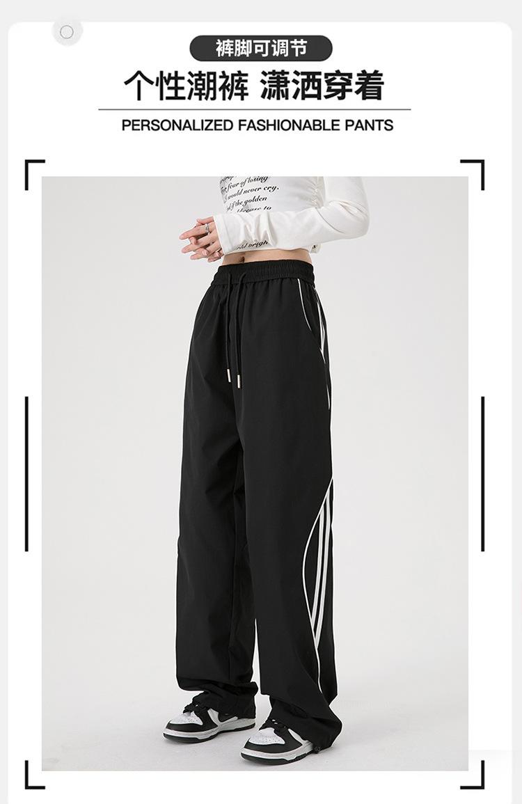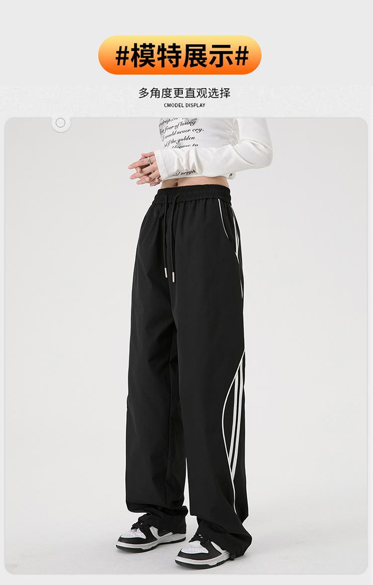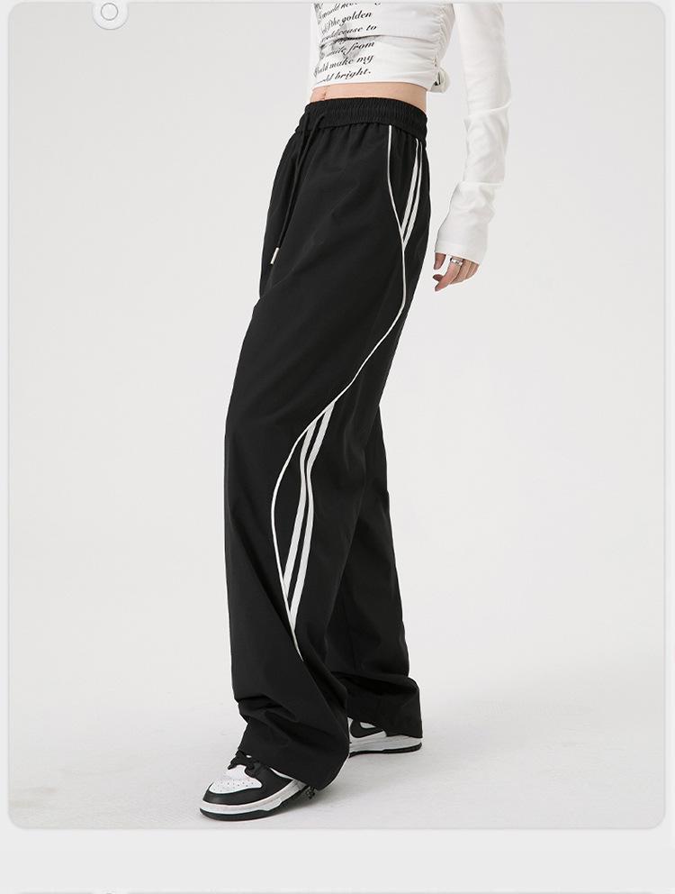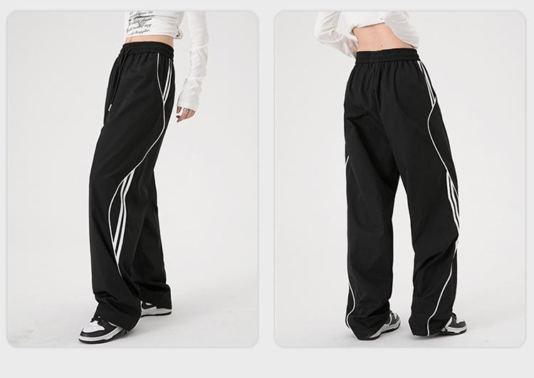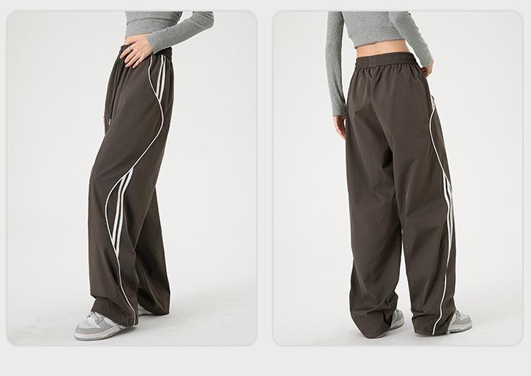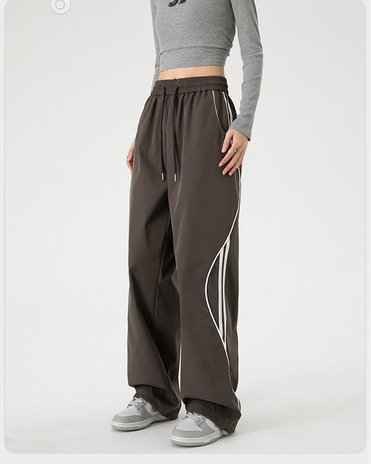 Pantalones deportivos para mujer, estilo americano, retro, modernos, primavera, otoño, verano, informales, con rayas laterales, diseño de línea S, pierna ancha, 2024