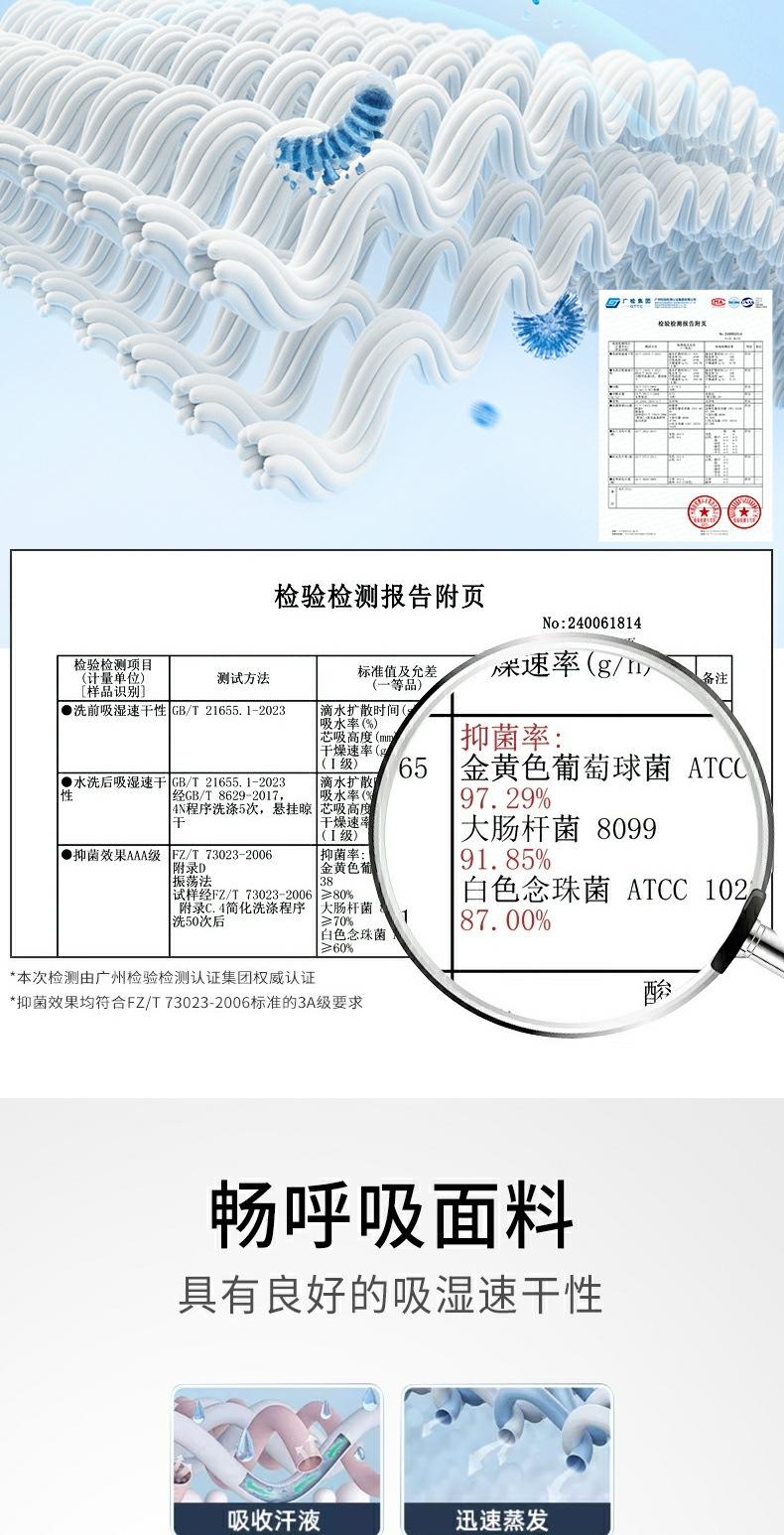 Descripción del Producto | Tejido absorbente de humedad, transpirable y antibacteriano, tejido transpirable, con buena absorción de humedad y propiedades de secado rápido. | ||