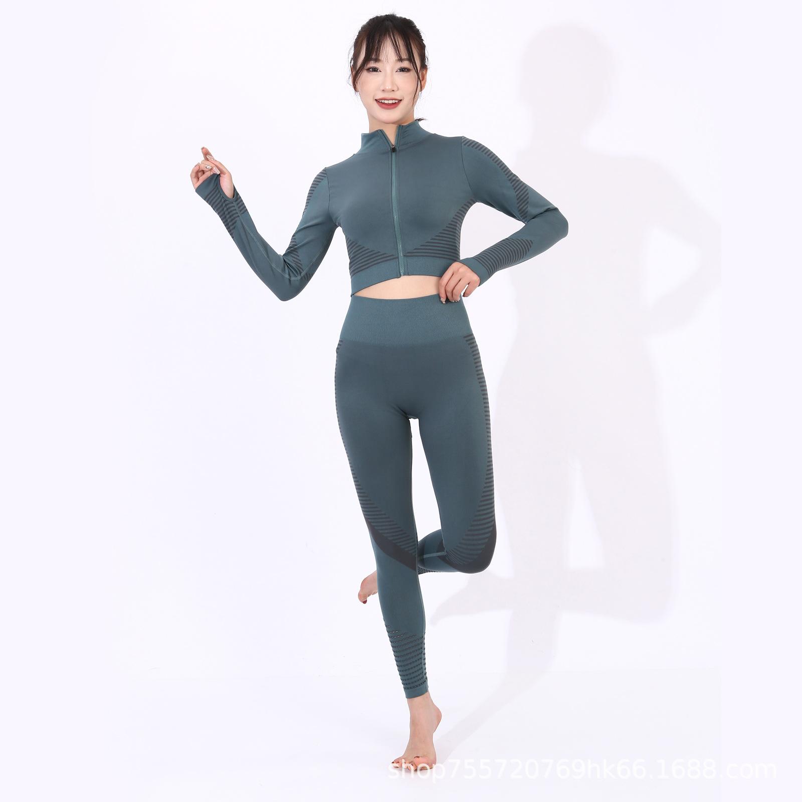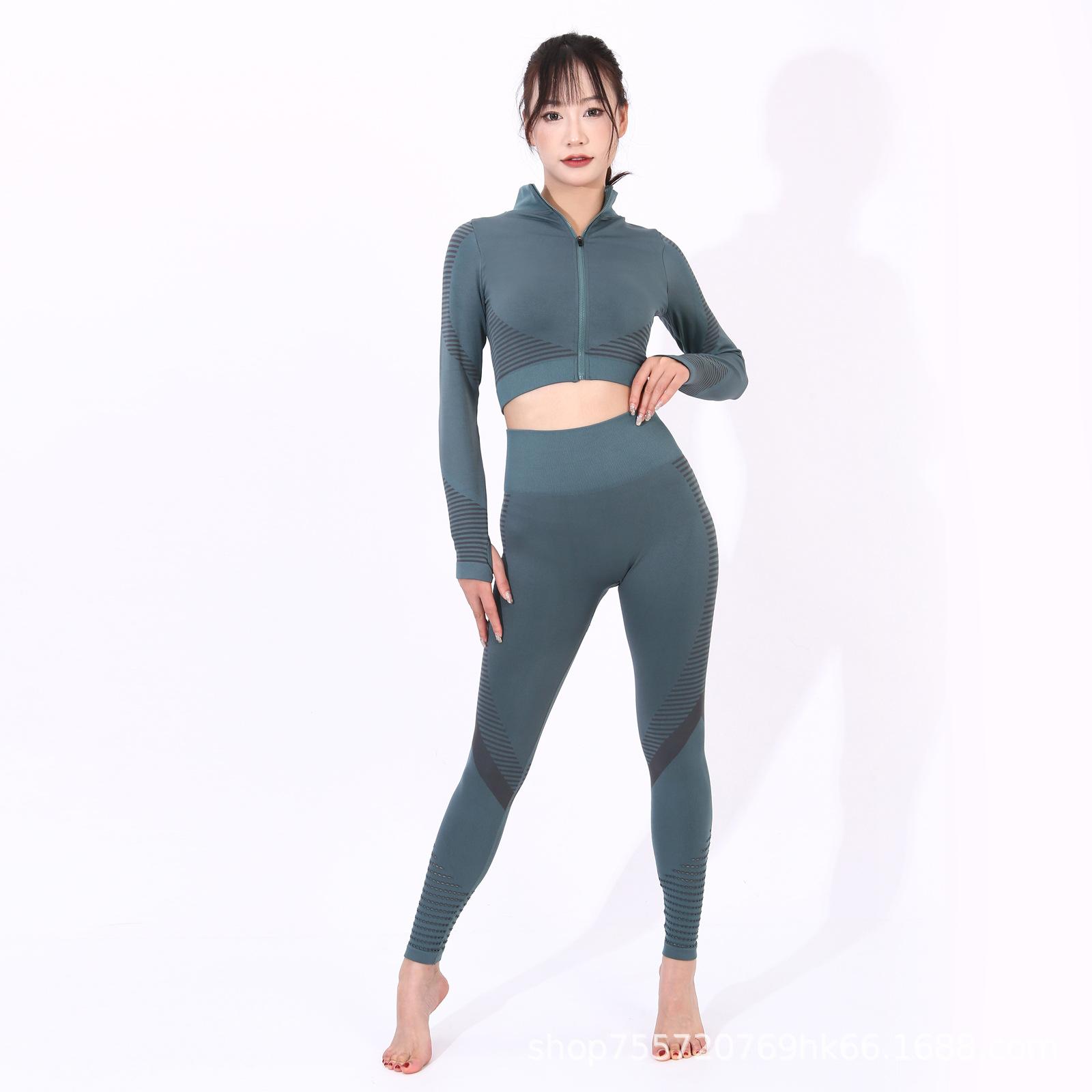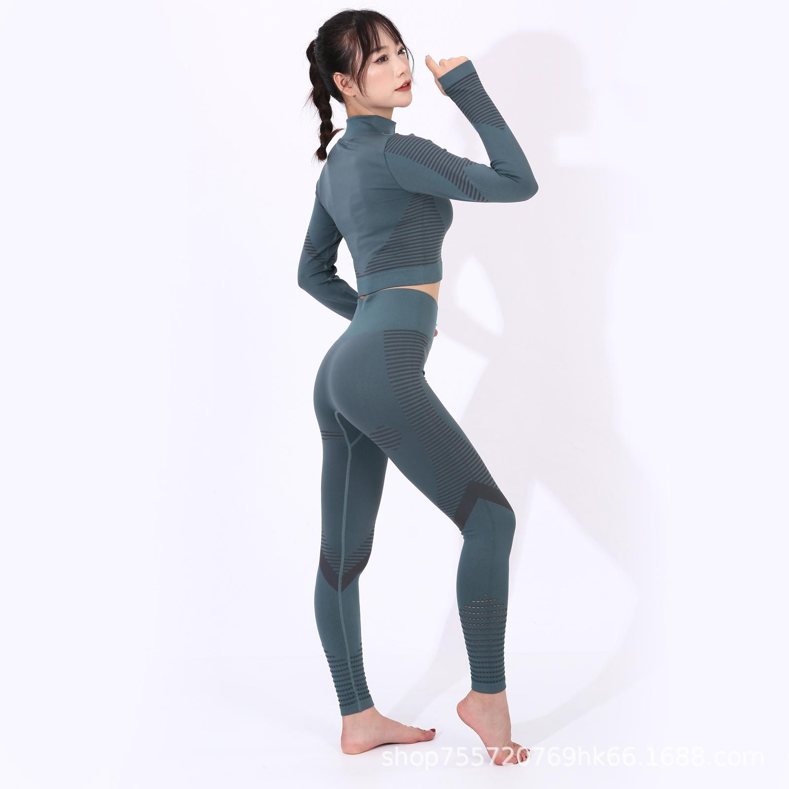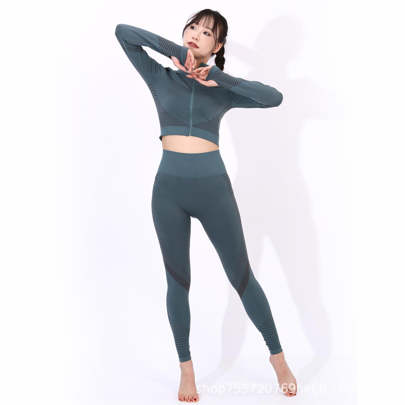 Ropa de yoga para mujer, traje transpirable de alta elasticidad, nuevo traje deportivo de fitness europeo y americano sin costuras para caderas desnudas.