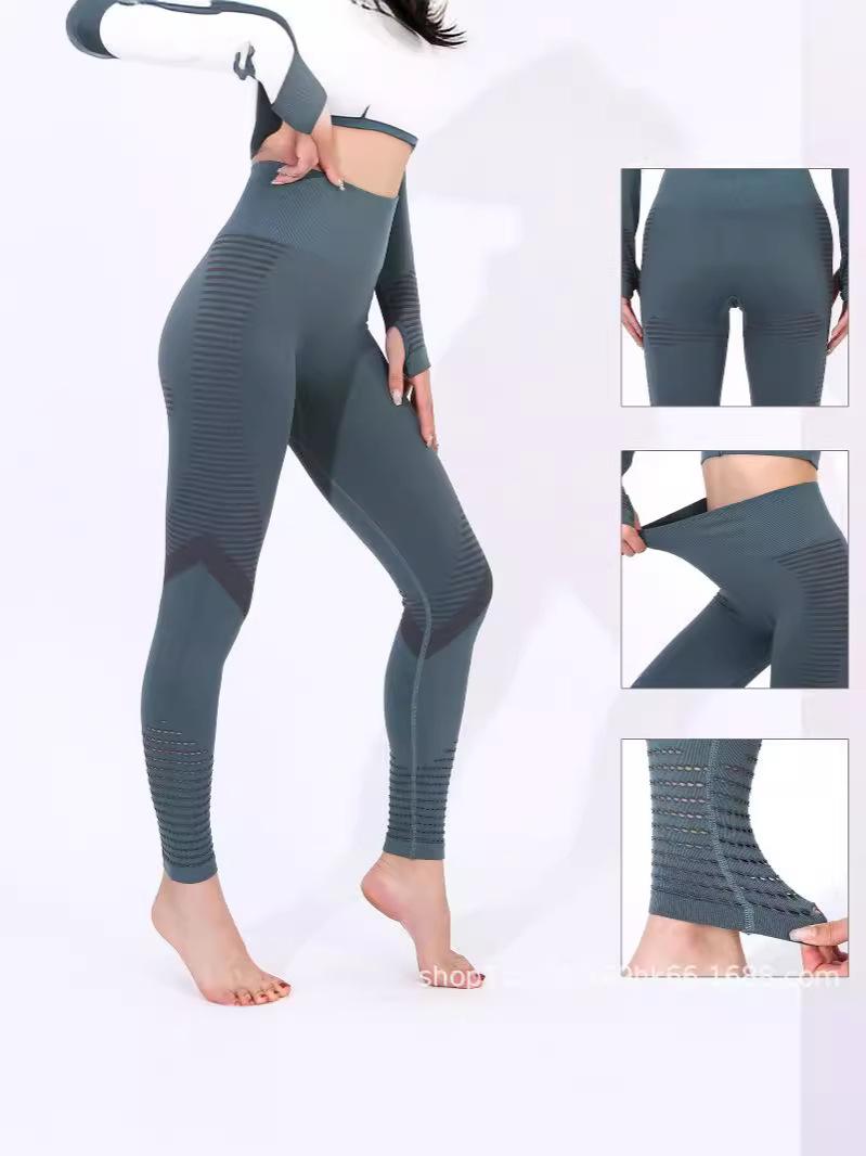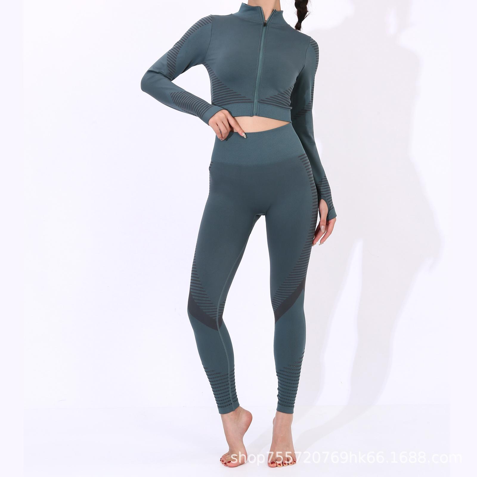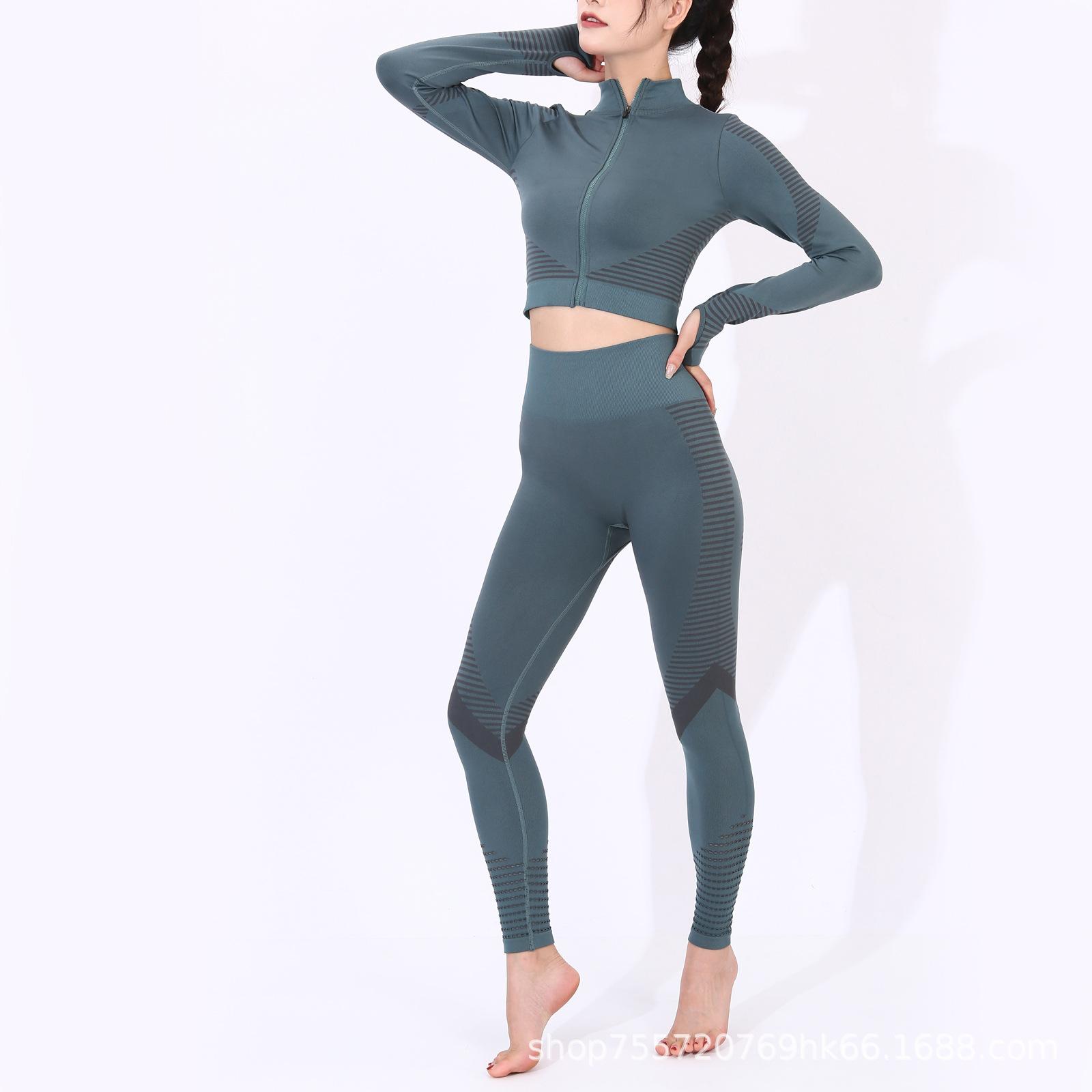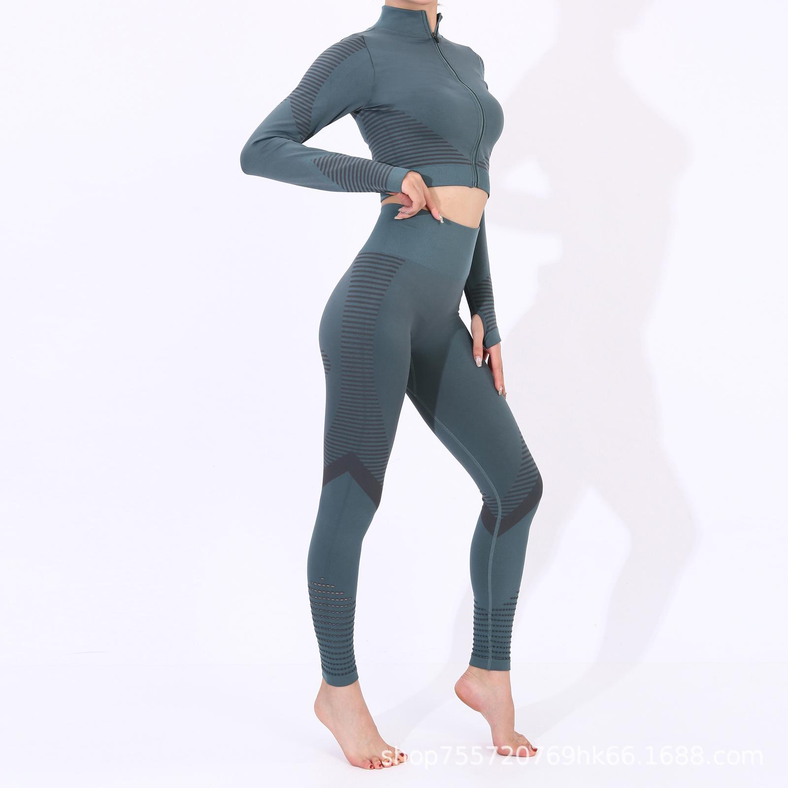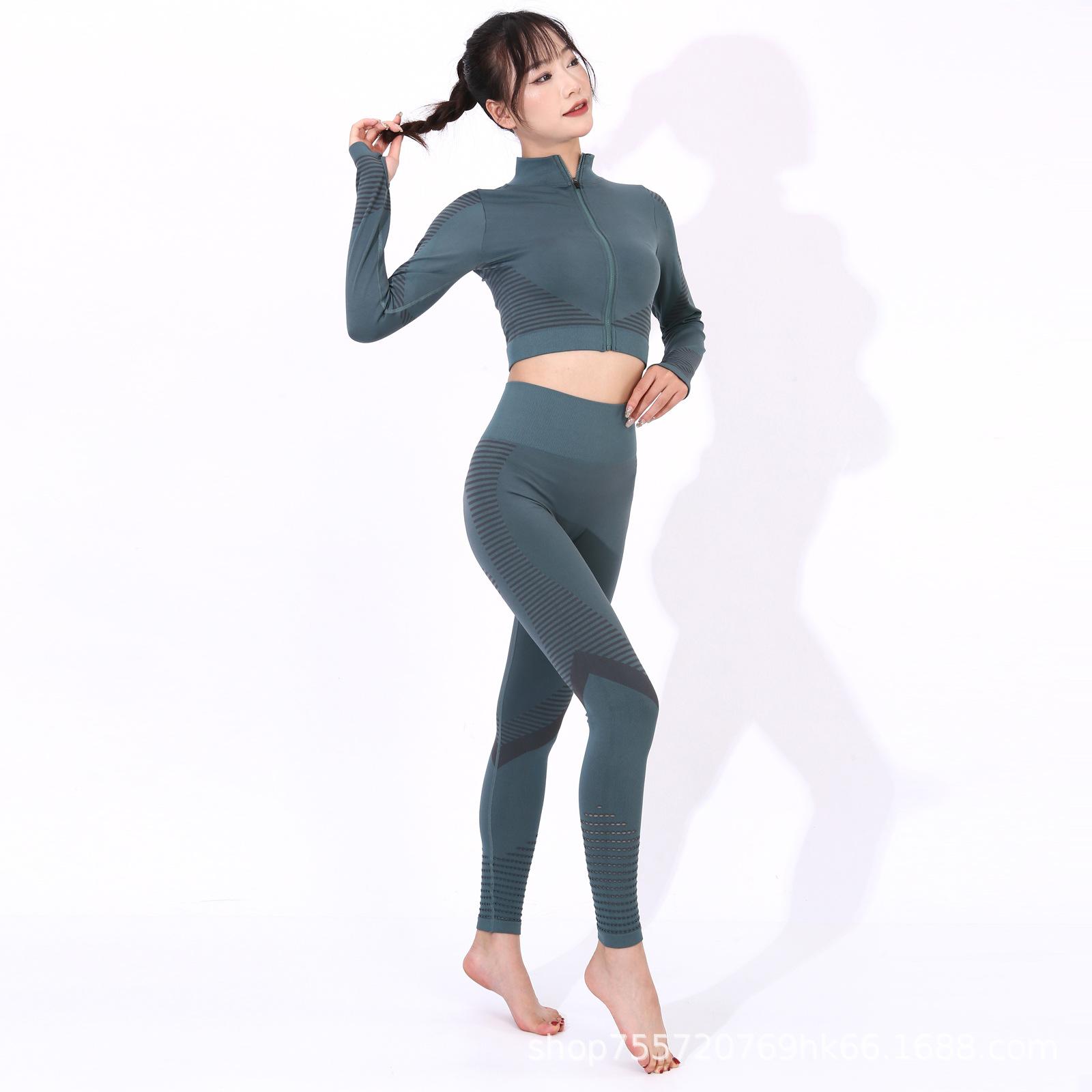 Ropa de yoga para mujer, traje transpirable de alta elasticidad, nuevo traje deportivo de fitness europeo y americano sin costuras para caderas desnudas.