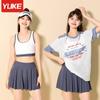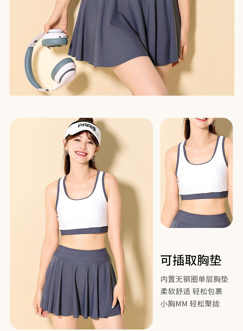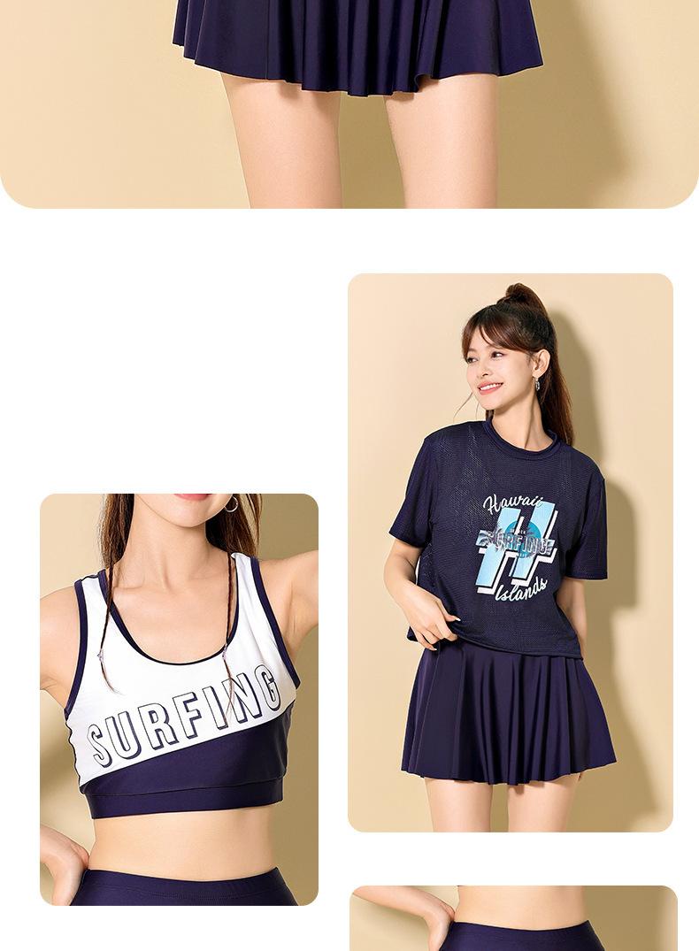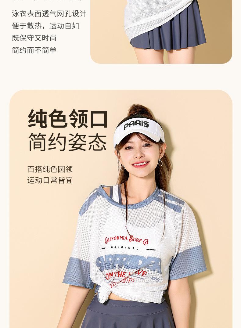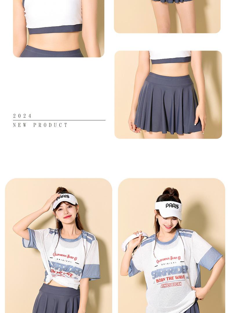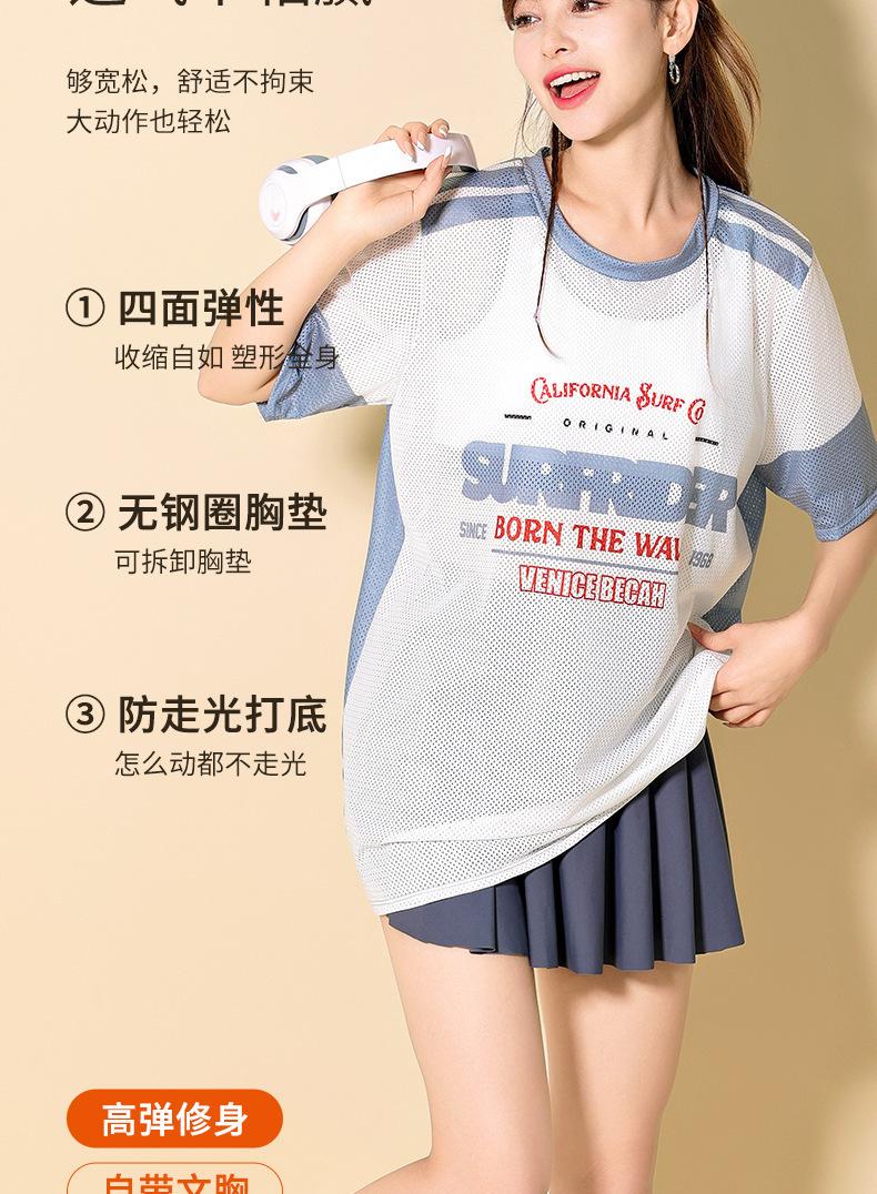 Traje de baño para mujer, estilo conservador, 2024, nuevo, para vacaciones en la playa, de tres piezas, protector solar, blusa de alta calidad que cubre la piel.
