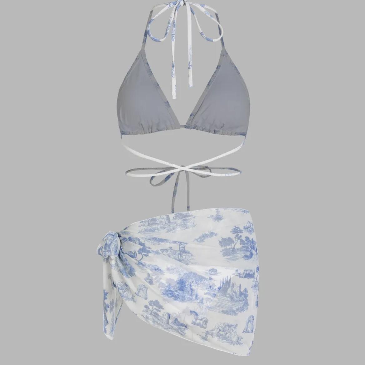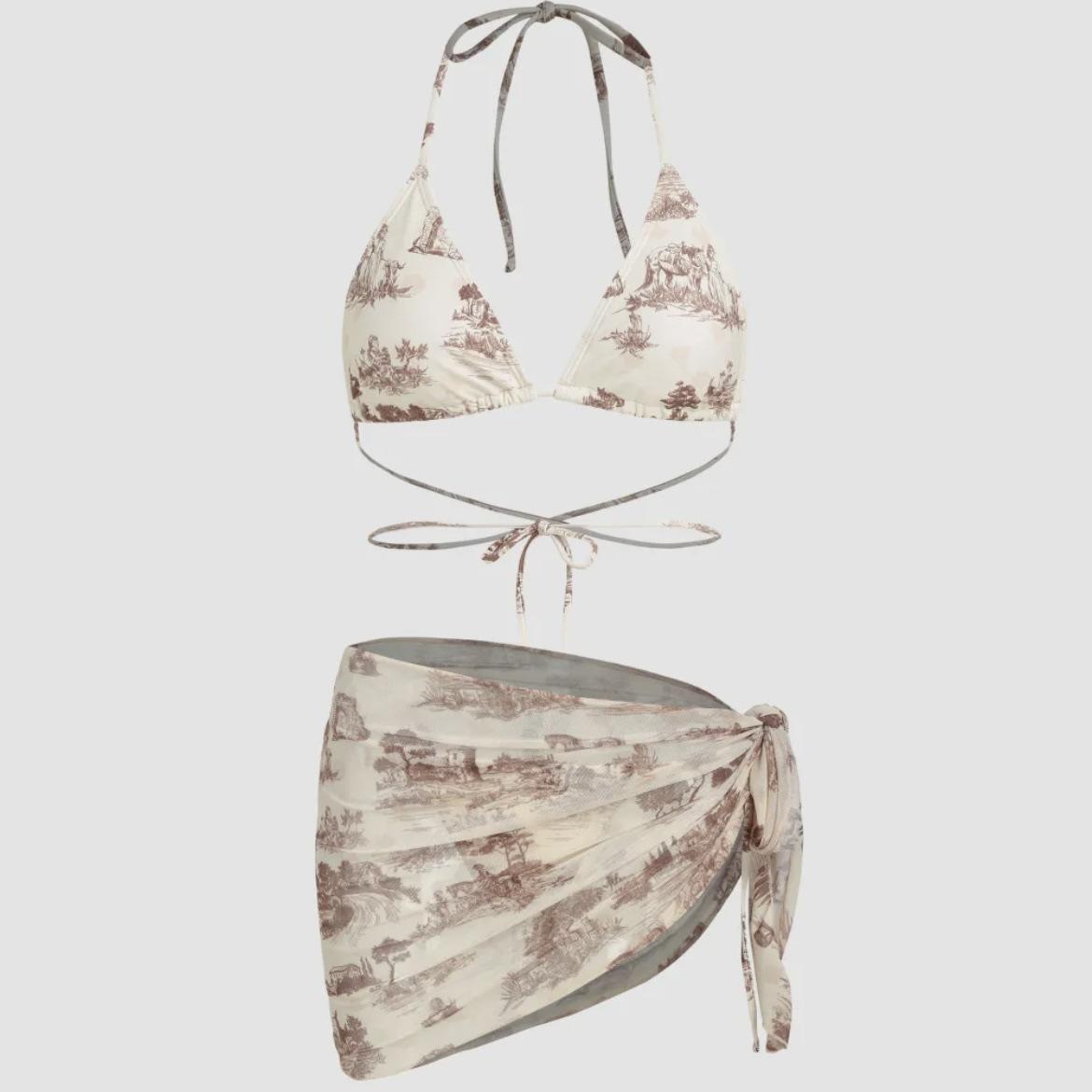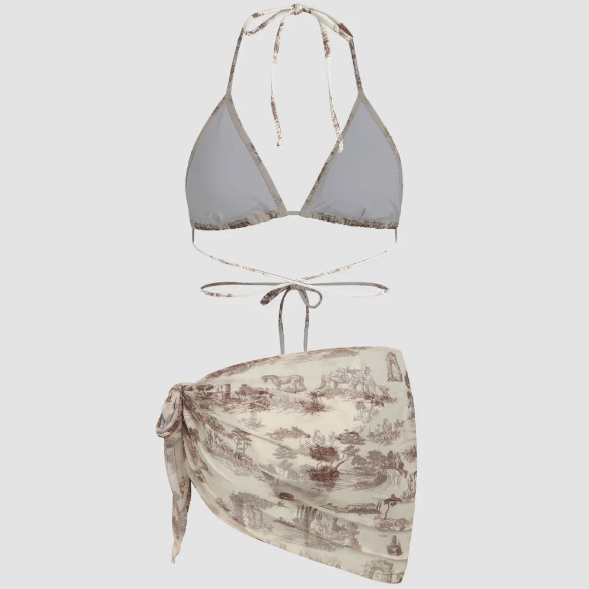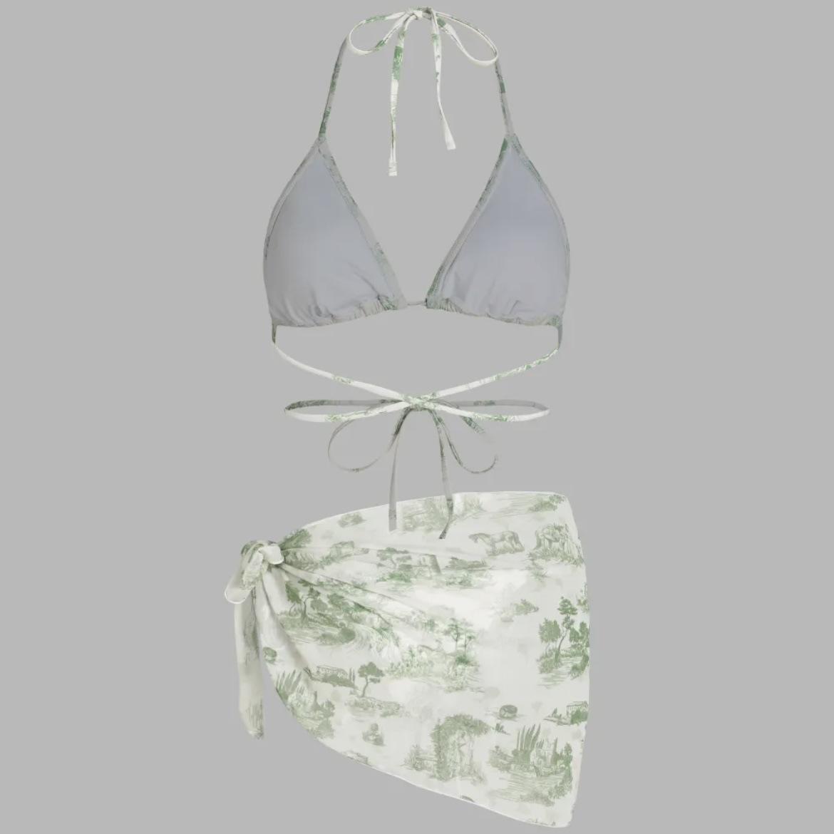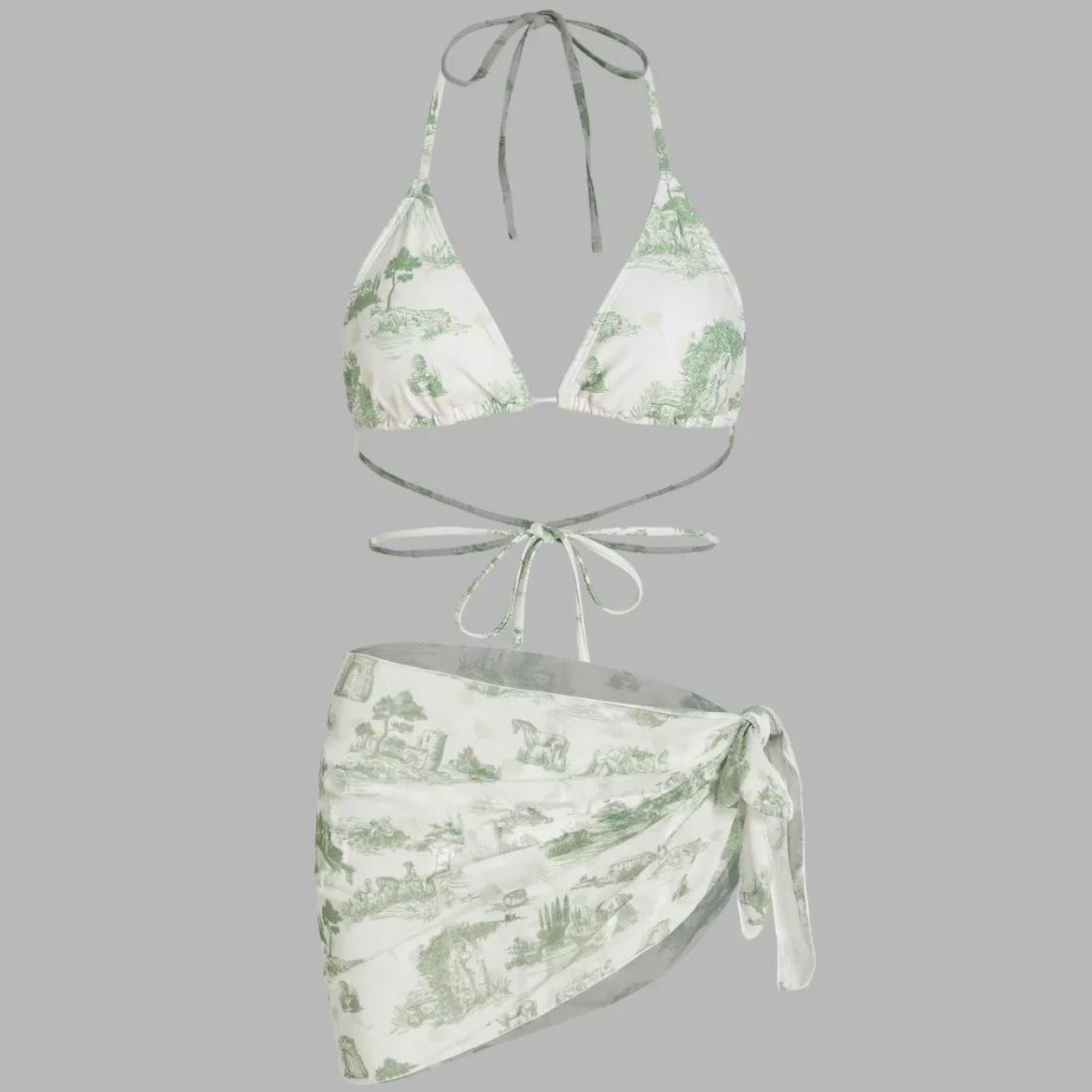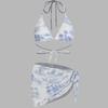 Traje de baño de tres piezas con estampado floral sencillo y estilo vintage de Ins Style para mujer, con falda y tirantes finos.