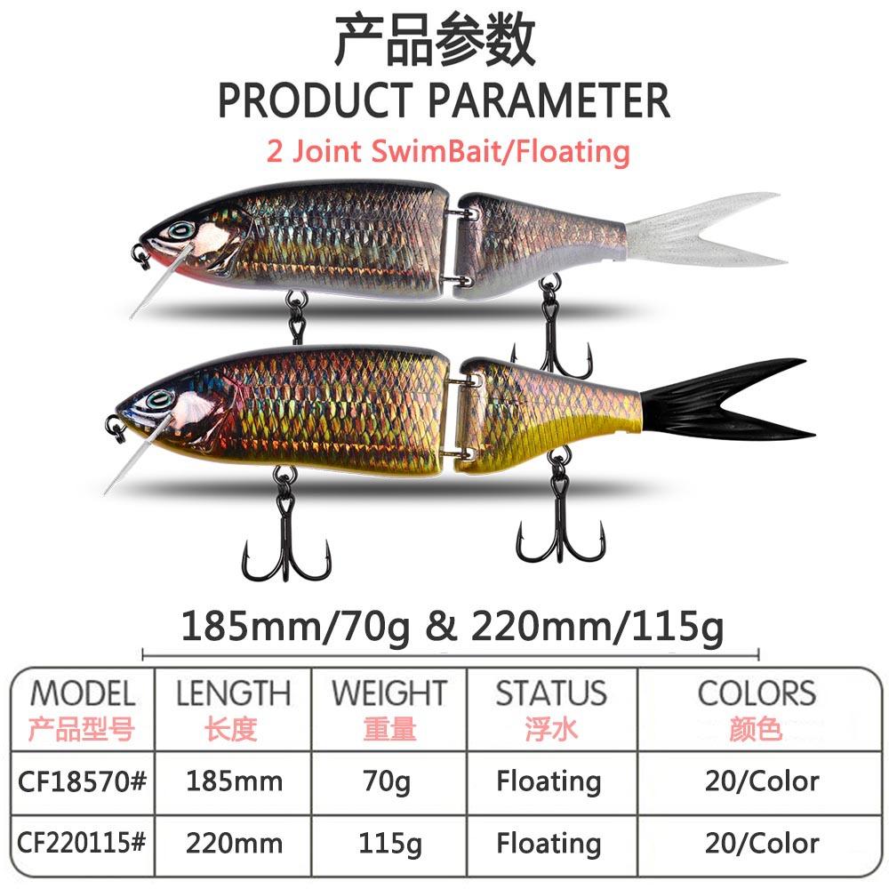 Cebo flotante Chuangfeng Luya, multisección, 185 mm, 70 g/220 mm, 115 g, para percas y perros.
