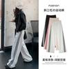 Pantalón de Chándal Gris para Mujer Pantalón de Chándal de Cintura Alta 2025 Primavera y Verano Nuevo Pantalón Casual con Rayas Laterales Versátil Pantalón Recto de Pierna Ancha