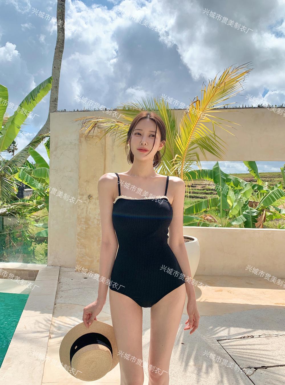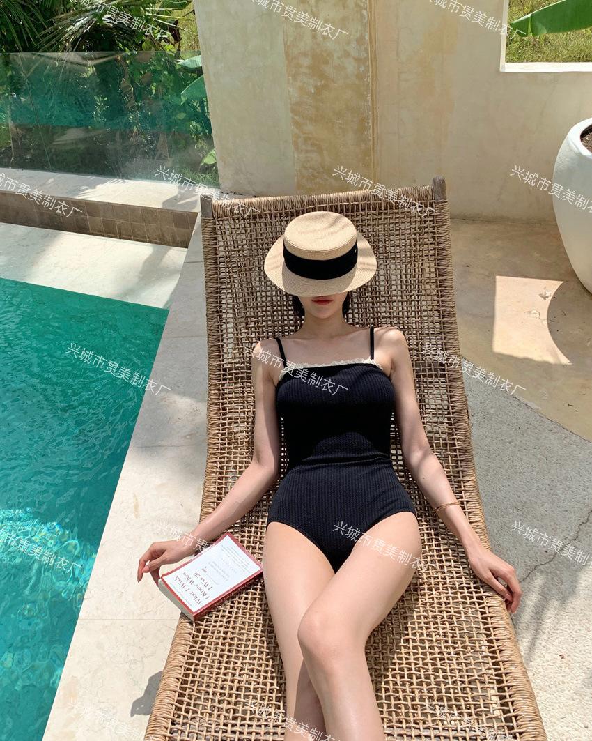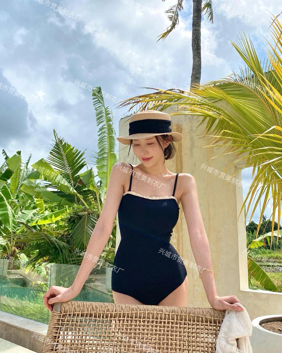 Traje de baño de primavera termal conservador, estilo retro francés, en blanco y negro, triangular, sexy, ajustado, que cubre el vientre, novedad de 2023.