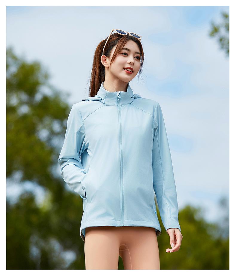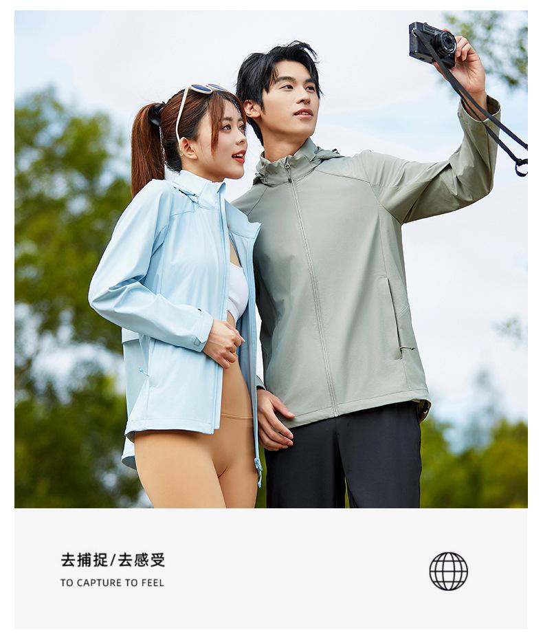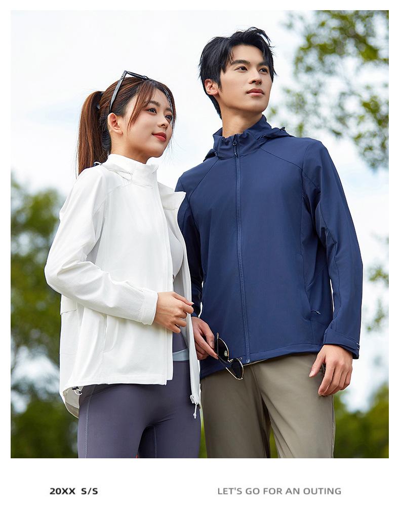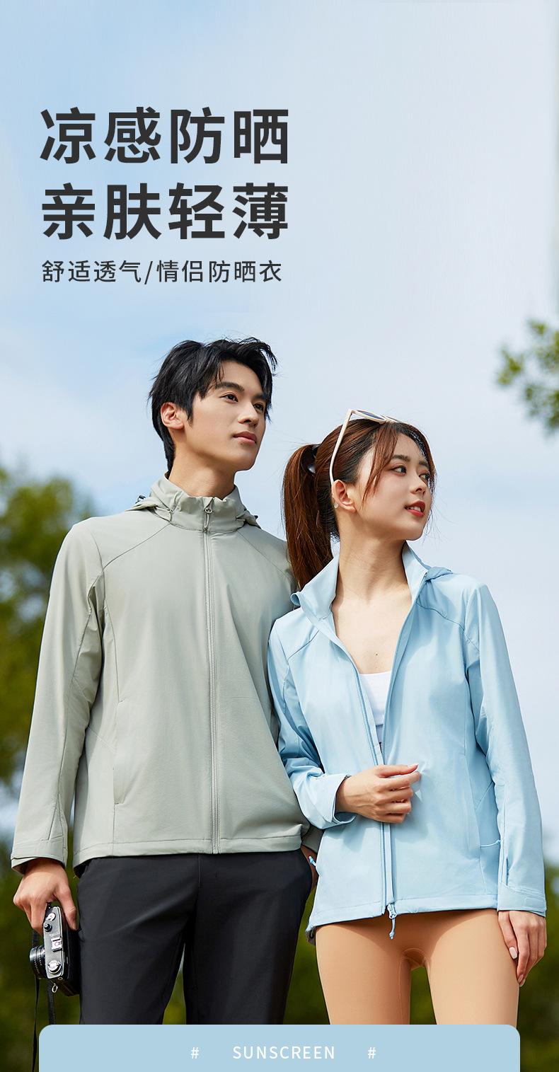 Ropa de verano con protección solar de hilo crudo para mujer y hombre, ropa de protección solar con capucha, protección UV UPF50 +, gabardina deportiva elástica
