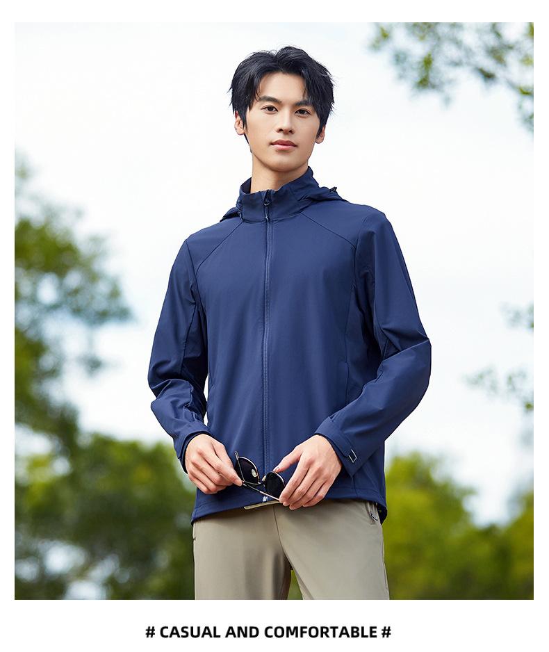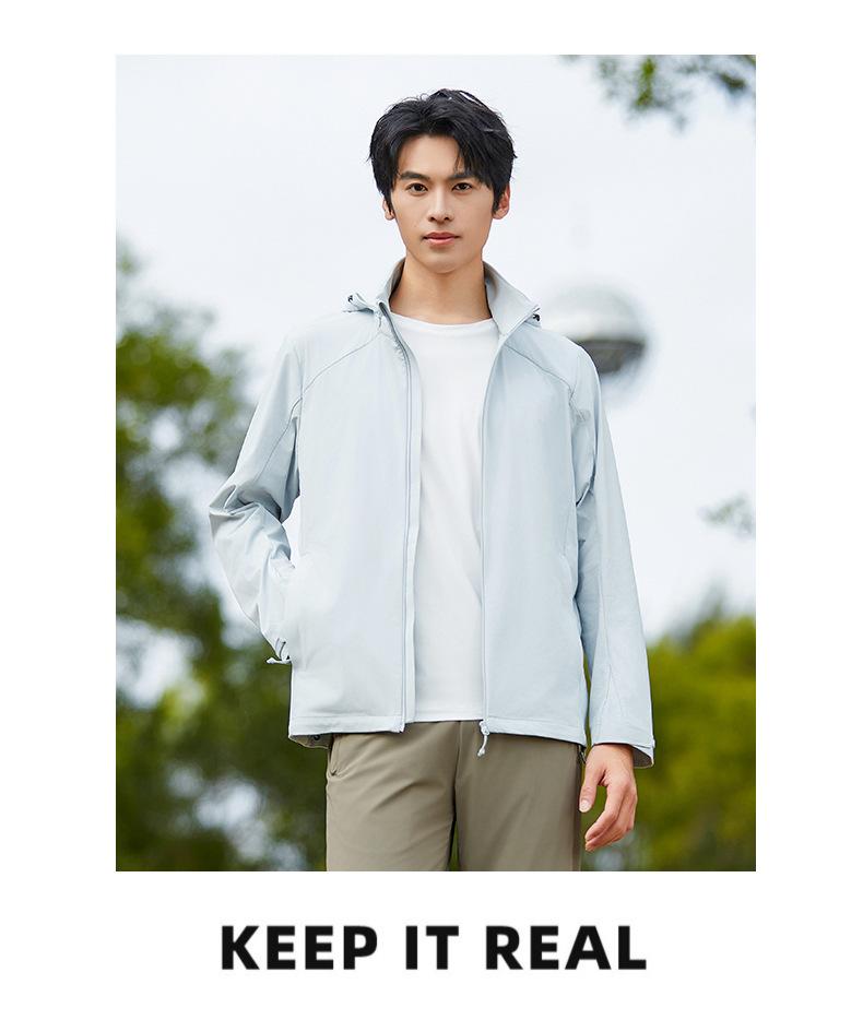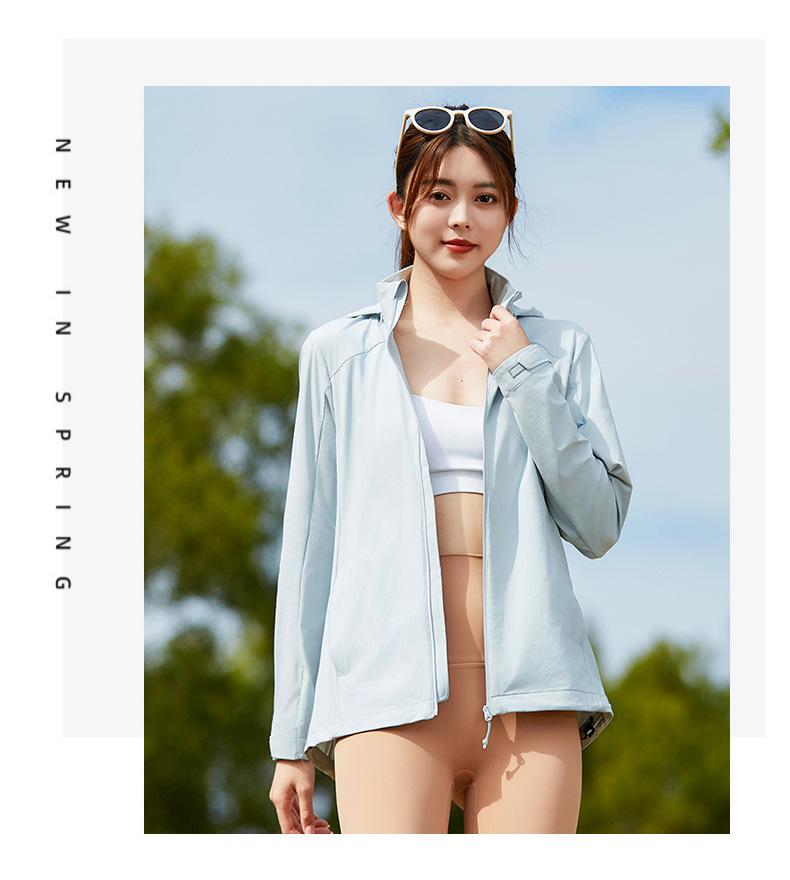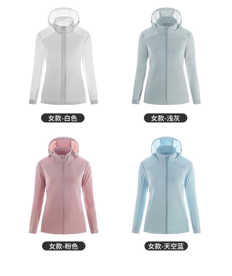 Ropa de verano con protección solar de hilo crudo para mujer y hombre, ropa de protección solar con capucha, protección UV UPF50 +, gabardina deportiva elástica