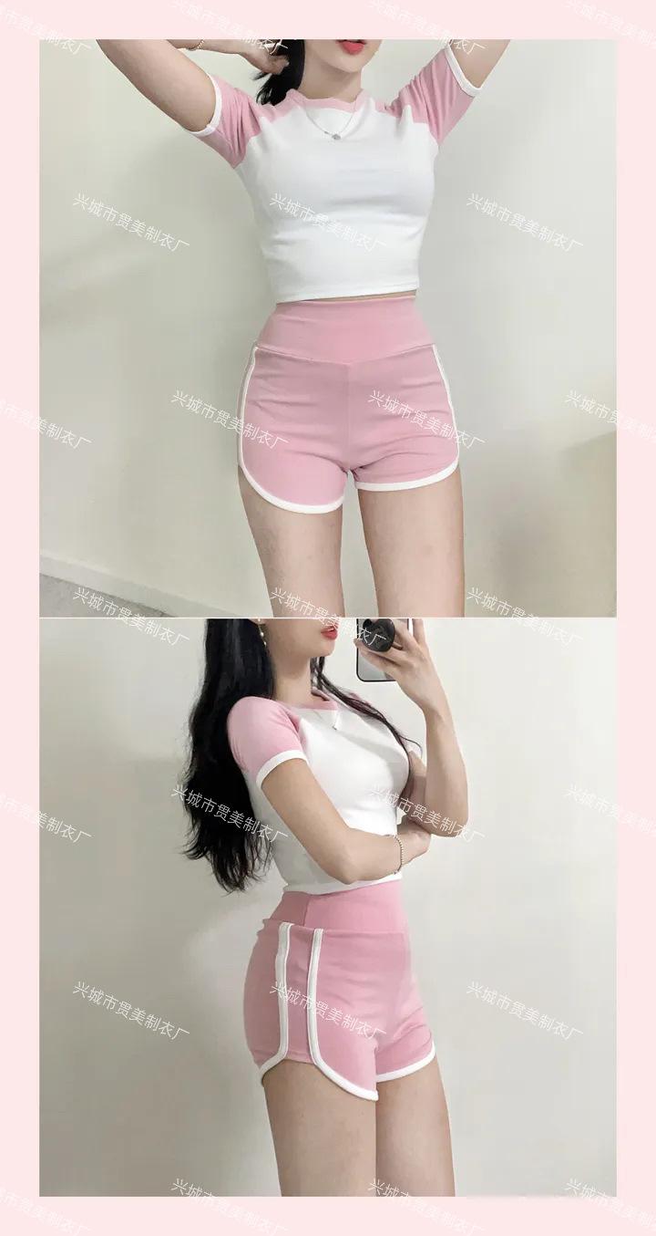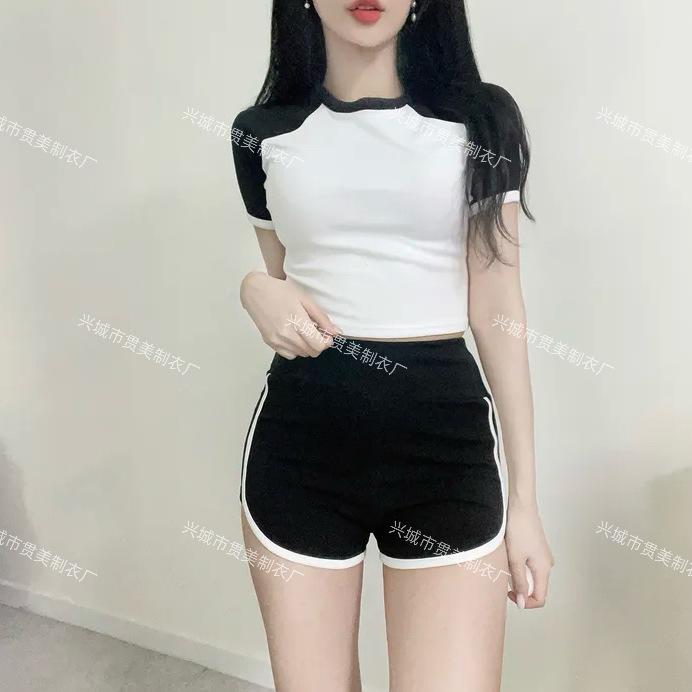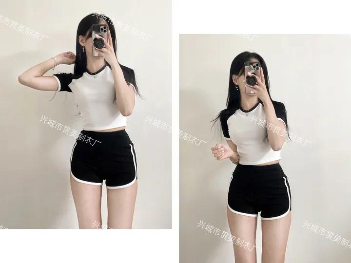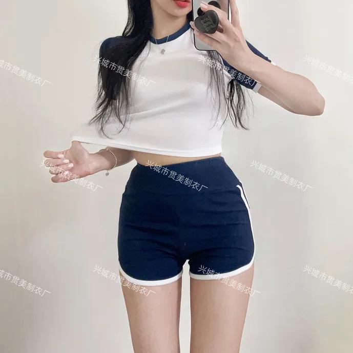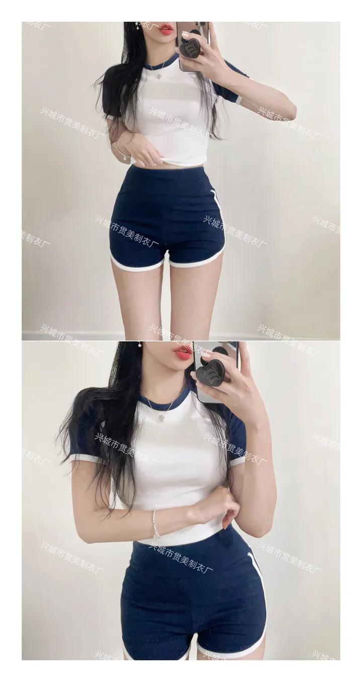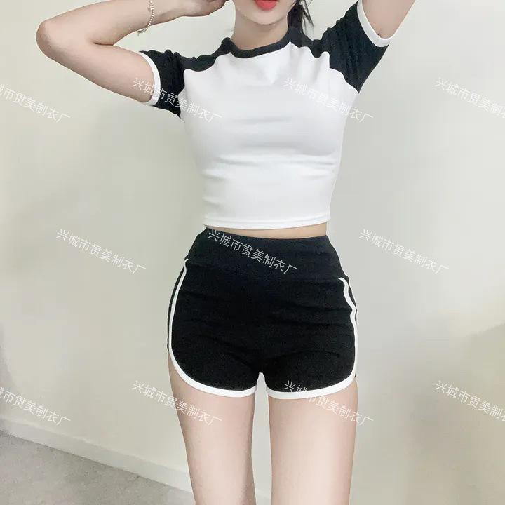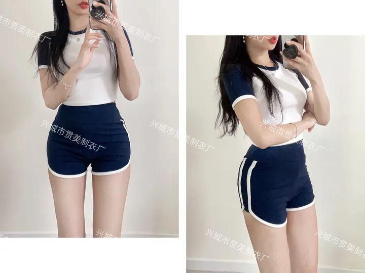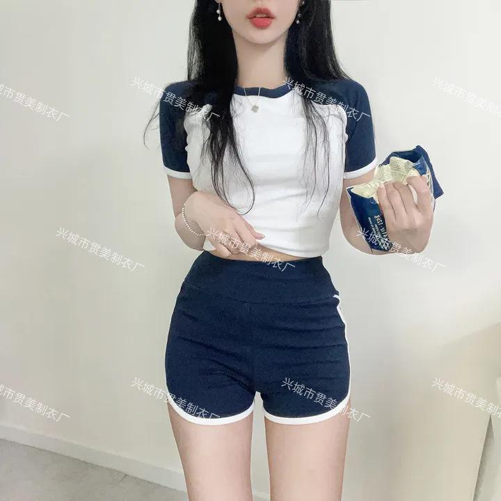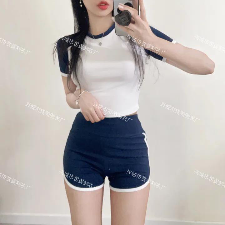 Nueva camiseta de manga corta a juego de colores, estilo coreano, estilo Pure Desire, para mujer, bóxer deportivo ajustado a la cadera, traje de baño para mujer