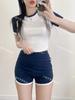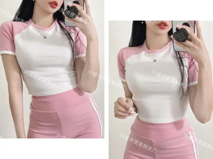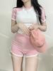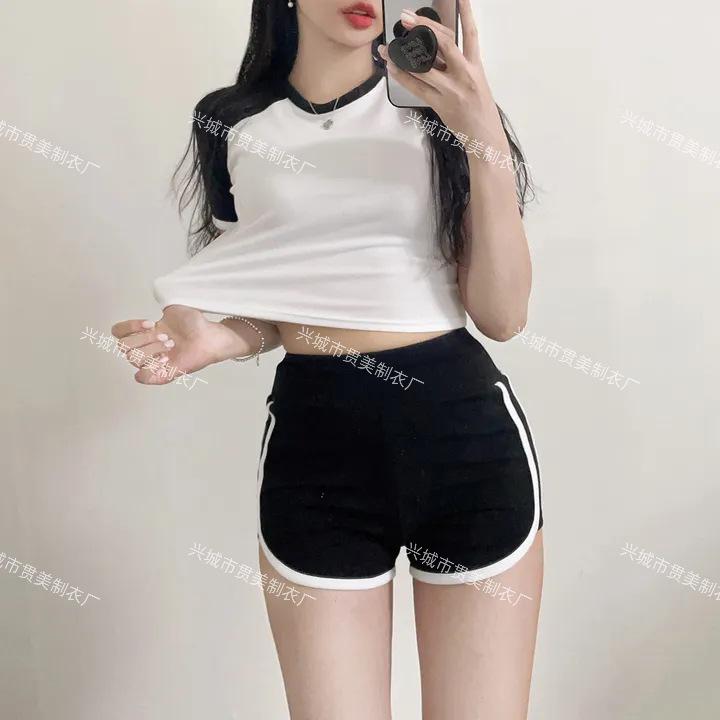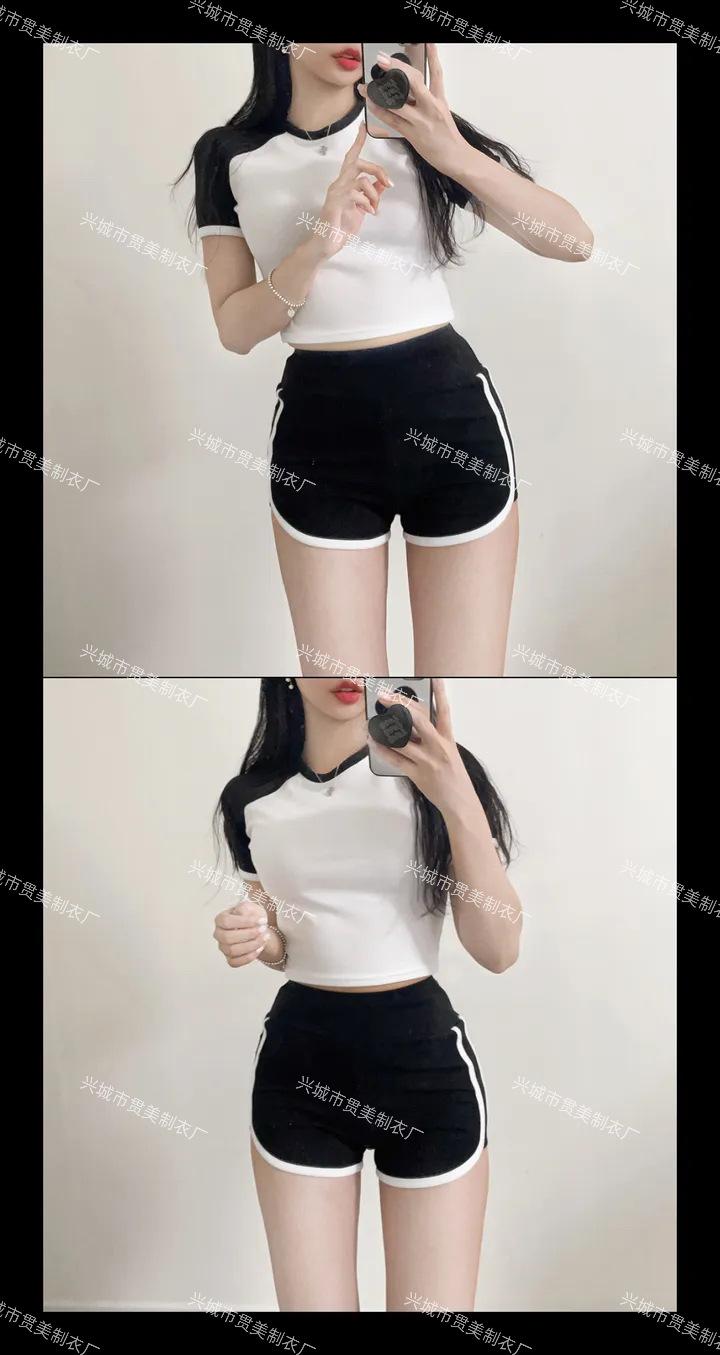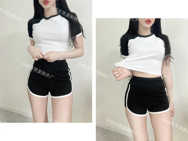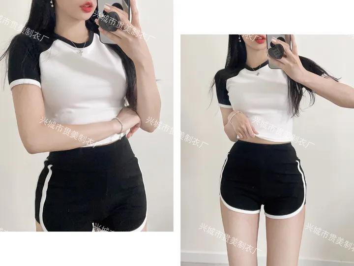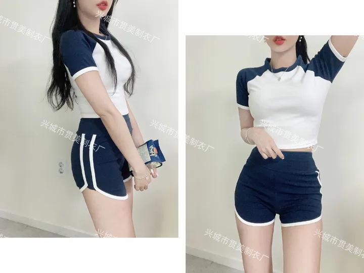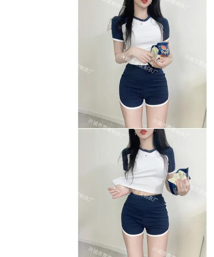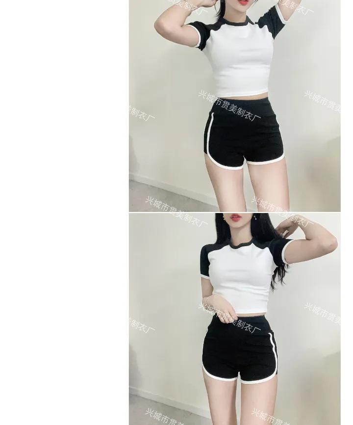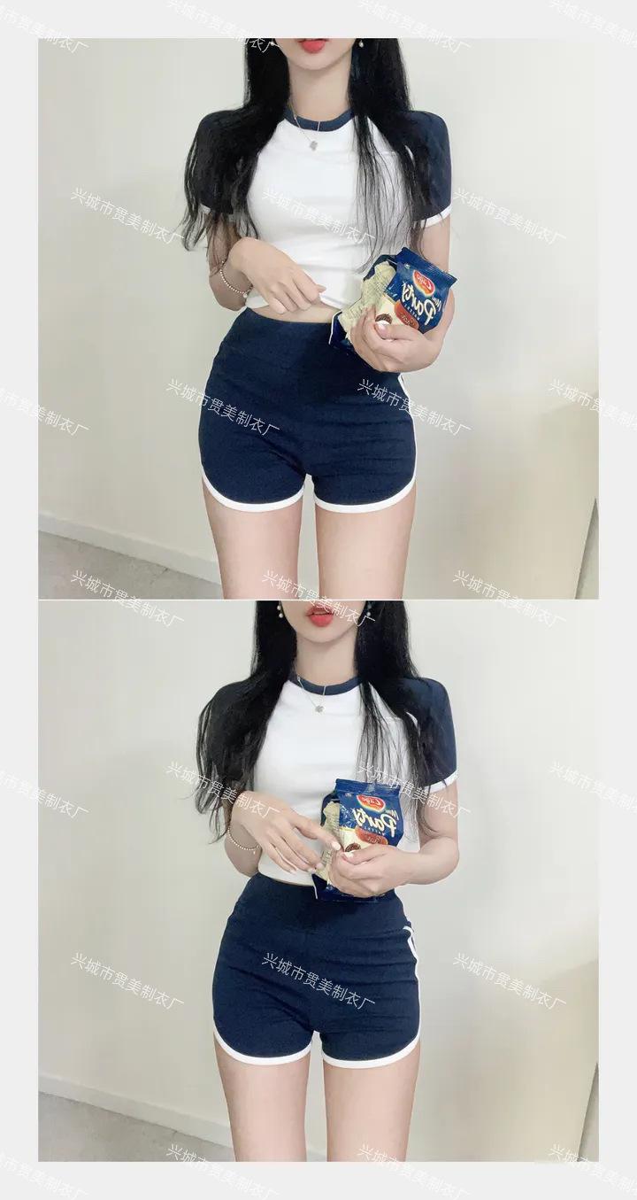 Nueva camiseta de manga corta a juego de colores, estilo coreano, estilo Pure Desire, para mujer, bóxer deportivo ajustado a la cadera, traje de baño para mujer