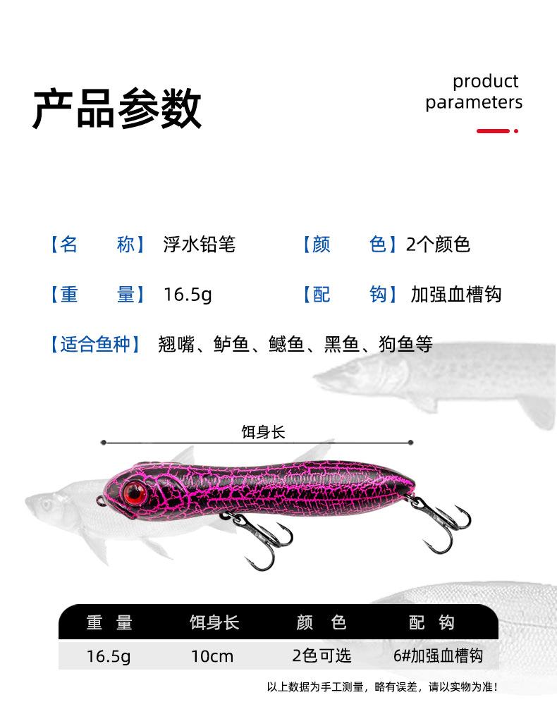 Sistema de superficie de cebo Luya, cabeza de serpiente, lápiz, 16,5 g, 10 cm, cebo flotante falso para pesca en agua dulce y marina, cebo para pez mandarín.
