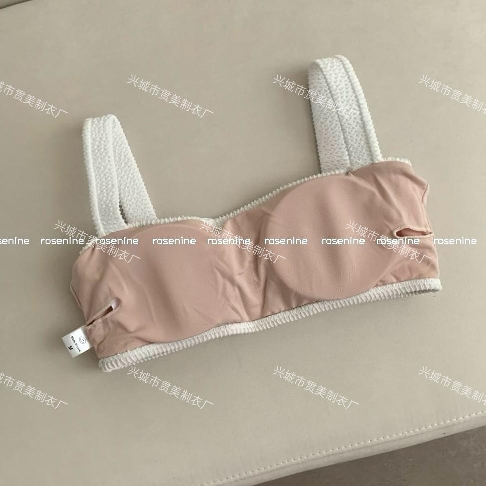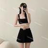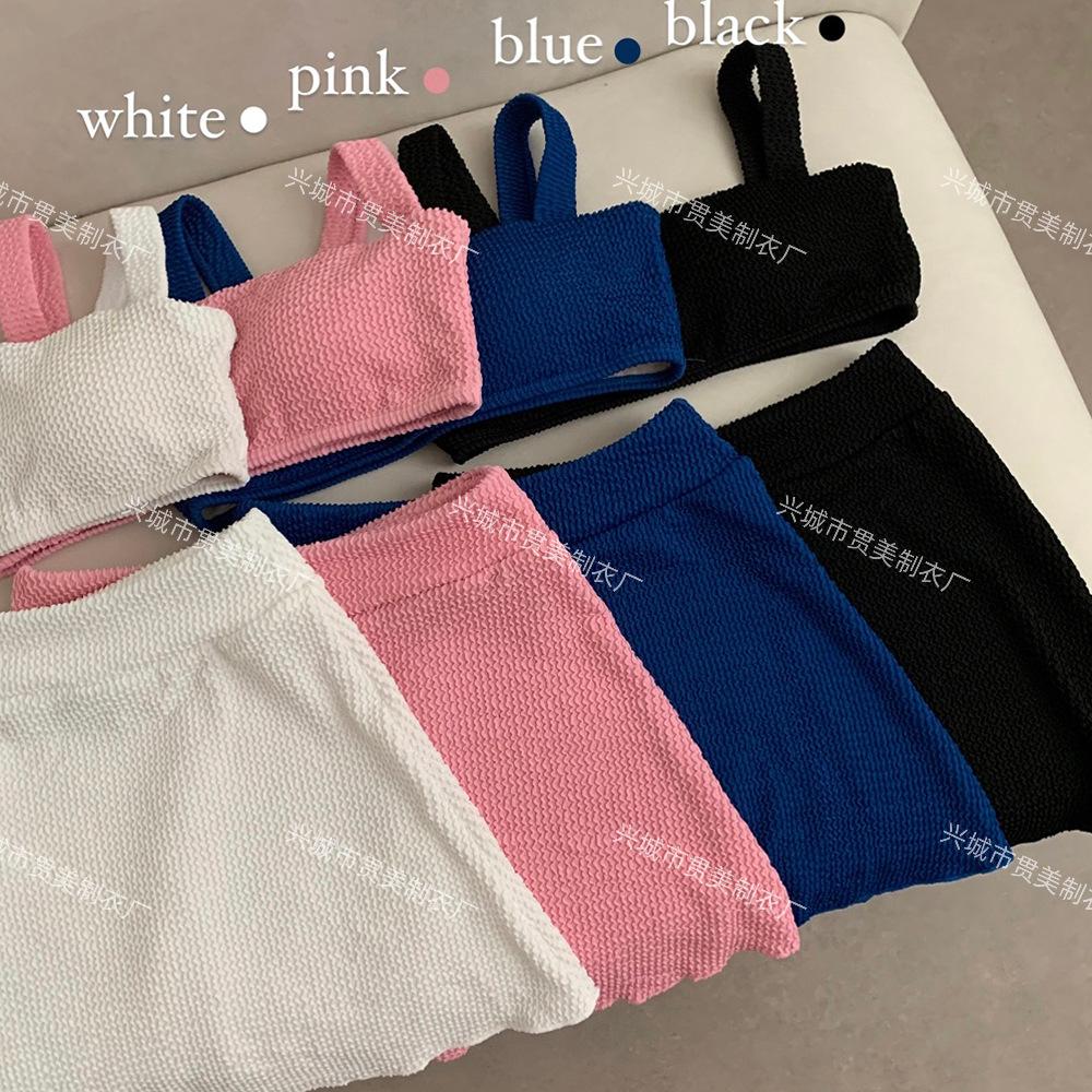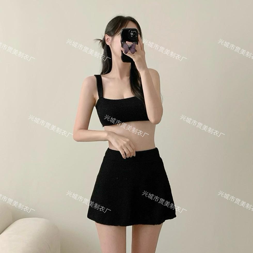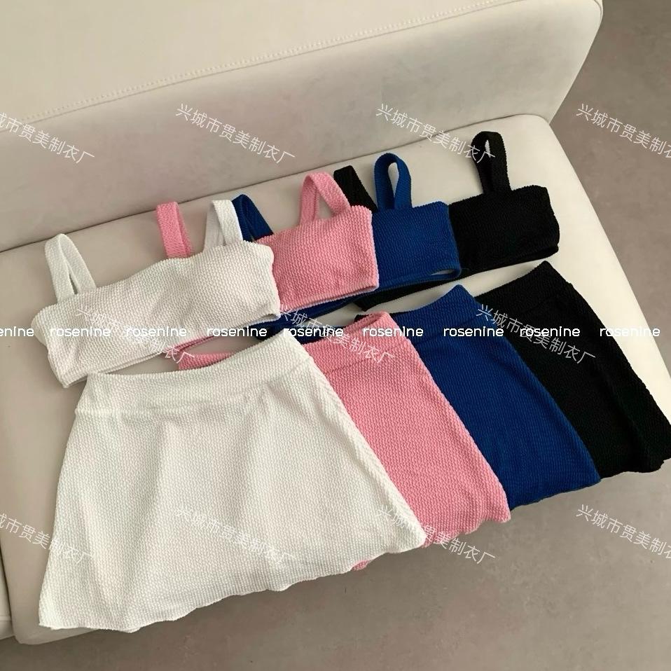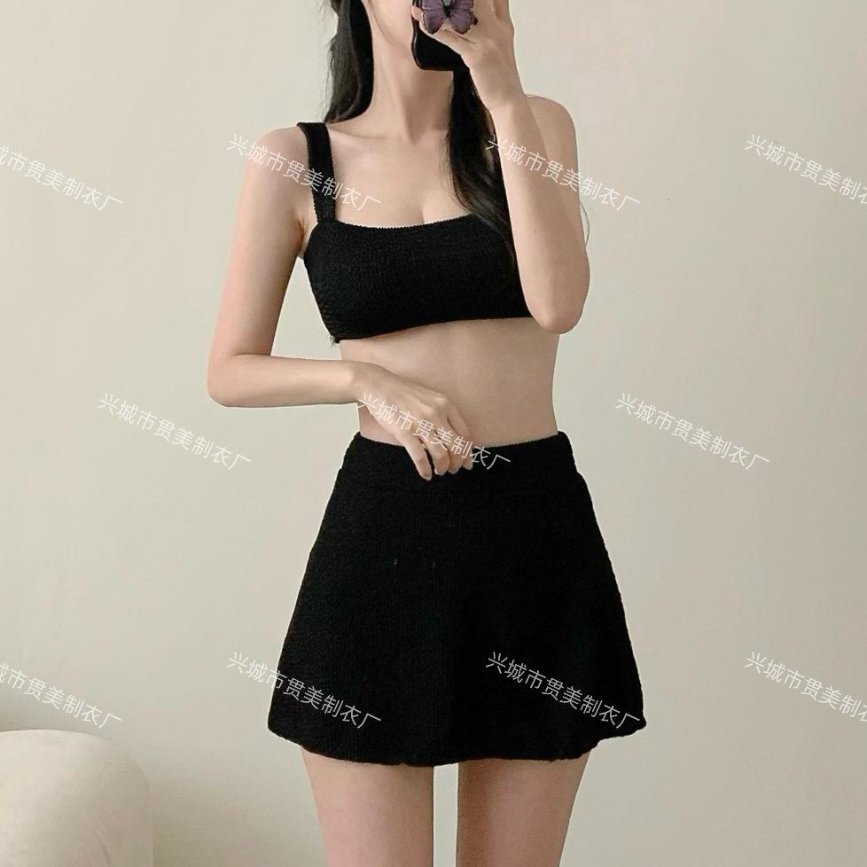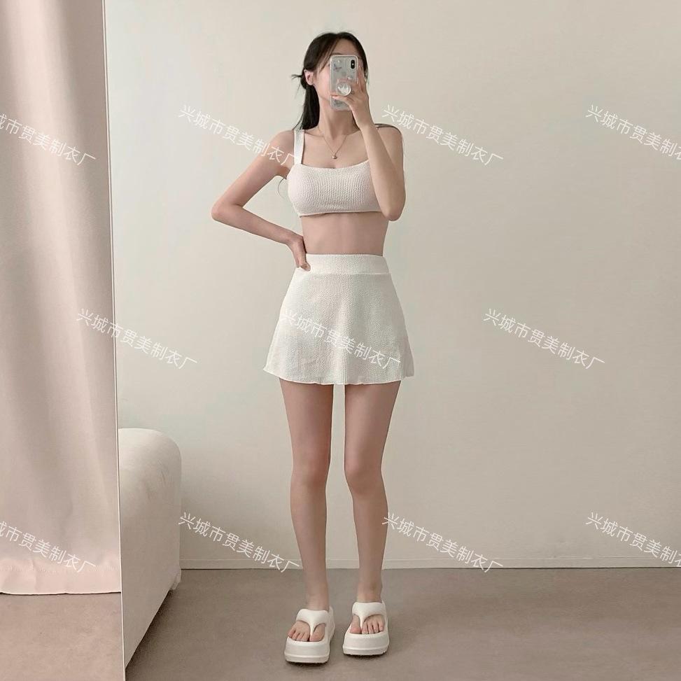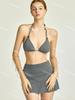 [4 colores] Traje de baño de tres piezas estilo retro sencillo de color caramelo para niña, bikini para playa