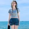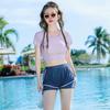 Traje de baño deportivo de dos piezas para mujer, de poliéster dividido, ajustado y conservador, para estudiantes, 2024