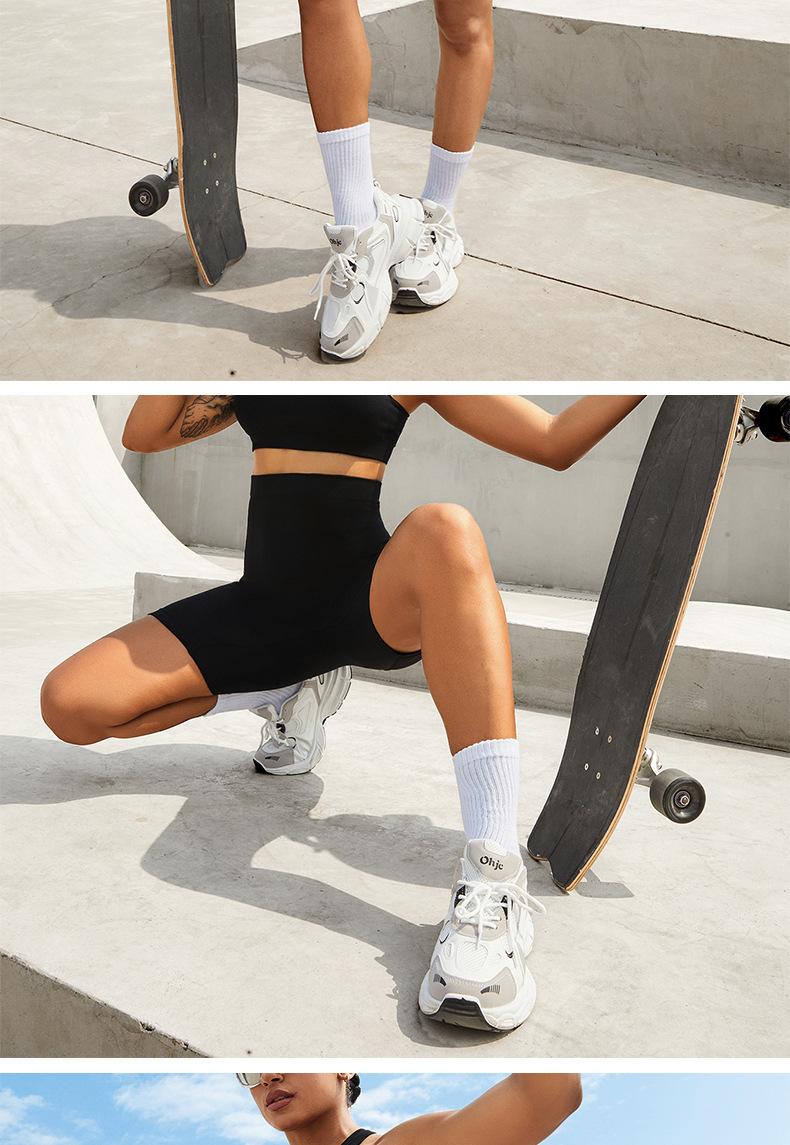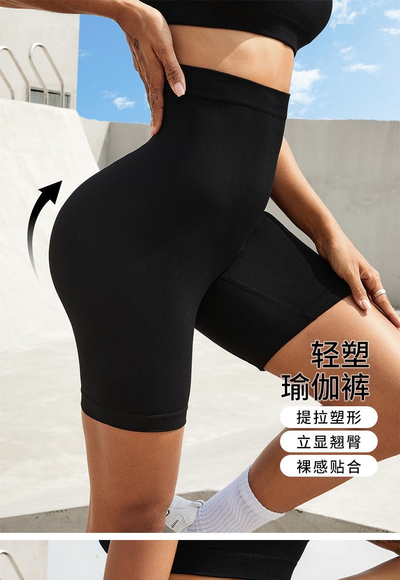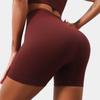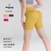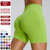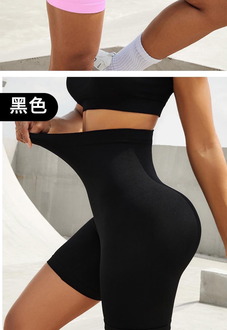 Pantalones cortos deportivos de cintura alta sin costuras para mujer, de estilo europeo y americano, con cadera color melocotón, de tres puntos, ajustados, para yoga.