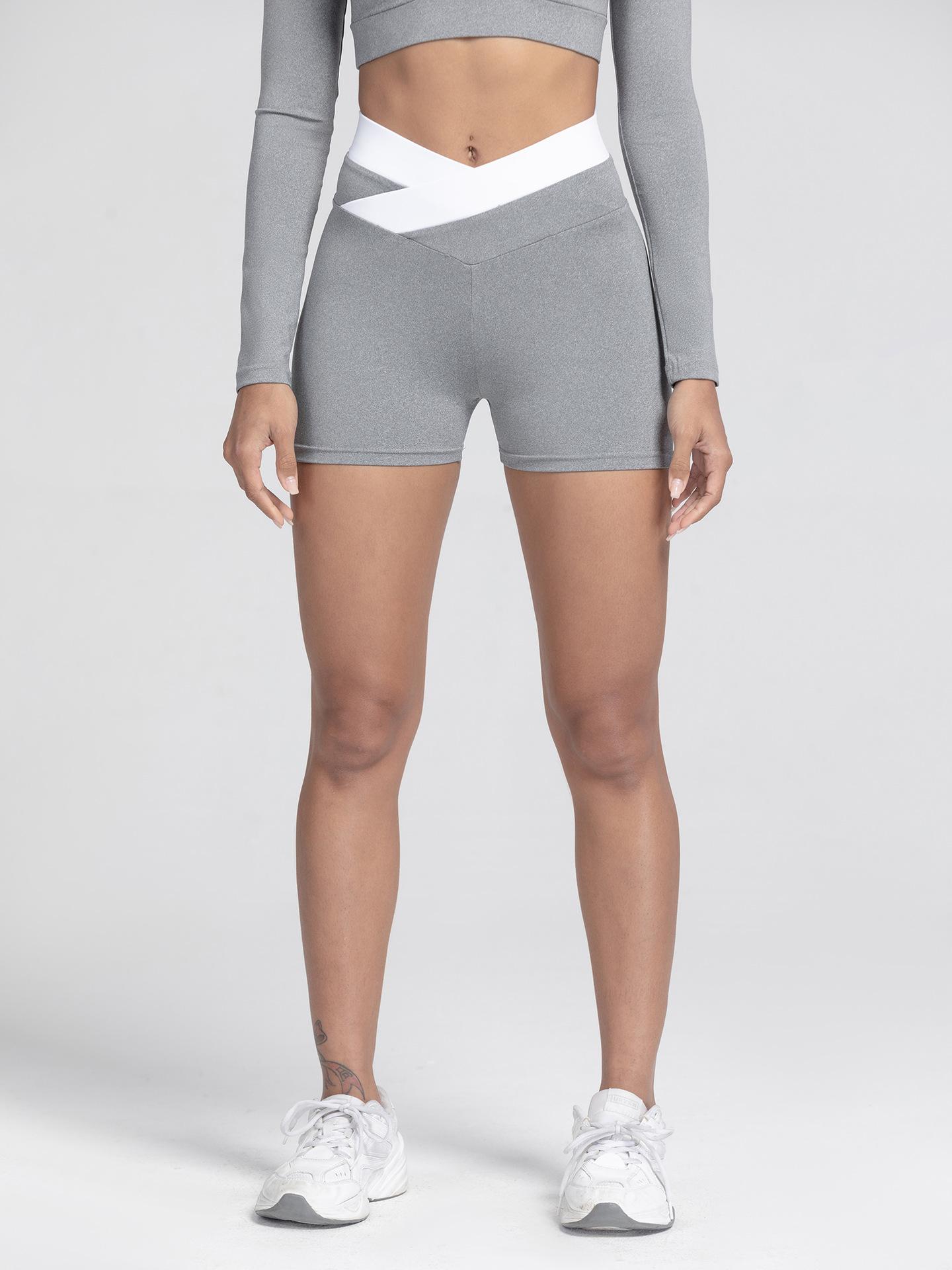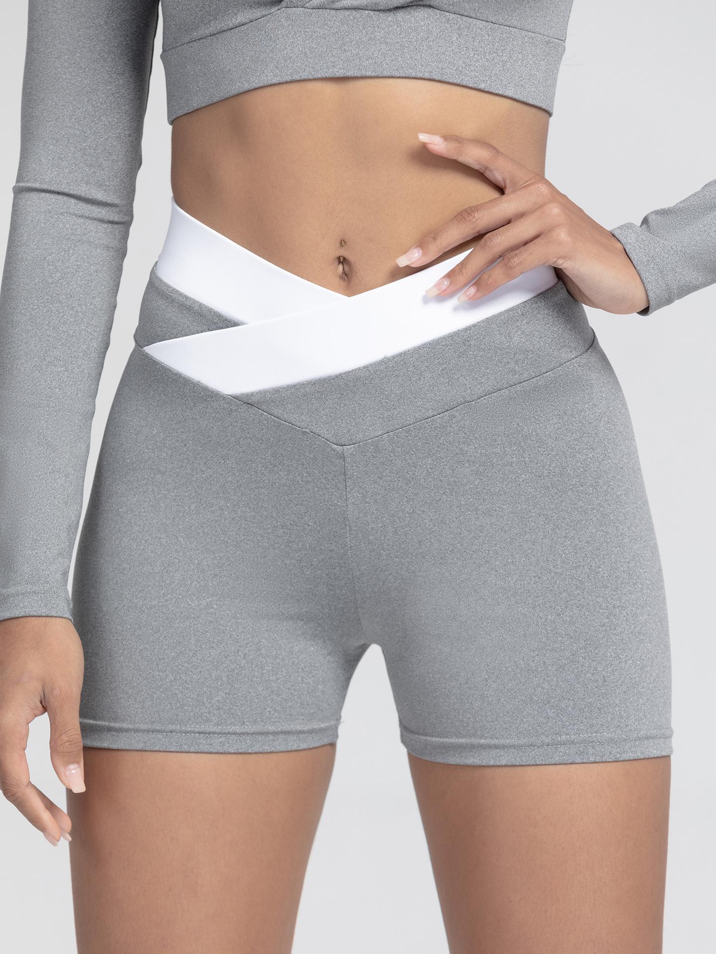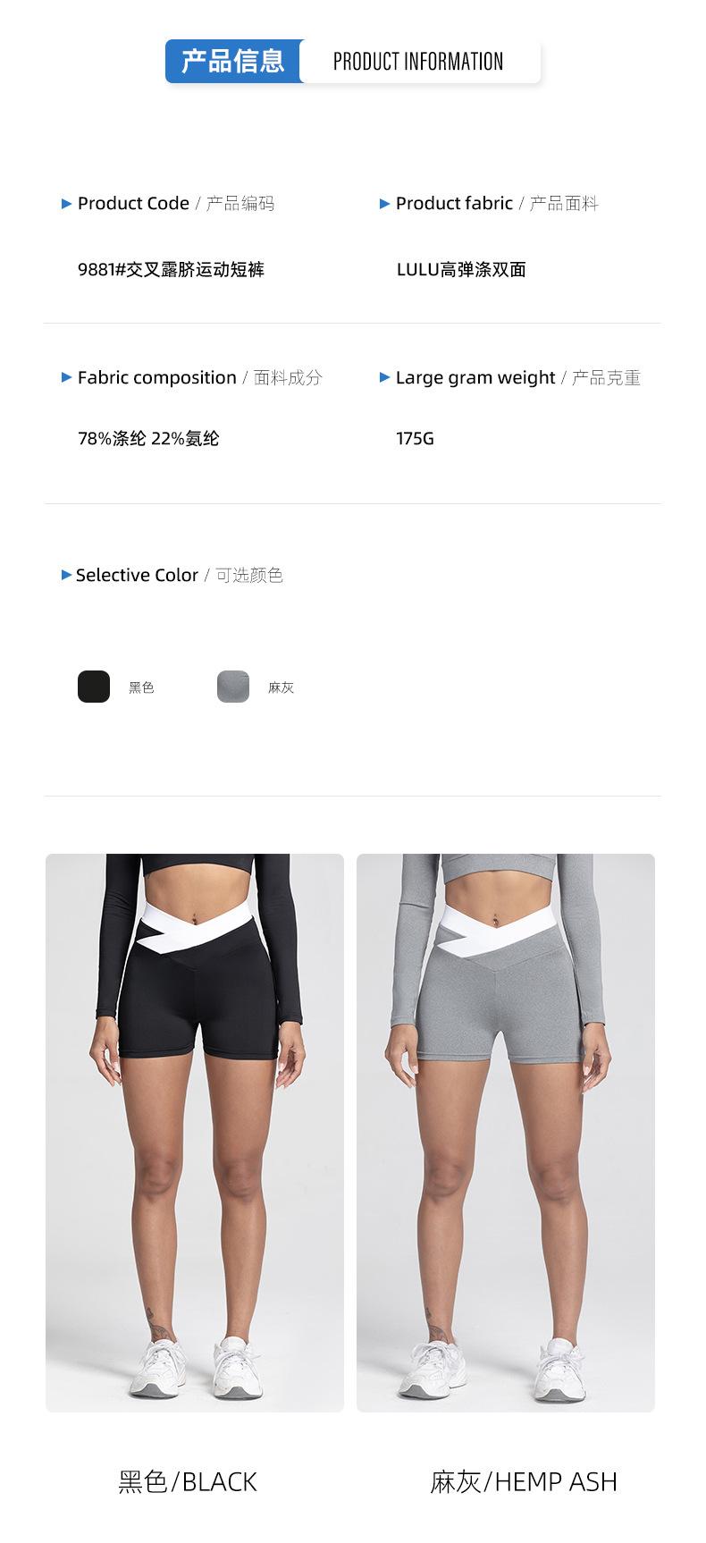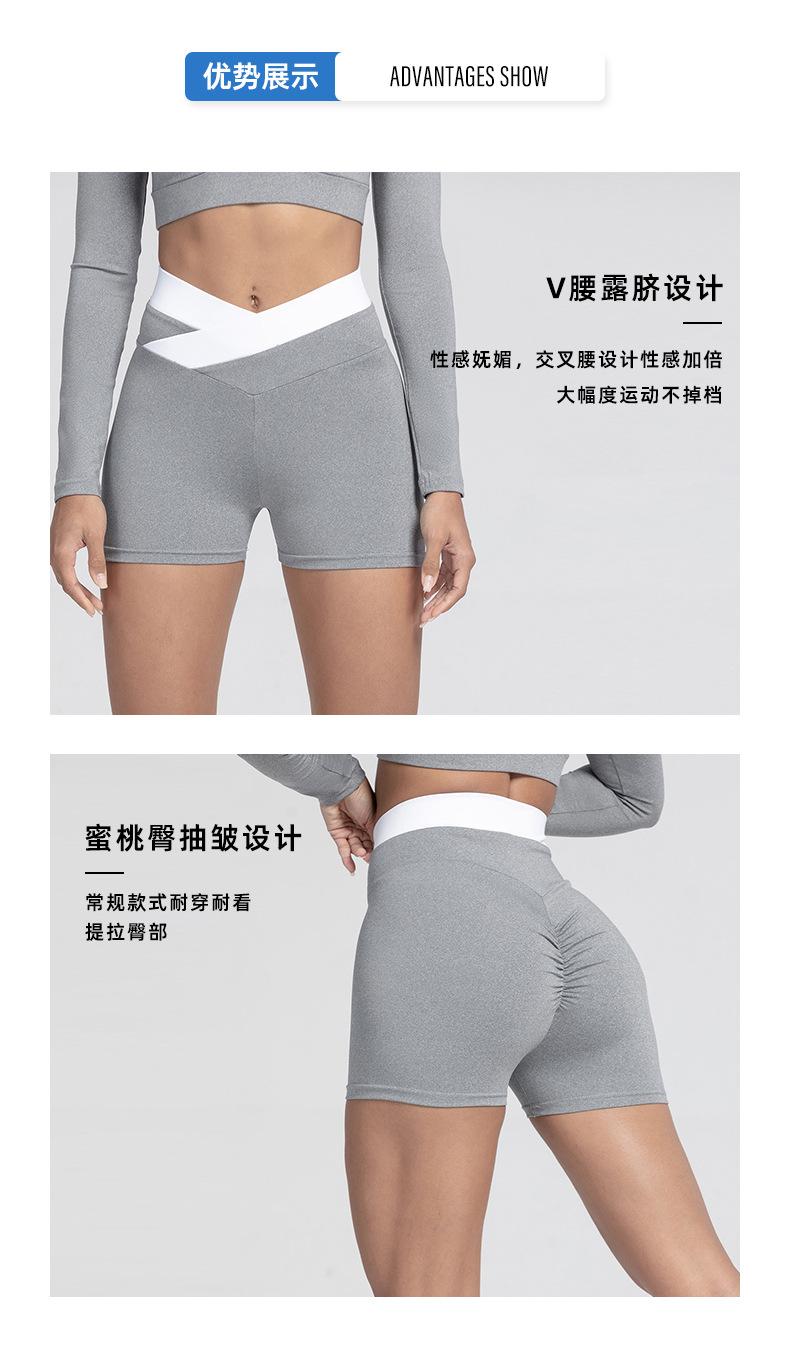 Pantalones cortos deportivos de cintura cruzada europeos y americanos para mujer, de cintura alta, que levantan la cadera, ajustados, para yoga, para correr, fitness, de verano.