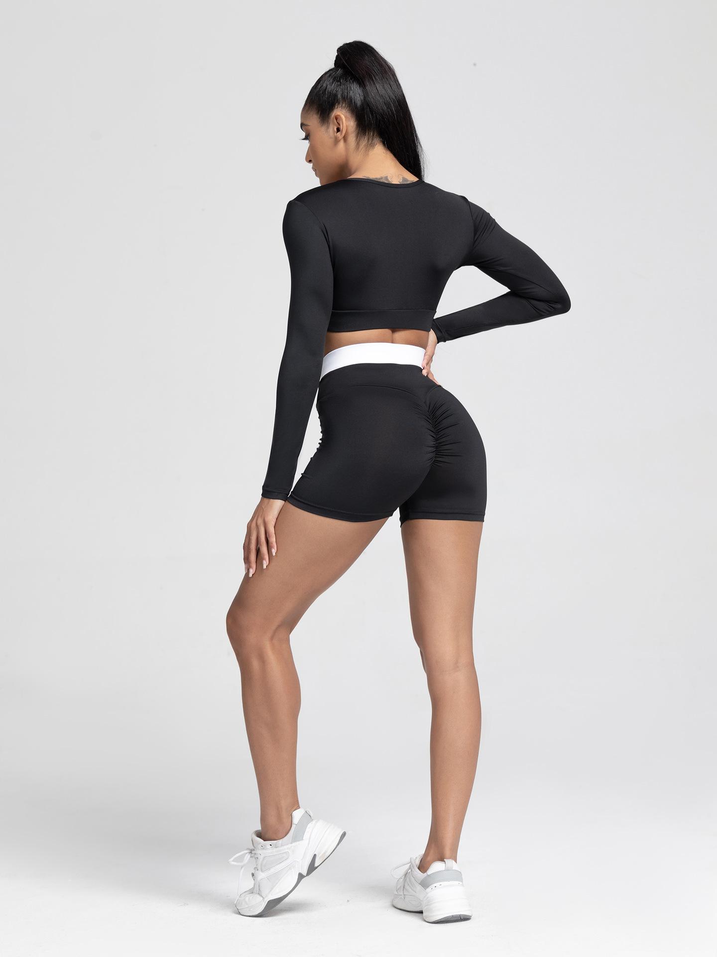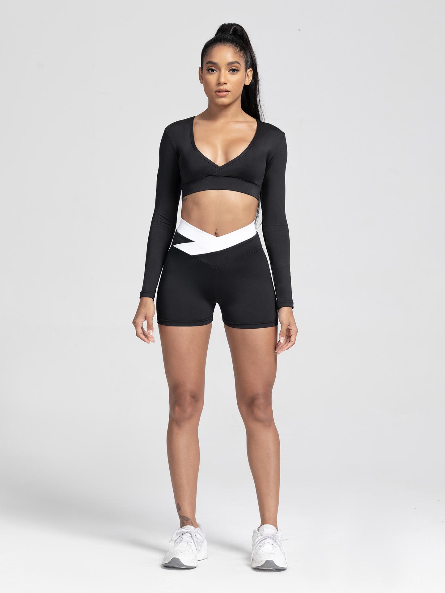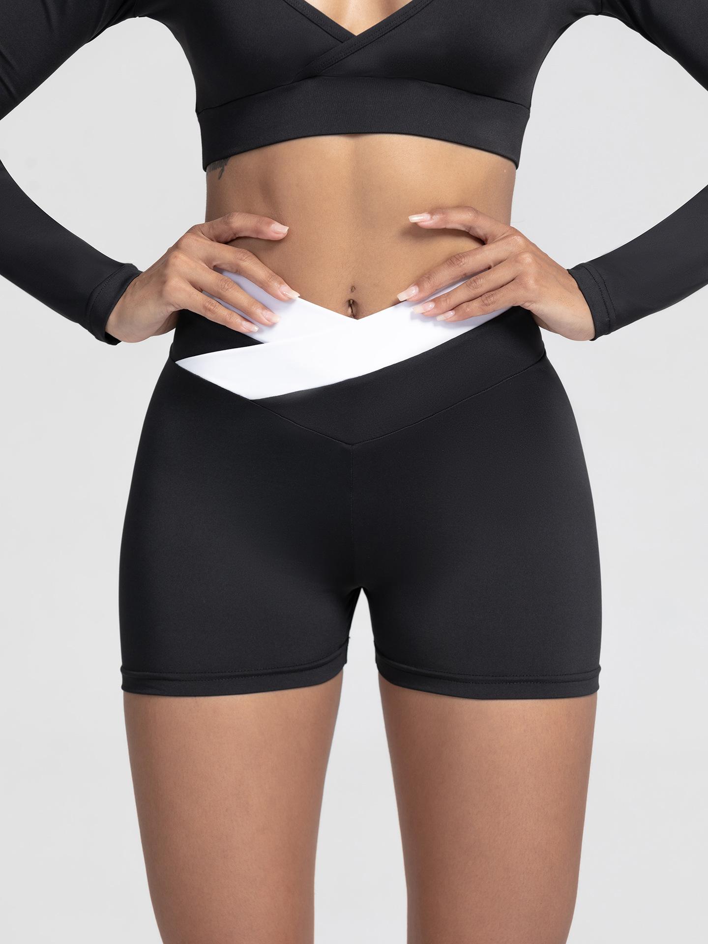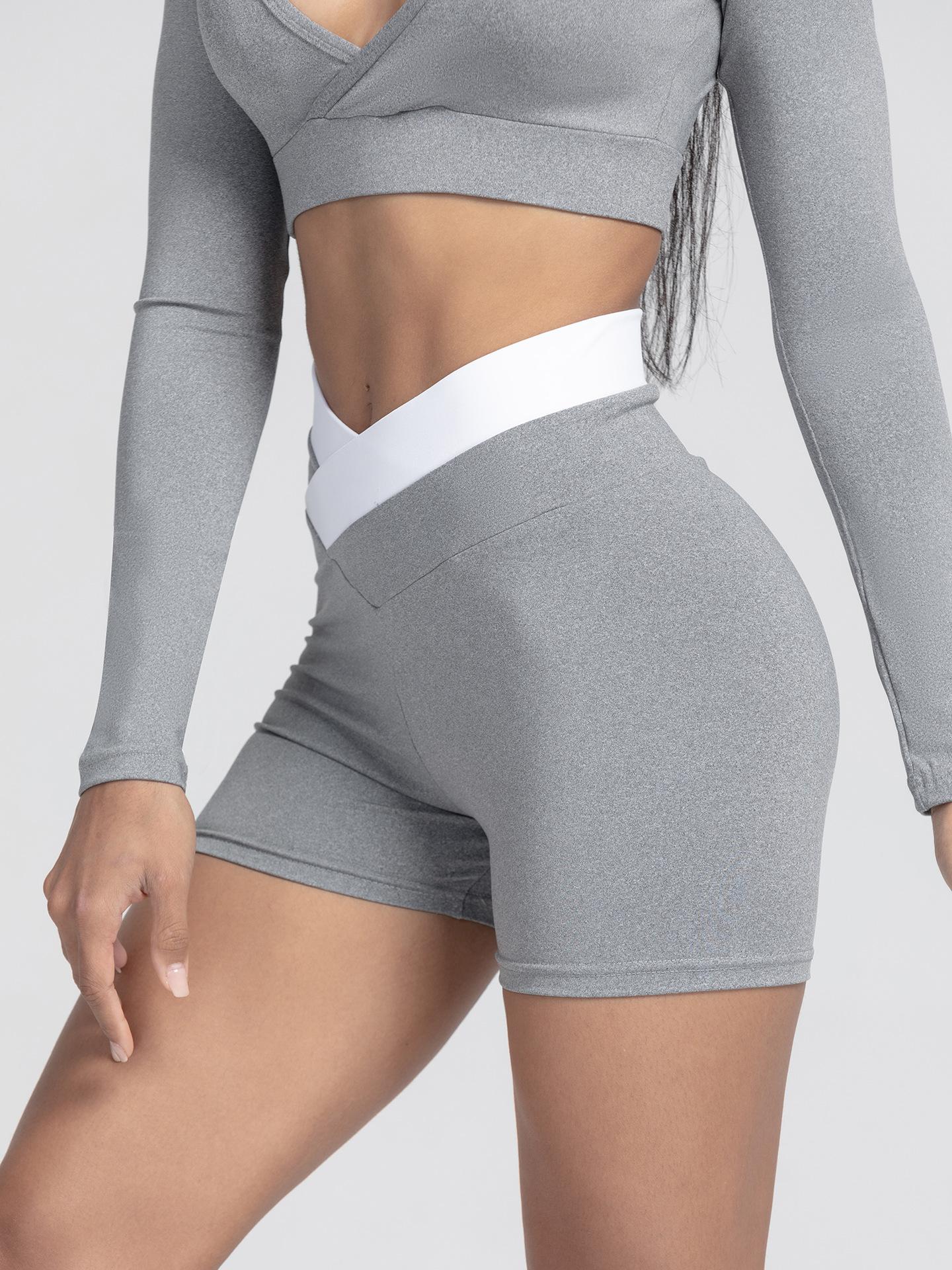 Pantalones cortos deportivos de cintura cruzada europeos y americanos para mujer, de cintura alta, que levantan la cadera, ajustados, para yoga, para correr, fitness, de verano.