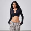 Traje de yoga sexy con estampado de amor hueco para mujer, camiseta deportiva de manga larga con cruce frontal, ropa exterior para entrenamiento y fitness.