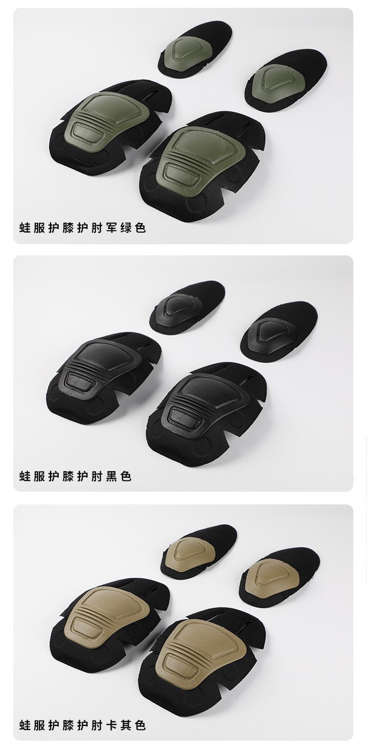 Two g2g3 knee pads (note color), G2g3 frog suit four piece set black, G2g3 frog suit four-piece khaki set, G2g...