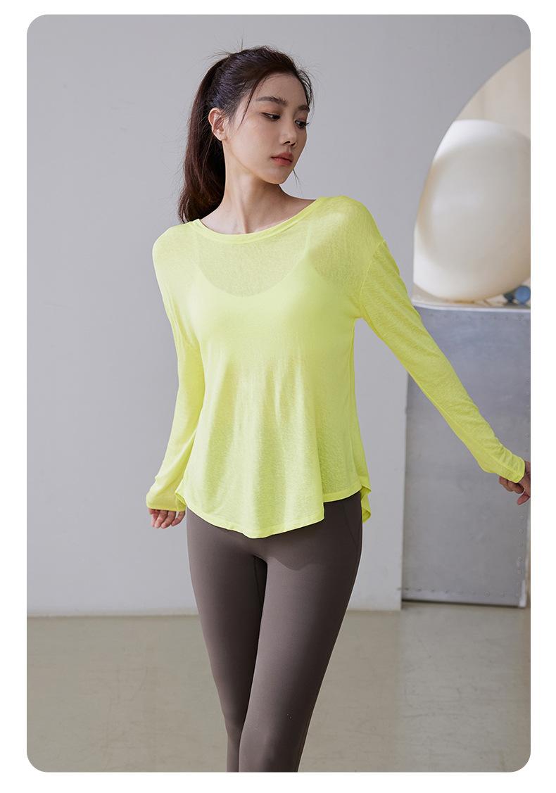 Top Deportivo Holgado Transpirable para Mujer Entrenamiento Profesional de Fitness Vista Interior Ropa de Yoga Flow Sobrecamisa Casual Mangas Largas
