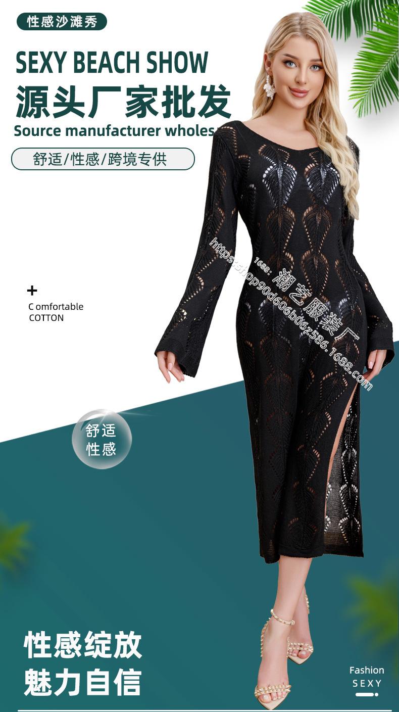 2025 Nuevo Estilo de Verano Europeo y Americano Traje de Baño Bikini con Abertura en la Cadera Talla Grande Sexy Manga Larga Cubre Sol para Playa